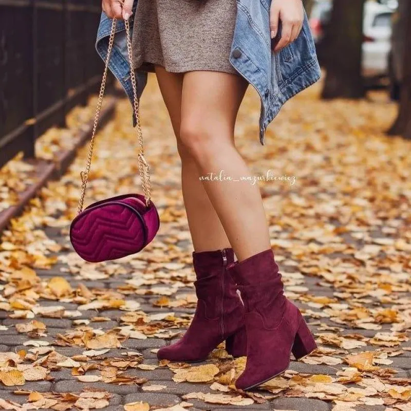 Botki na słupku wykonane z eko-zamszu. Stworzymy z nimi wiele wspaniałych stylizacji! Wnętrze pokryte kocem obuwniczym z krótkim włosiem, co zapewni nam komfort w każdych warunkach. Suwak po wewnętrznej stronie ułatwi nam zakładanie. Przy wyborze rozmiaru prosimy sugerować się tabelą rozmiarów
