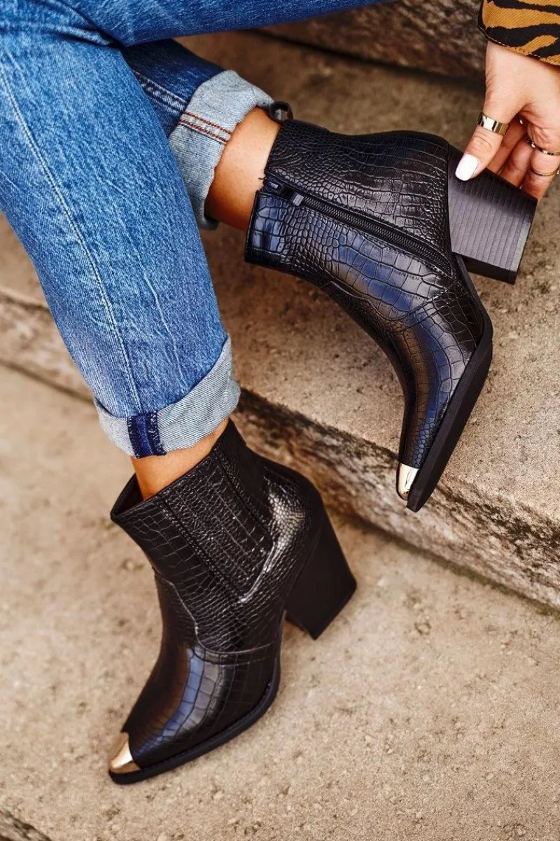 Botki, o których marzy każda z nas, są już dostępne! Niesamowity wzór botków ze srebrną blaszką na nosku. Wierzch to skóra ekologiczna ze zwierzęcym motywem. Wnętrze buta pokryte kocem obuwniczym z delikatnym włosiem, które otuli Wasze stopy w każdy chłodny dzień. Na wewnętrznej stronie zastosowano suwak, który ułatwi nam zakładanie. Cholewka posiada również wszytą gumkę, która zapewni nam idealne dopasowanie do nogi. Przy wyborze rozmiaru prosimy sugerować się tabelą rozmiarów.