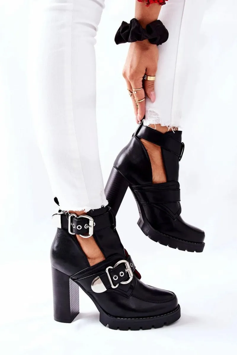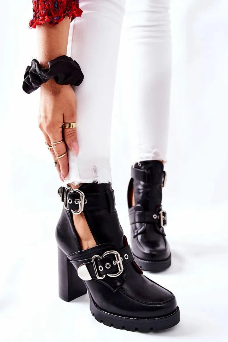 Czarne botki to hit tego sezonu! Zapinane na sprzączkę. Wysoki słupek zapewni wygodę użytkowania. Podczas wyboru rozmiaru prosimy kierować się tabelą rozmiarów.