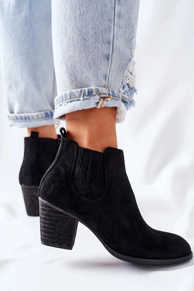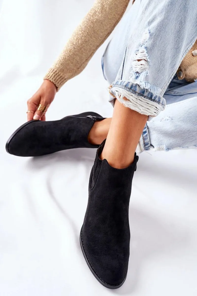 Przedstawiamy wygodne i stylowe botki na słupku. Wykonane z ekologicznego zamszu. Posiadają zapinanie na zamek z boku cholewki. Przy wyborze rozmiaru prosimy sugerować się tabelą rozmiarów.