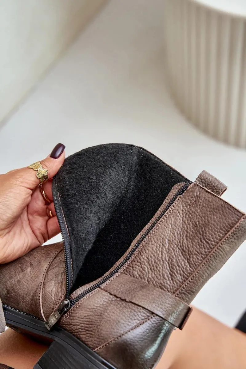 Botki wykonane z naturalnej skóry. Zapinane na zamek. Ocieplane filcem, co zapewnia ciepło w chłodniejsze dni. Szerokie, zaokrąglone noski gwarantują komfort noszenia i swobodę ruchu. Idealne na sezon jesienno-zimowy! Przy wyborze rozmiaru prosimy sugerować się tabelą rozmiarów.