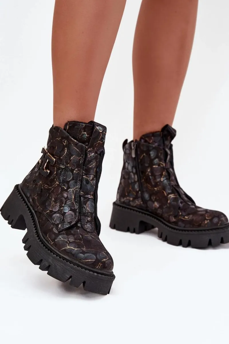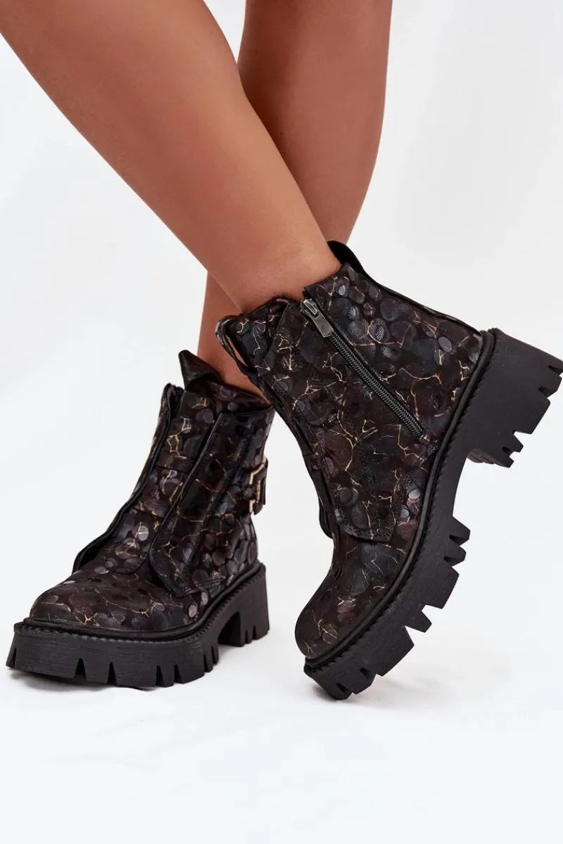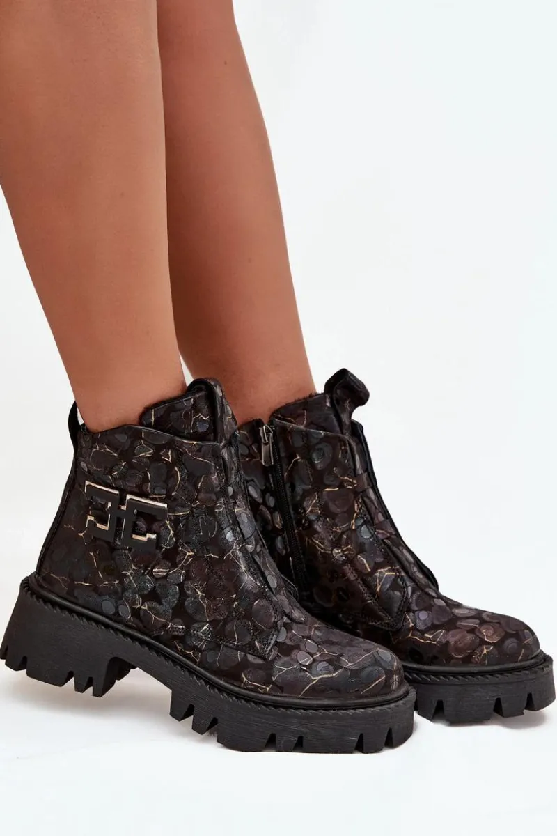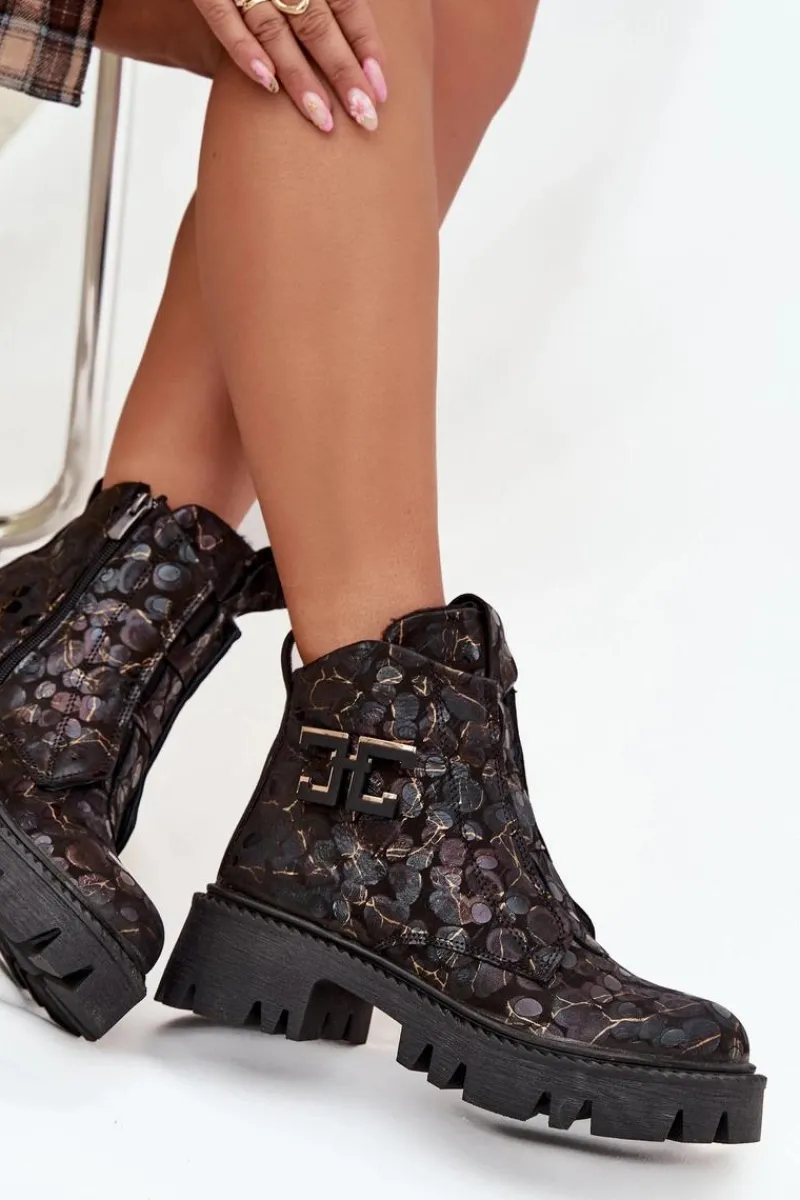 Botki damskie marki Artiker wykonane z naturalnej skóry to propozycja łącząca elegancję z wygodą. Stylowe wykończenie i dbałość o detale nadają im wyjątkowego charakteru, a ozdoba umieszczona z boku cholewki podkreśla modny wygląd. Model zapinany na zamek jest praktyczny i wygodny w codziennym użytkowaniu. Wnętrze ocieplone kocem obuwniczym zapewnia komfort i ciepło w chłodniejsze dni. Przy wyborze rozmiaru prosimy sugerować się tabelą rozmiarów.