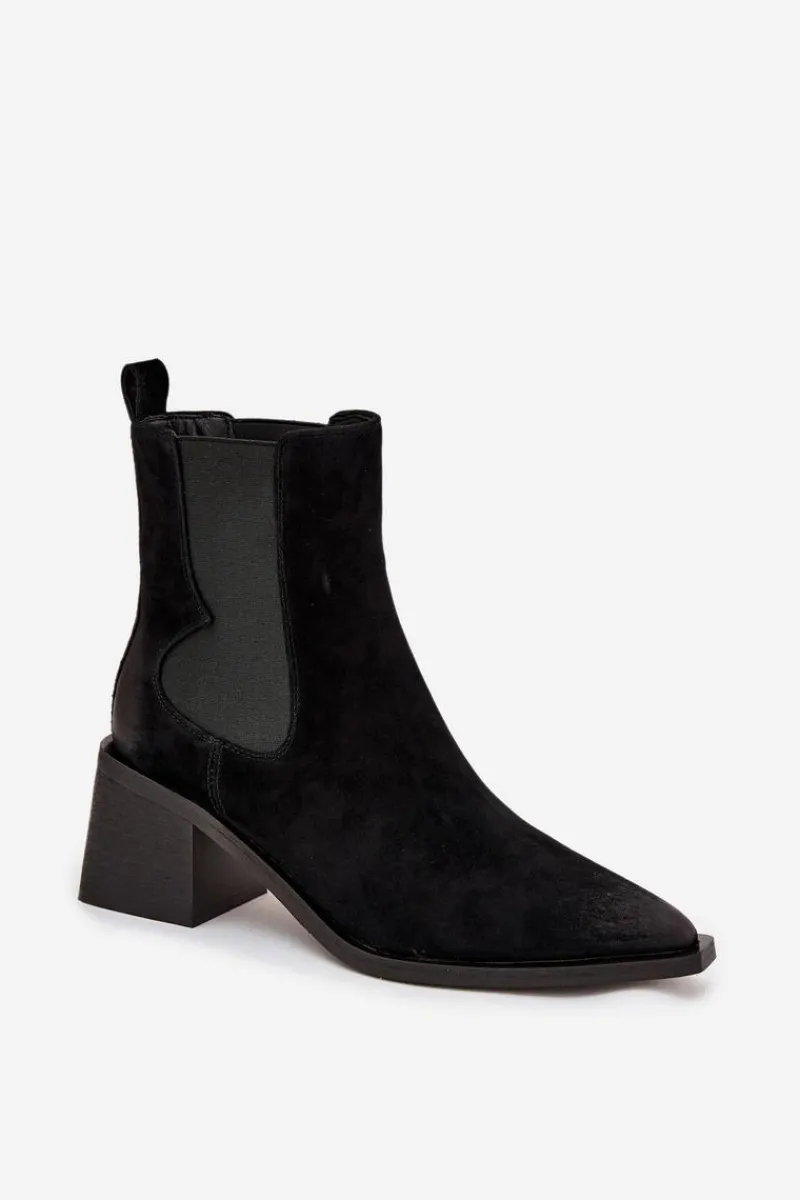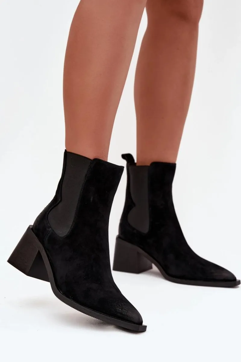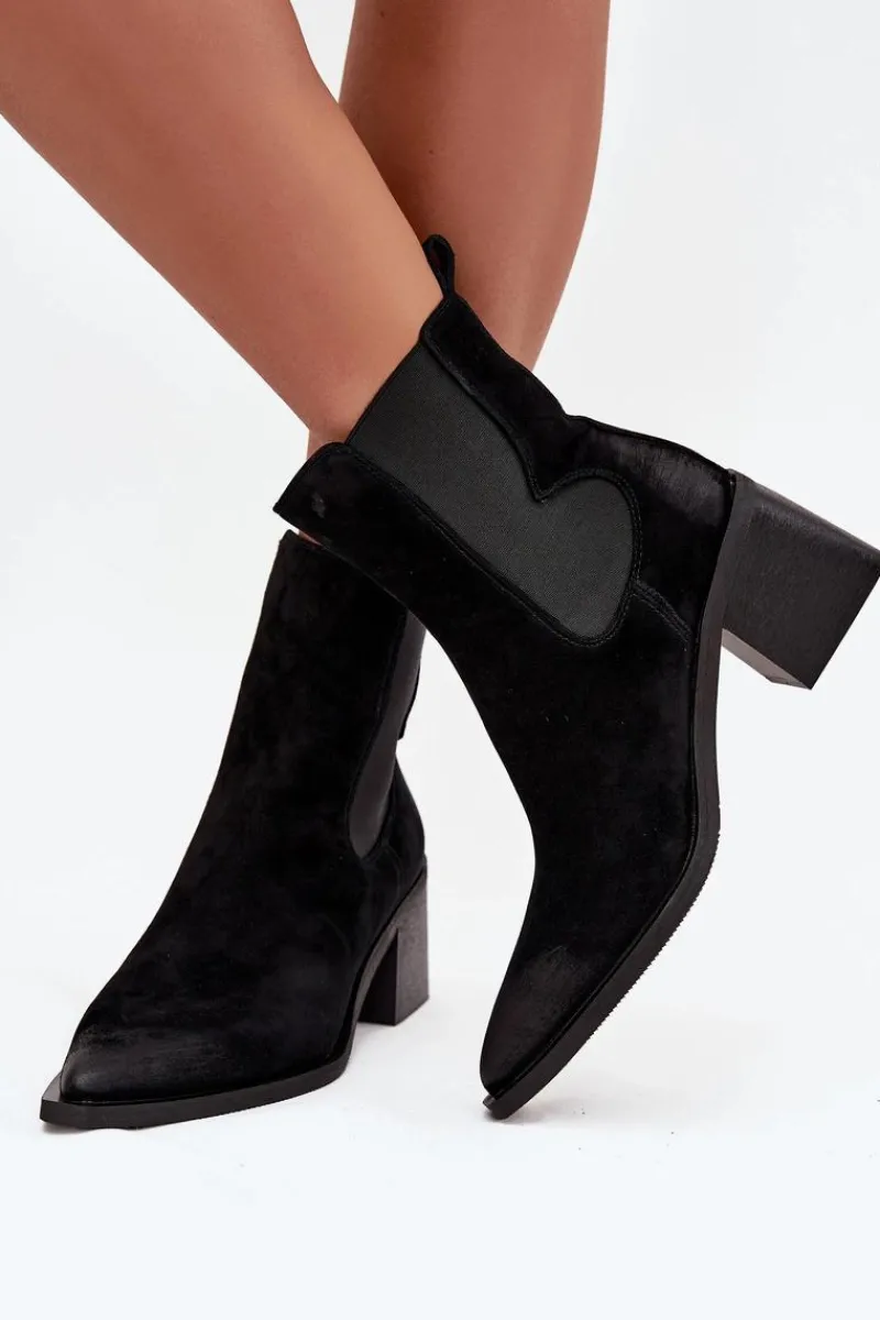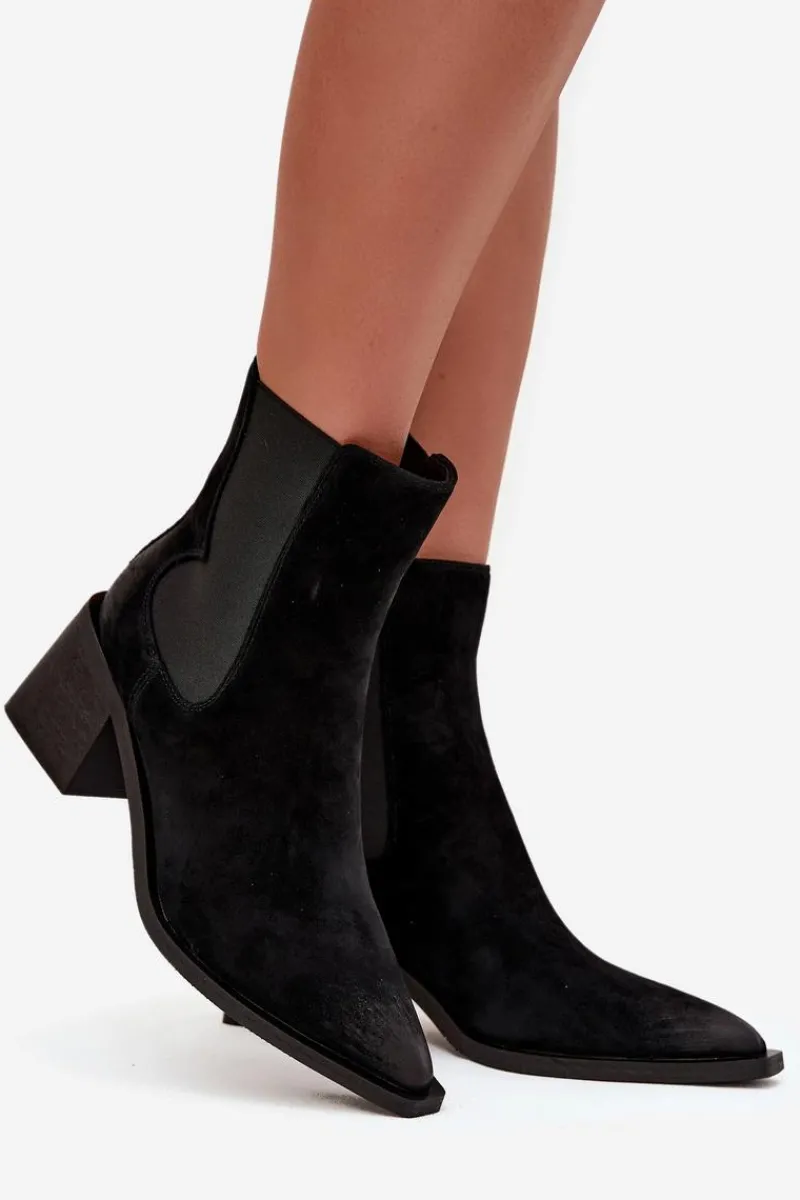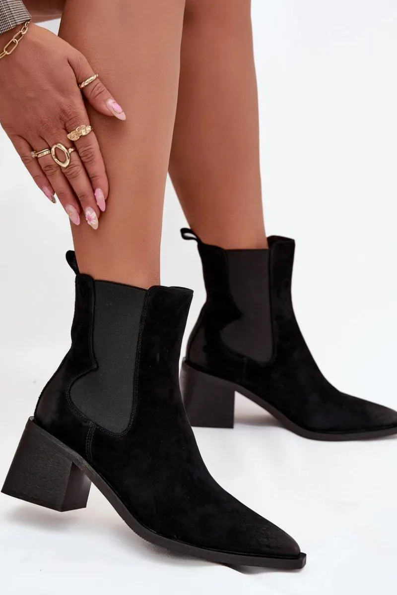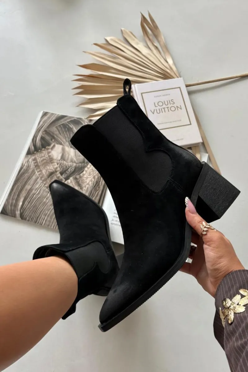 Botki damskie marki Artiker to elegancka propozycja dla kobiet ceniących styl i wygodę. Wykonane z naturalnego zamszu prezentują się niezwykle szykownie, a obcas w formie stabilnego słupka dodaje sylwetce smukłości i zapewnia komfort podczas noszenia. Szpiczaste noski podkreślają kobiecy charakter butów, a elastyczne wstawki na cholewce ułatwiają zakładanie i dopasowanie do nogi. Model wsuwany z ocieplanym wnętrzem doskonale sprawdzi się w chłodniejsze dni, łącząc praktyczność z eleganckim stylem. Przy wyborze rozmiaru prosimy sugerować się tabelą rozmiarów.