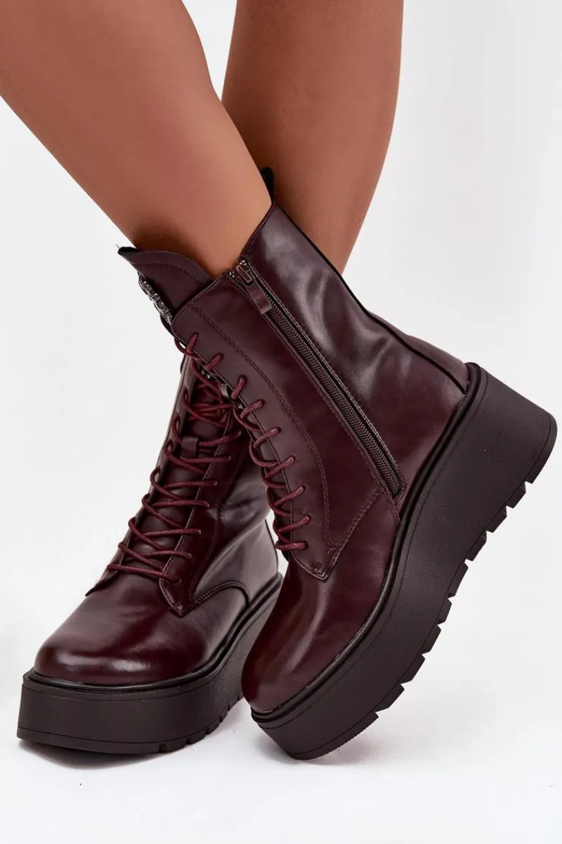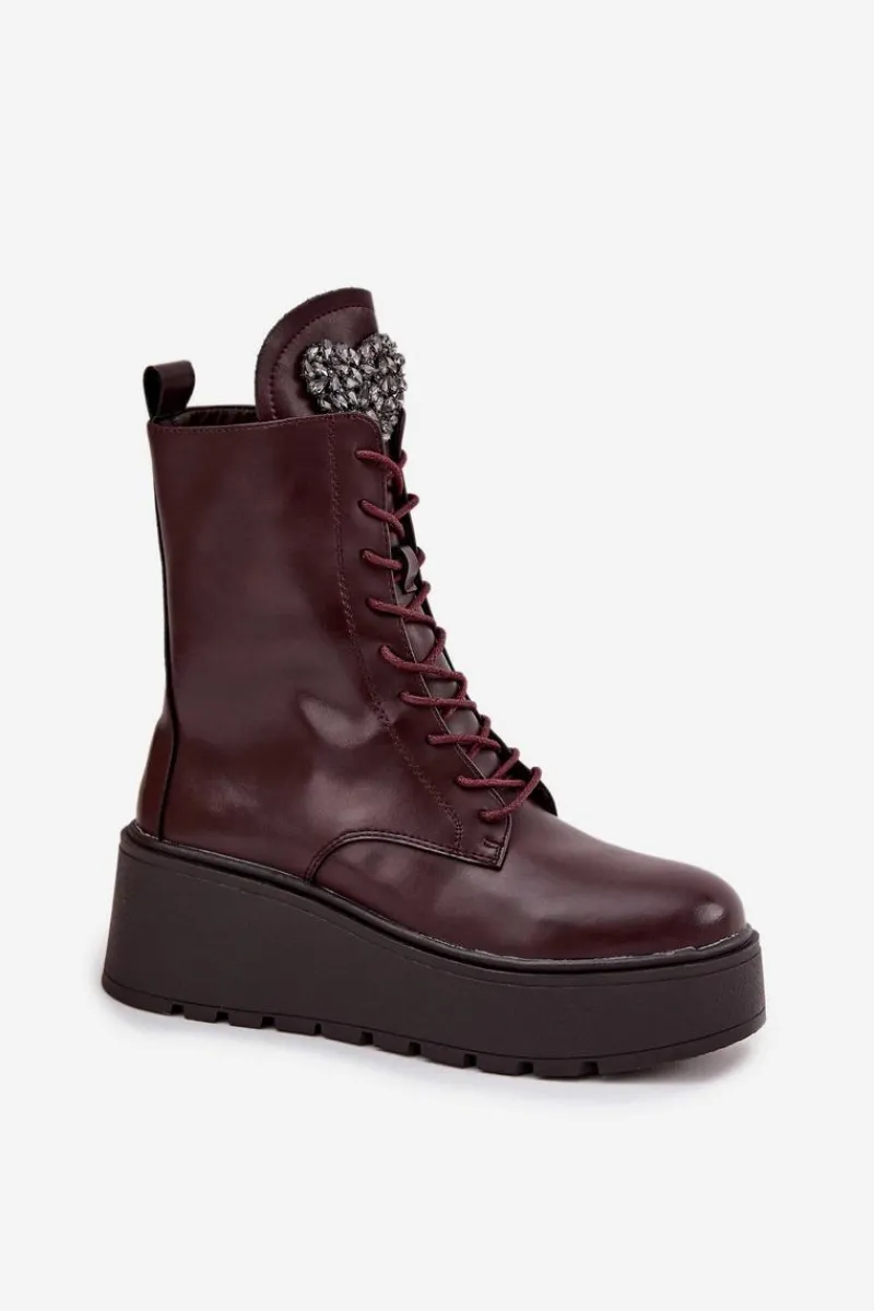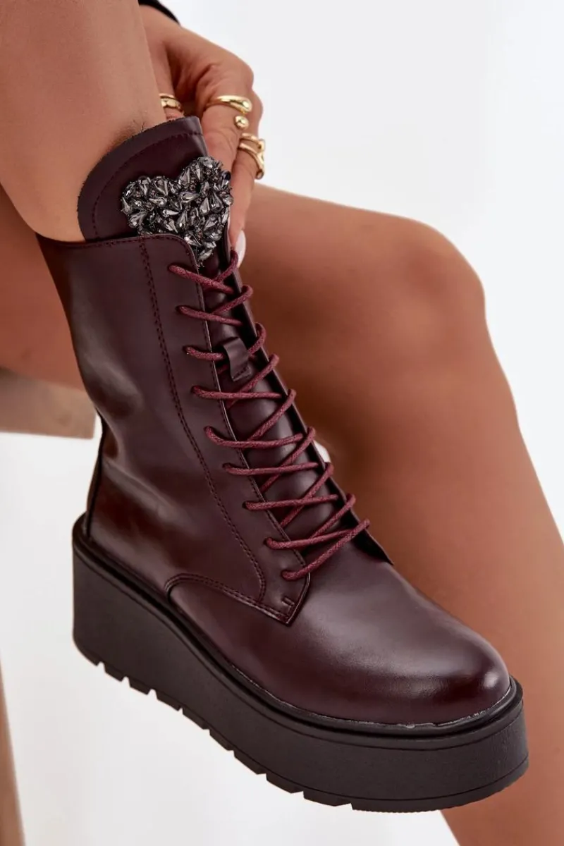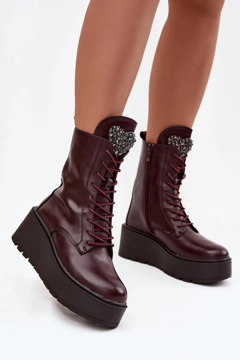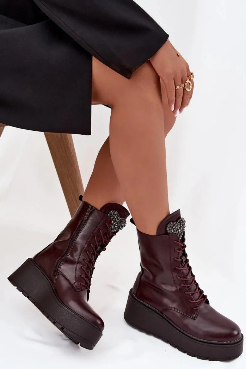 Botki damskie marki Jezzi to propozycja dla kobiet, które cenią wygodę połączoną z modnym wyglądem. Wykonane z naturalnej skóry, wyróżniają się trwałością oraz eleganckim wyglądem. Osadzone na stabilnym koturnie z platformą, optycznie wydłużają sylwetkę, jednocześnie zapewniając komfort podczas noszenia. Wnętrze butów zostało ocieplone, dzięki czemu sprawdzą się one idealnie w chłodniejsze dni sezonu jesienno-zimowego. Model posiada sznurowanie i boczny zamek, co ułatwia dopasowanie oraz szybkie zakładanie. Szczególną uwagę zwracają błyszczące kryształki umieszczone na języku, układające się w kształt serca – ten ozdobny detal dodaje wyjątkowego uroku i podkreśla ich kobiecy charakter. To obuwie, które doskonale pasuje zarówno do codziennych, jak i bardziej eleganckich stylizacji, stając się oryginalnym akcentem w garderobie. Przy wyborze rozmiaru prosimy sugerować się tabelą rozmiarów.