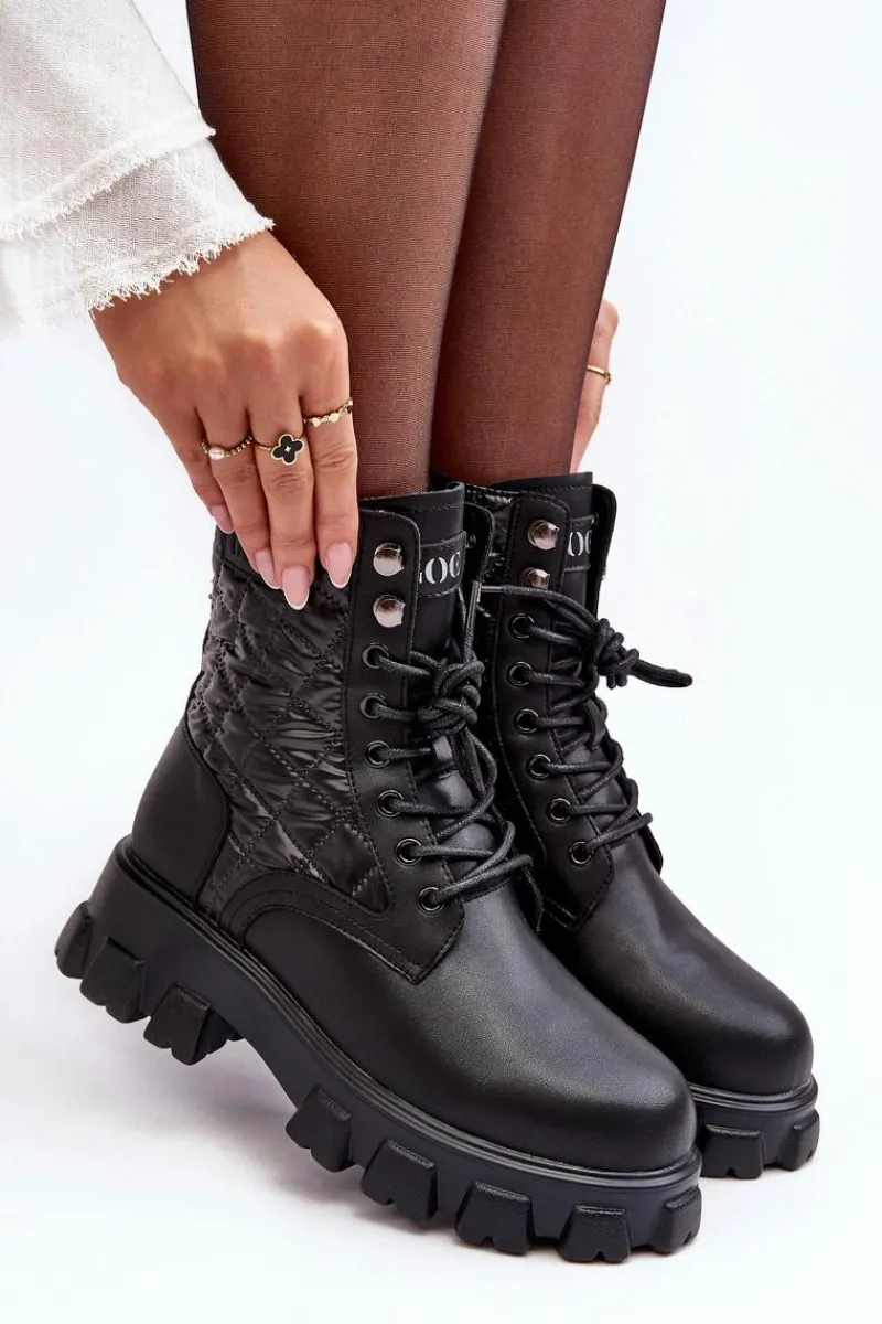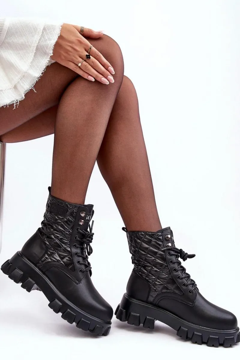 Botki damskie od marki GOE. Wykonane z wysokiej jakości skóry naturalnej. Osadzone na masywnym, płaskim obcasie i platformie. Model wsuwany z klasycznym sznurowaniem. Środek ocieplony kocem obuwniczym. Noski zaokrąglone. Usztywniony zapiętek. Klasyczny model, który wykorzystasz do wielu jesienno-zimowych stylizacji! Przy wyborze rozmiaru prosimy kierować się tabelą rozmiarów