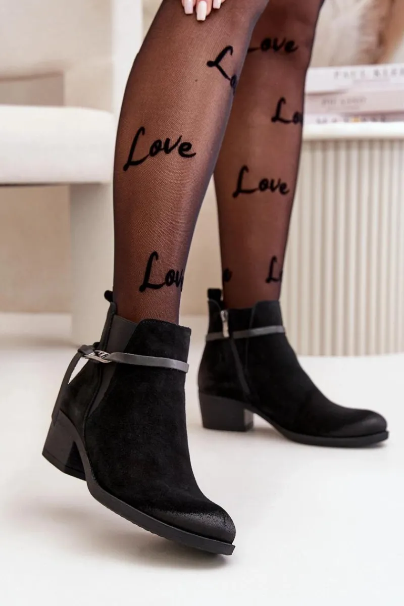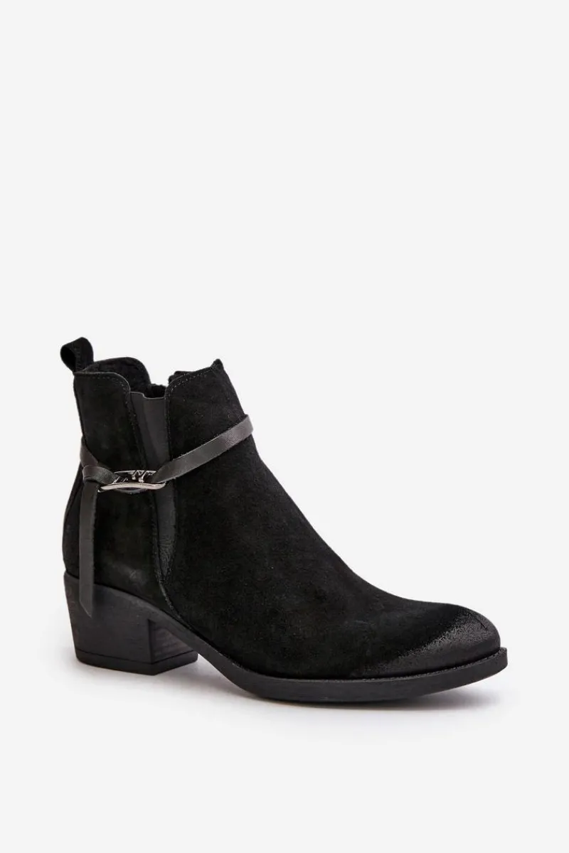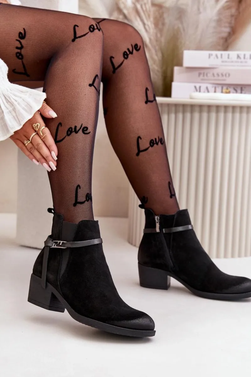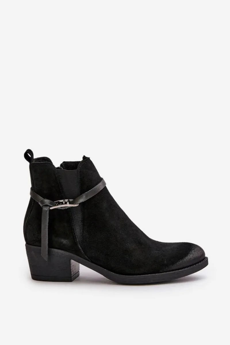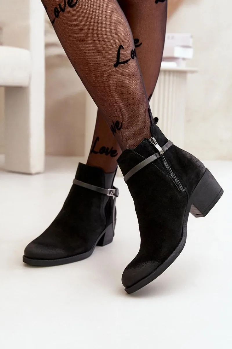 Botki z naturalnego zamszu to elegancki wybór na chłodniejsze dni. Zapięcie na zamek ułatwia ich zakładanie, a ocieplone filcem wnętrze zapewnia komfort i ciepło. Noski w kształcie migdała dodają subtelnego charakteru, a cienki ozdobny paseczek wokół cholewki stanowi stylowy akcent, który dopełnia całość. Przy wyborze rozmiaru prosimy kierować się tabelą rozmiarów
