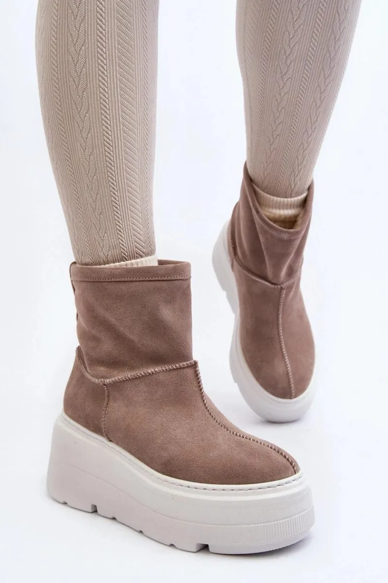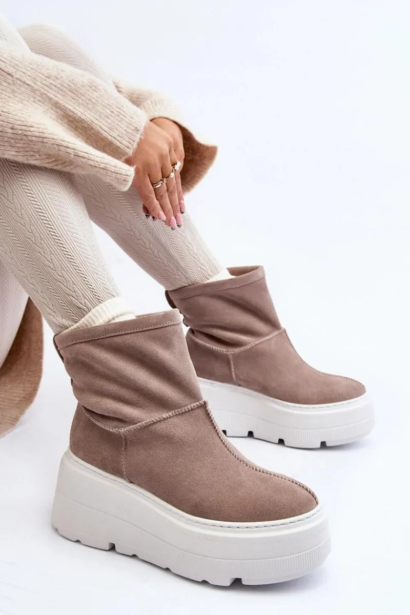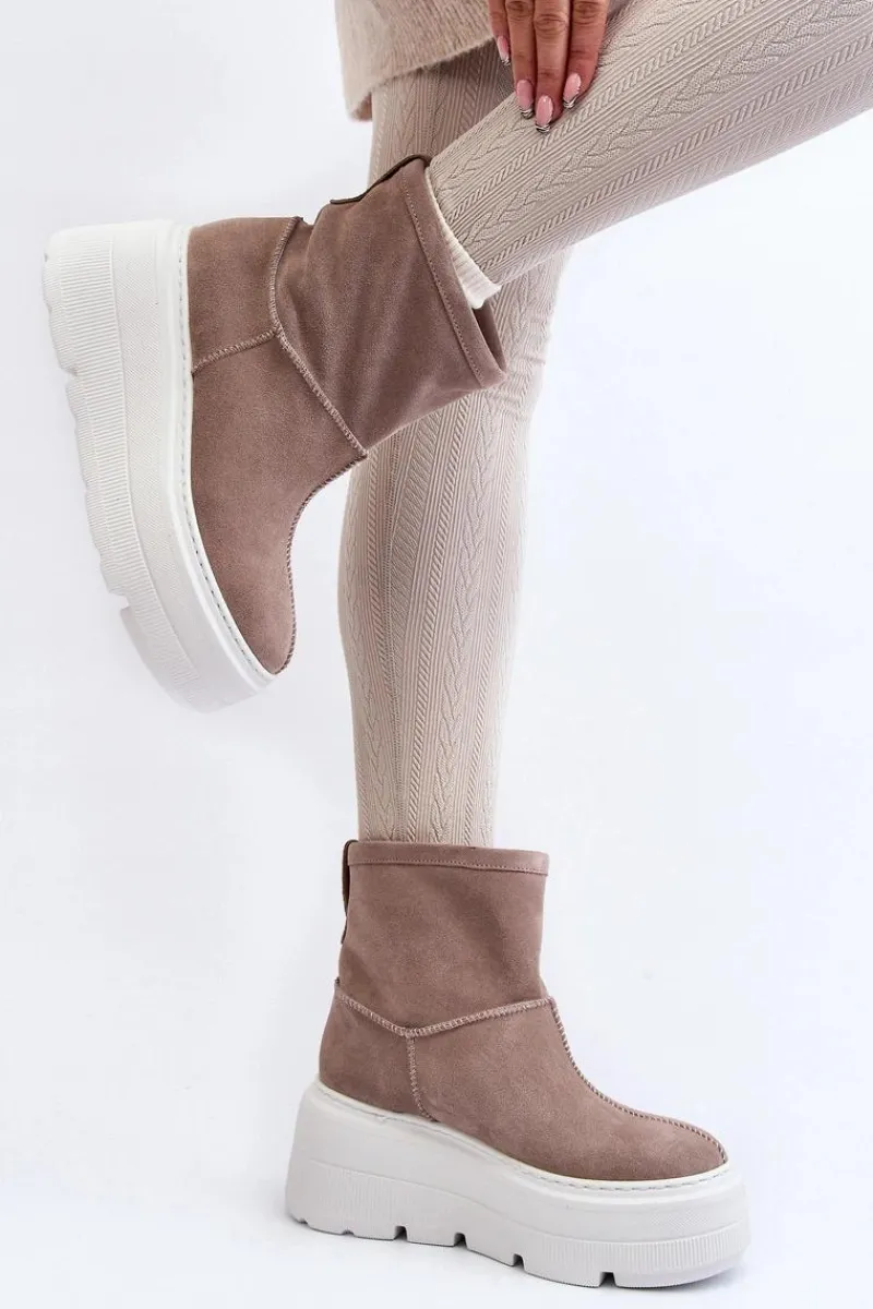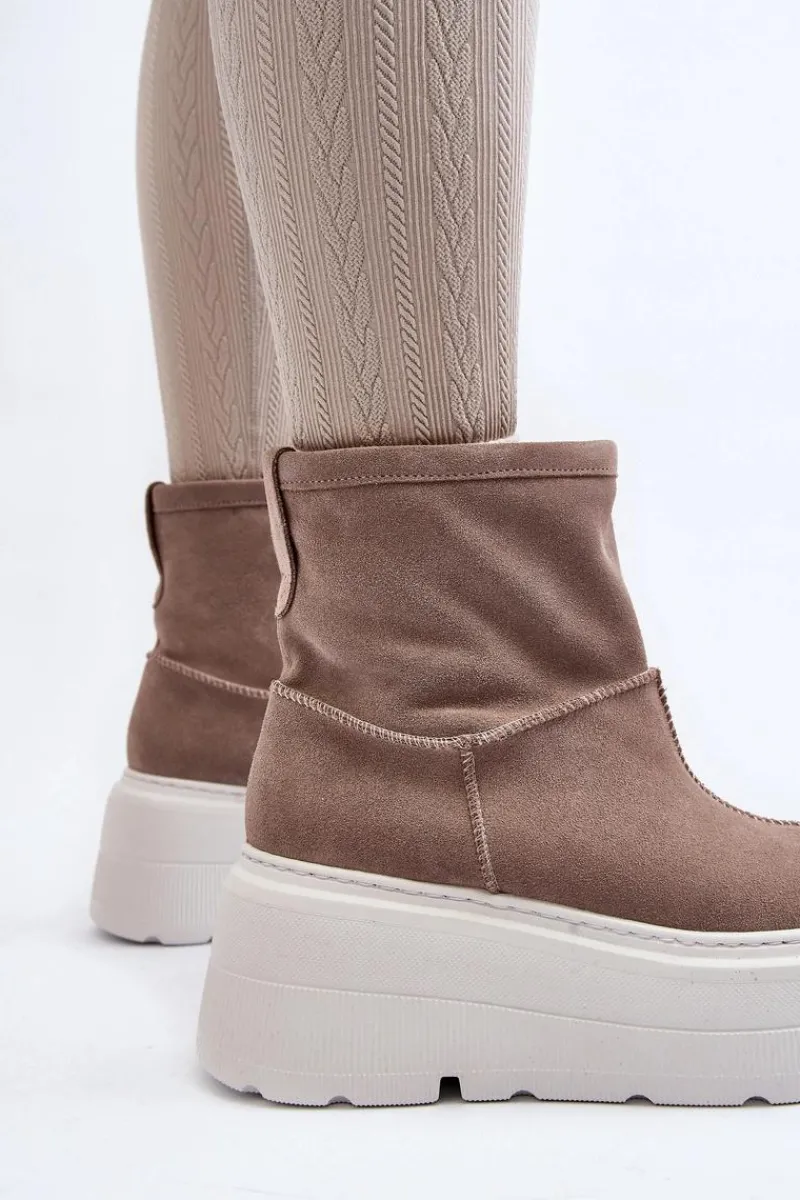 Botki damskie wykonane ze skóry naturalnej. Osadzone na masywnej podeszwie. Model wsuwany, z cholewką za kostkę. Środek ocieplony kożuszkiem. Noski zaokrąglone. Miękka wkładka zapewni wygodę podczas użytkowania. Koniecznie musisz je mieć! Przy wyborze rozmiaru prosimy sugerować się tabelą rozmiarów.