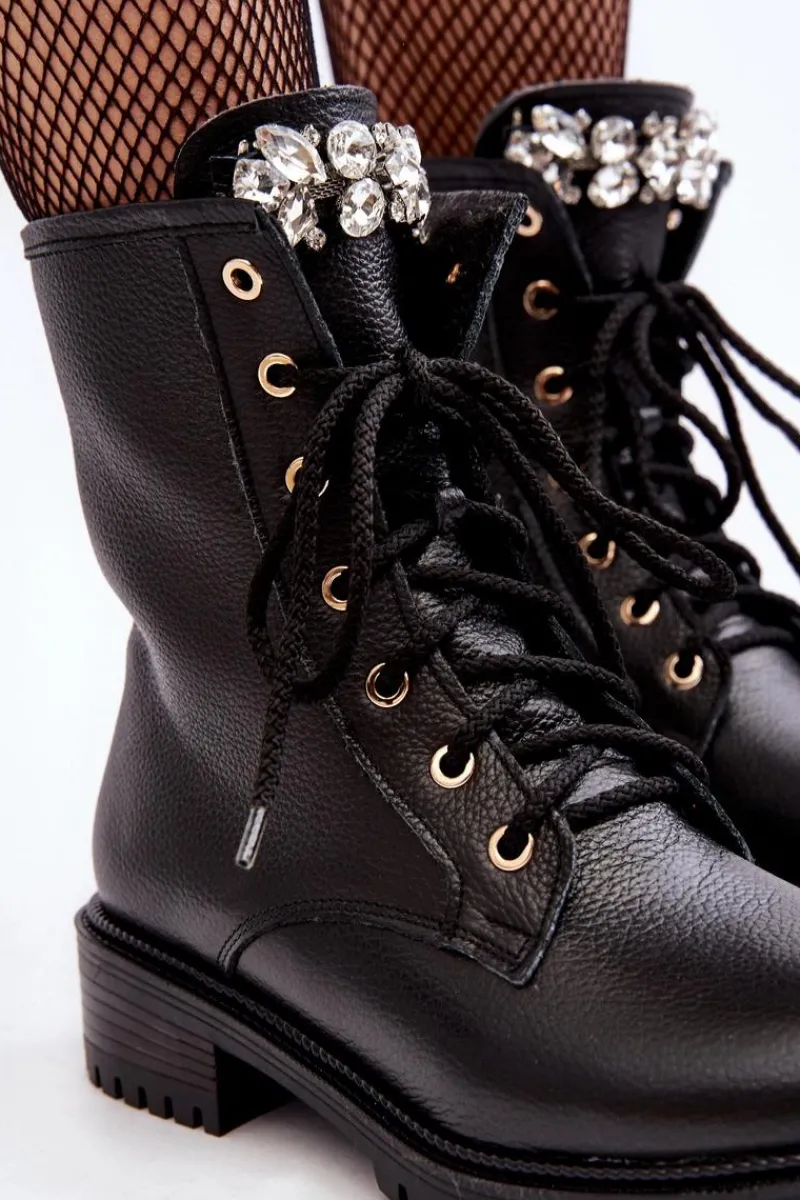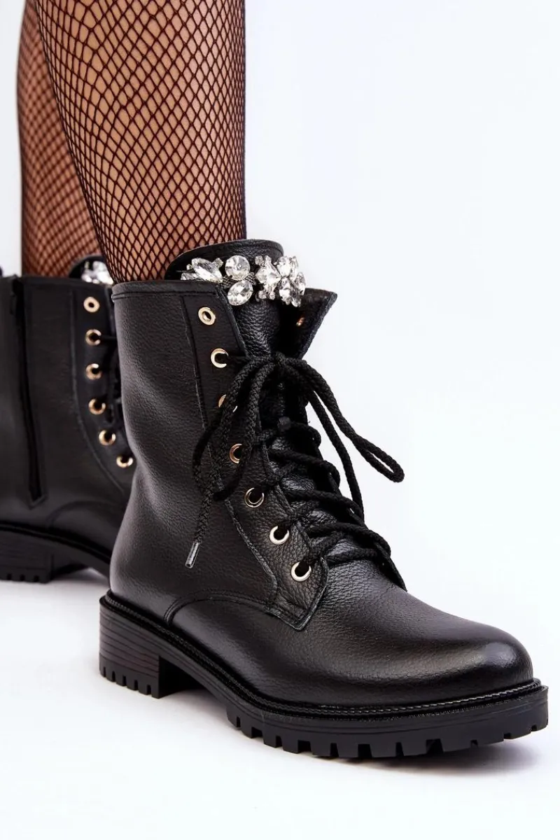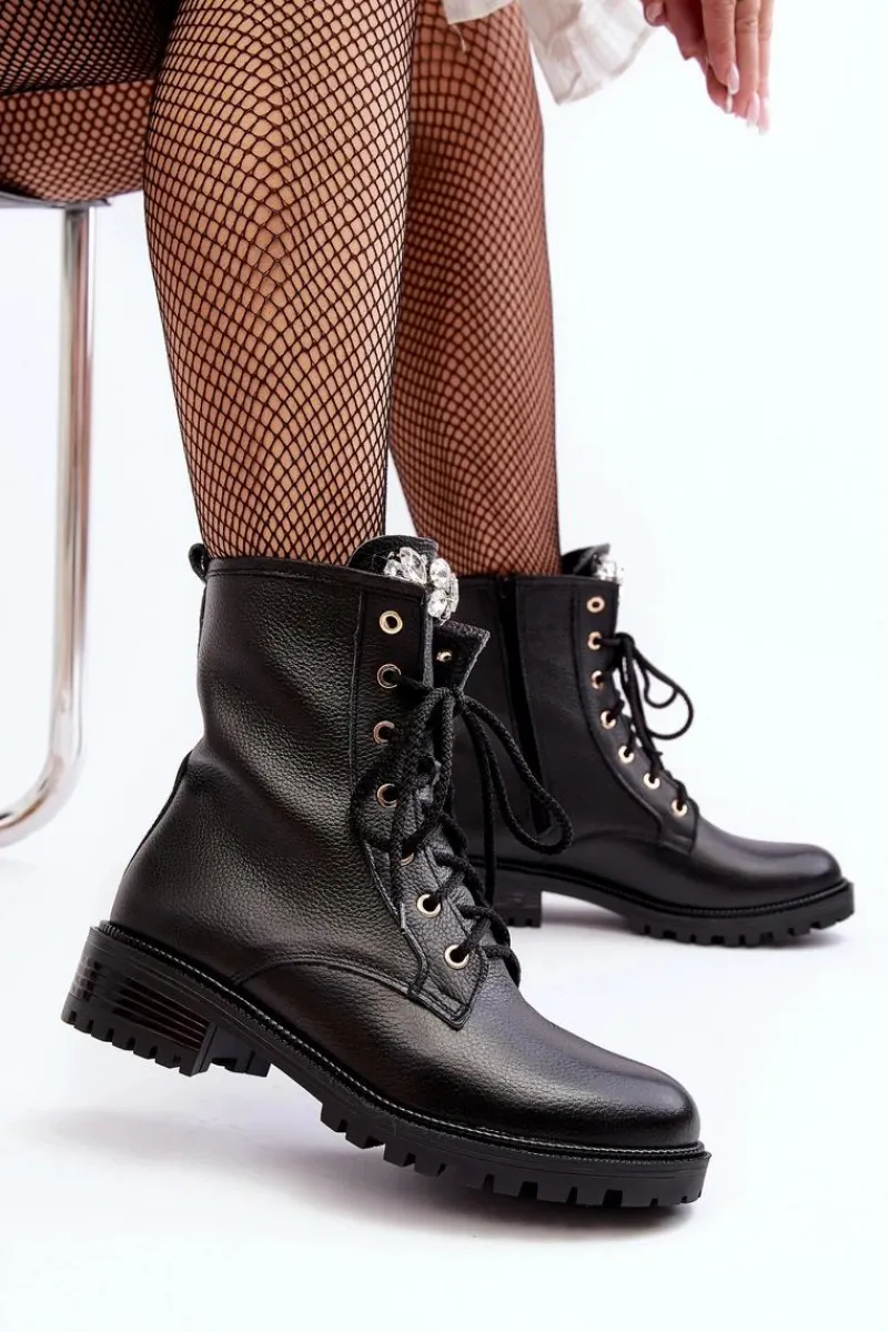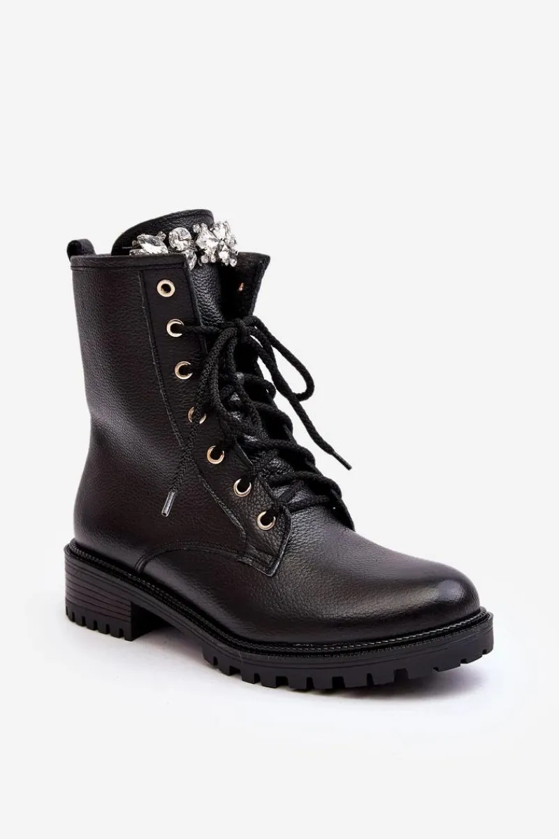 Botki damskie wykonane ze skóry naturalnej. Zapinane na suwak. Na języku ozdoba. Środek ocieplony kocem obuwniczym. Zapiętek jest usztywniony. Miękka wkładka zapewni komfort podczas użytkowania. Noski zaokrąglone. Ten klasyczny model będzie pasować do niemalże każdej jesienno-zimowej stylizacji! Przy wyborze rozmiaru prosimy sugerować się tabelą rozmiarów.
