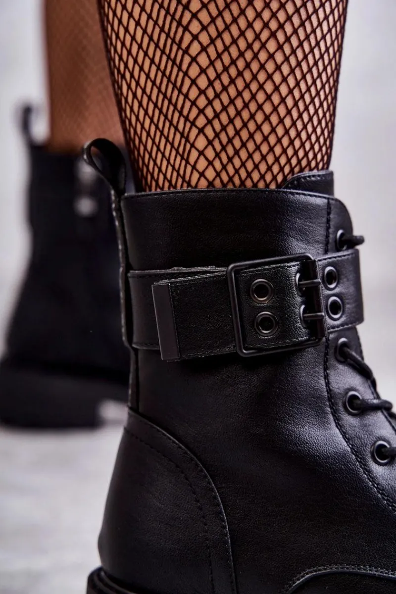 Modne botki damskie zostały wykonane z eko skóry. Posiadają suwak na boku cholewki, sznurowanie oraz klamrę z regulowanym paskiem. W środku znajduje się ocieplenie w postaci koca obuwniczego. Buty dodatkowo posiadają usztywniany zapiętek. Świetny model na jesienne, chłodne dni! Koniecznie sprawdź także pozostałe modele botków dostępne na naszej stronie! Przy wyborze rozmiaru prosimy sugerować się tabelą rozmiarów.
