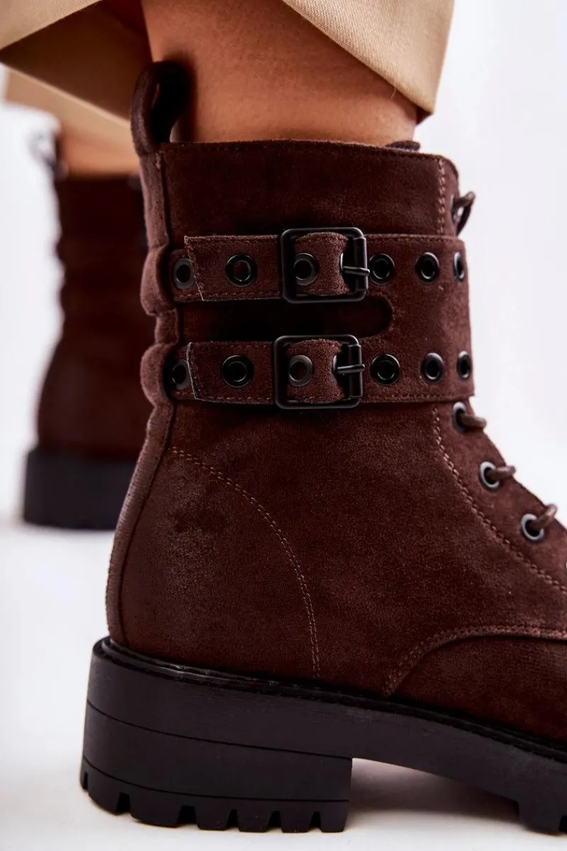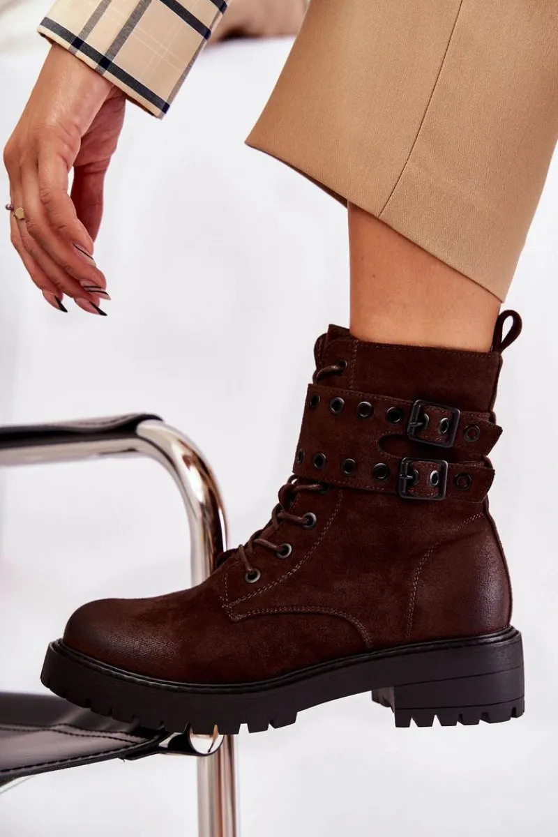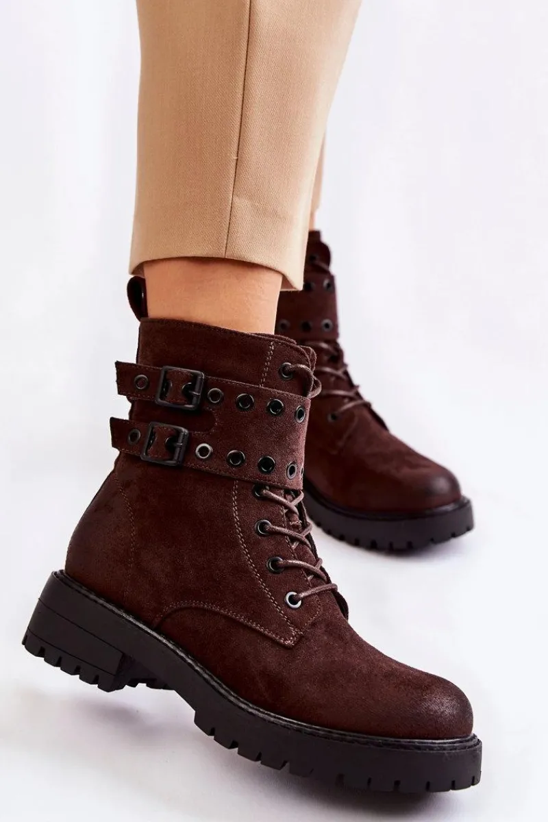 Wyjątkowe botki damskie zostały wykonane z eko zamszu z przecieranym noskiem i piętą. Posiadają suwak na boku cholewki, sznurowanie oraz modne klamry. W środku znajduje się ocieplenie w postaci koca obuwniczego. Buty dodatkowo posiadają usztywniany zapiętek. Świetny model na co dzień do pracy czy na spotkania z przyjaciółmi. Przy wyborze rozmiaru prosimy sugerować się tabelą rozmiarów.