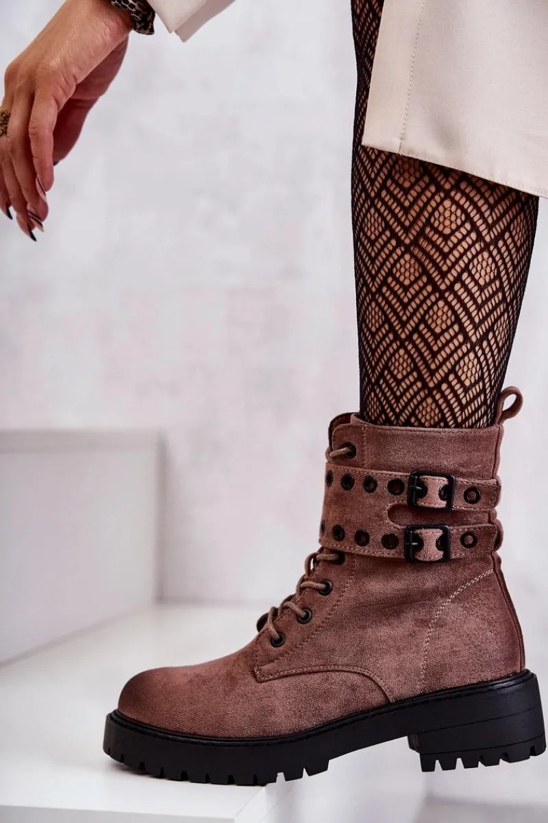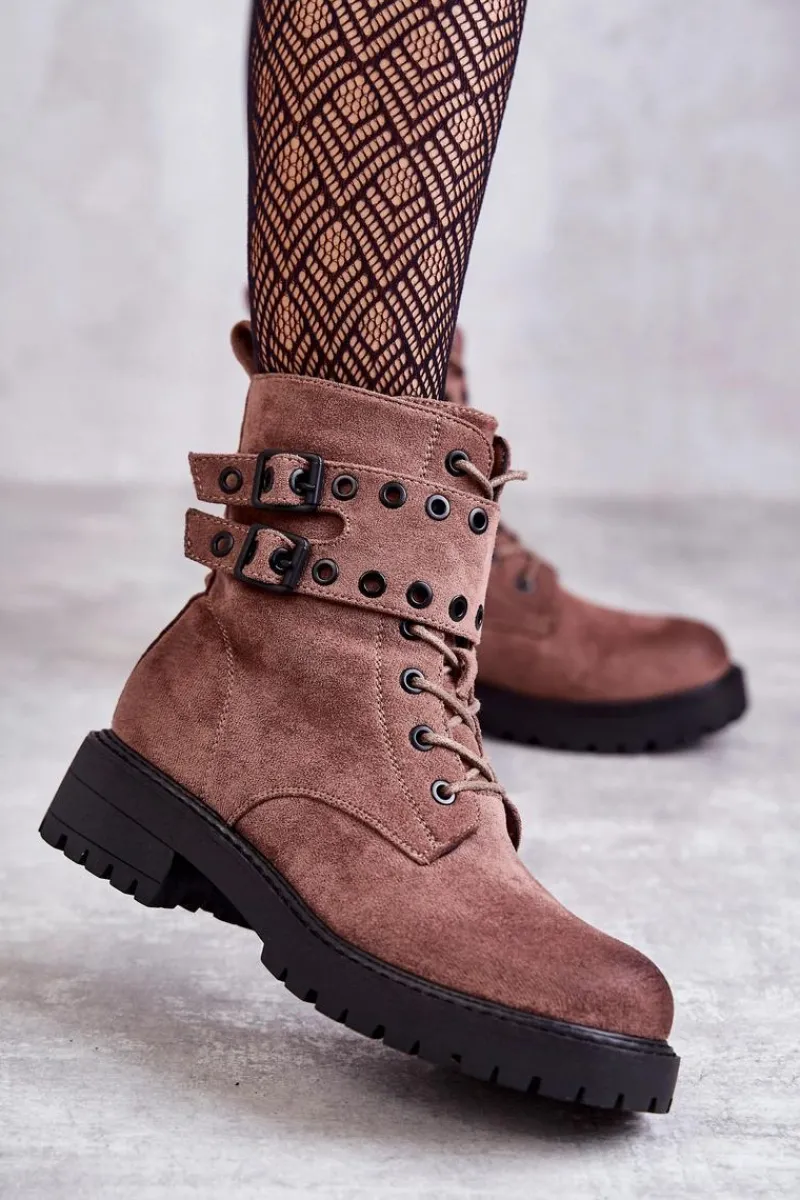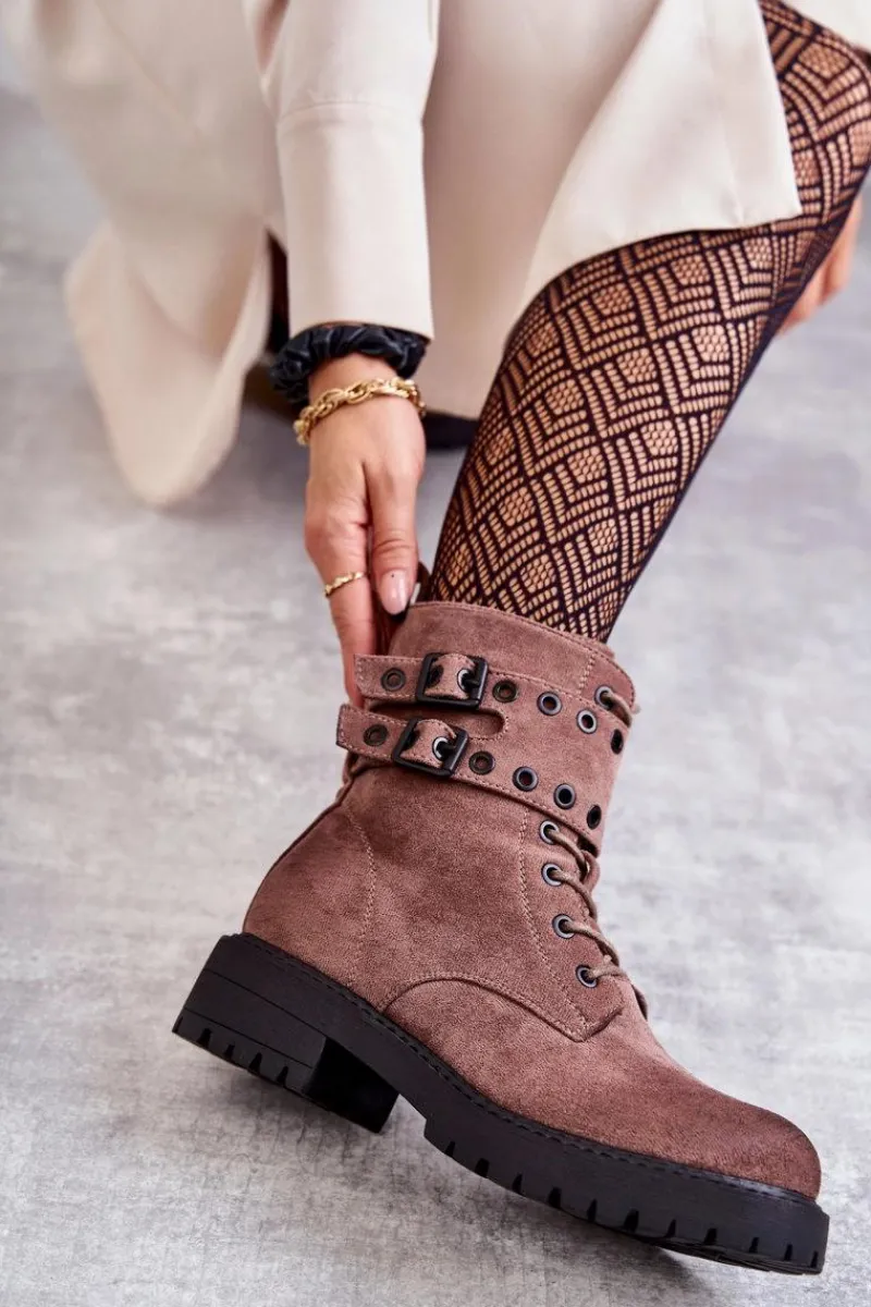 Wyjątkowe botki damskie zostały wykonane z eko zamszu z przecieranym noskiem i piętą. Posiadają suwak na boku cholewki, sznurowanie oraz modne klamry. W środku znajduje się ocieplenie w postaci koca obuwniczego. Buty dodatkowo posiadają usztywniany zapiętek. Świetny model na co dzień do pracy czy na spotkania z przyjaciółmi. Przy wyborze rozmiaru prosimy sugerować się tabelą rozmiarów.