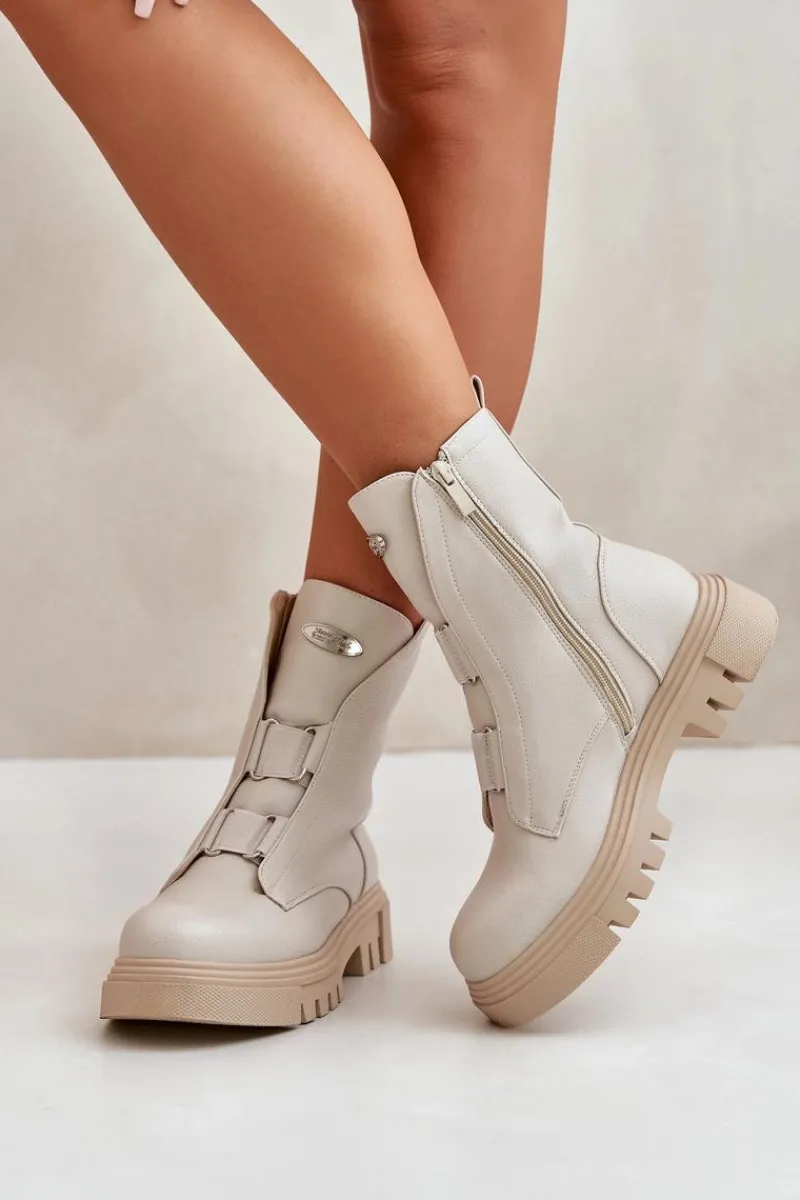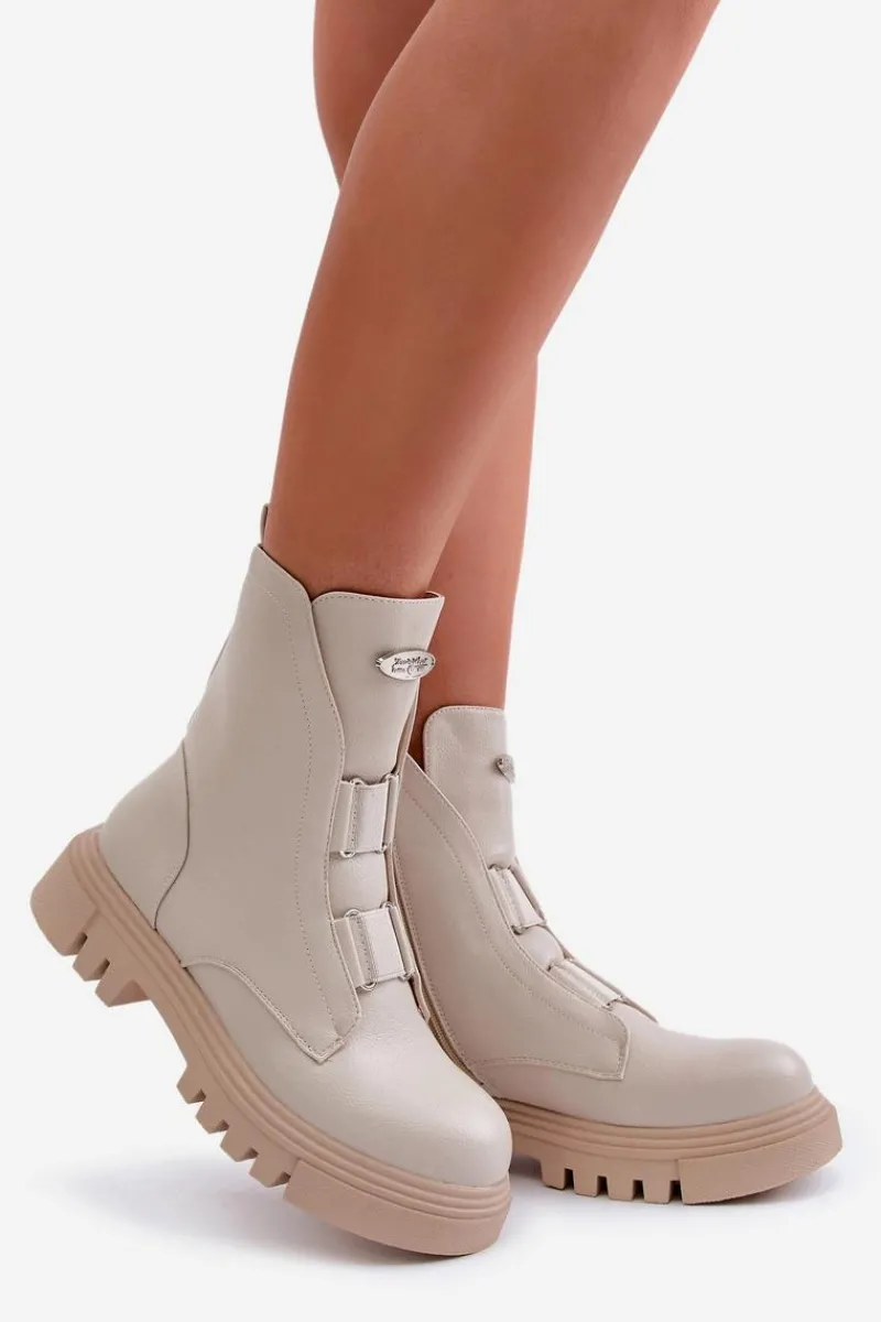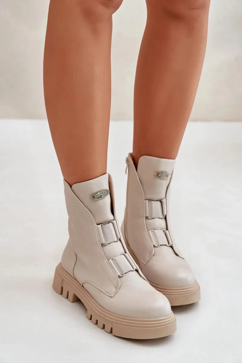 Damskie botki od marki Jezzi zostały wykonane z eko skóry. Zapinane na zamek, co ułatwia zakładanie i ściąganie obuwia. Wnętrze ocieplone kocem obuwniczym, który zapewni ciepło w mroźne dni. Noski zaokrąglone. Modny fason, który doskonale uzupełni wiele jesienno-zimowych stylizacji! Przy wyborze rozmiaru prosimy sugerować się tabelą rozmiarów.