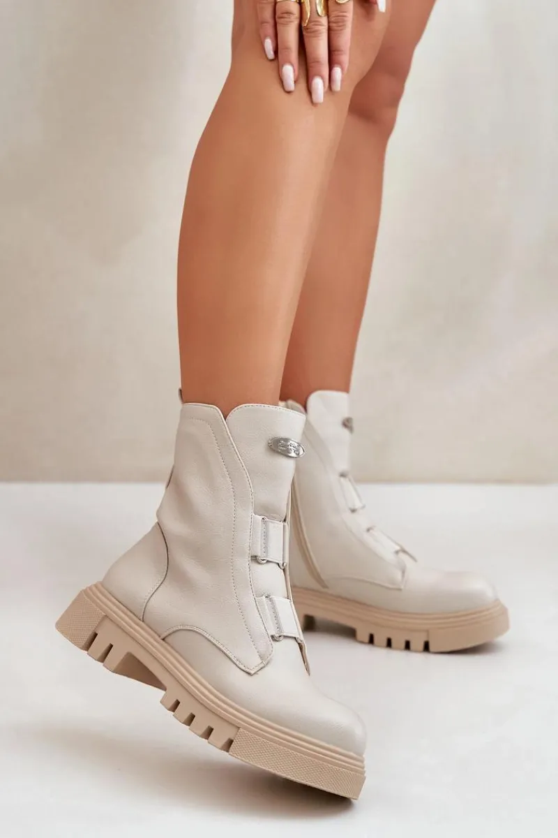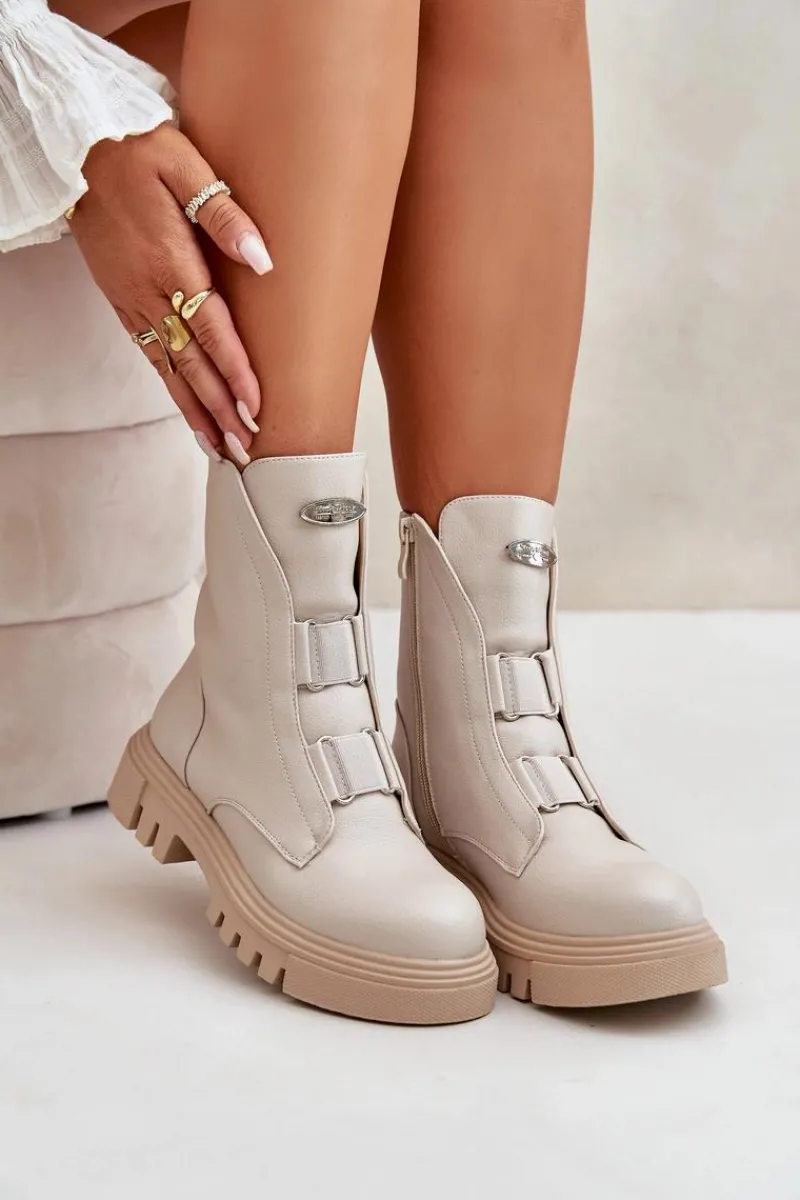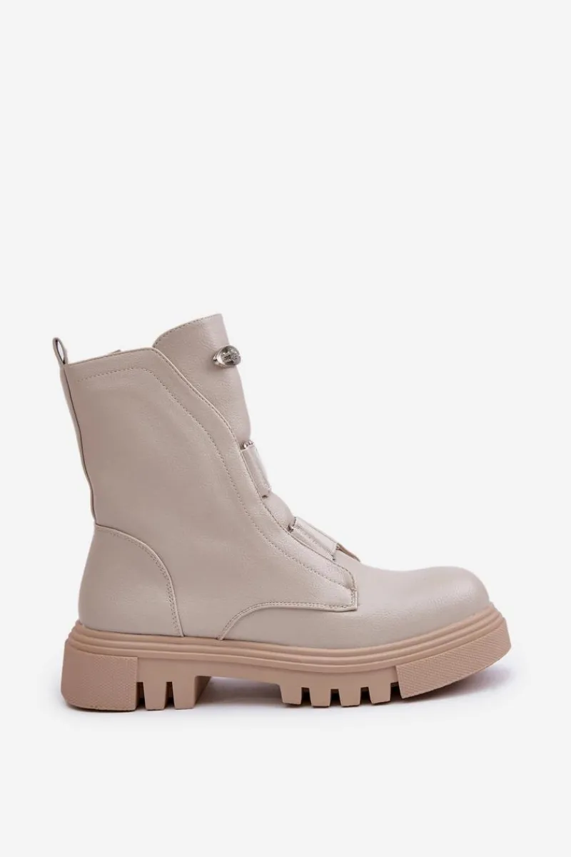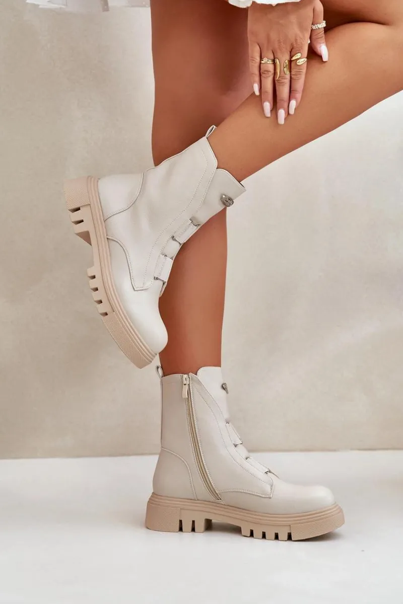 Damskie botki od marki Jezzi zostały wykonane z eko skóry. Zapinane na zamek, co ułatwia zakładanie i ściąganie obuwia. Wnętrze ocieplone kocem obuwniczym, który zapewni ciepło w mroźne dni. Noski zaokrąglone. Modny fason, który doskonale uzupełni wiele jesienno-zimowych stylizacji! Przy wyborze rozmiaru prosimy sugerować się tabelą rozmiarów.