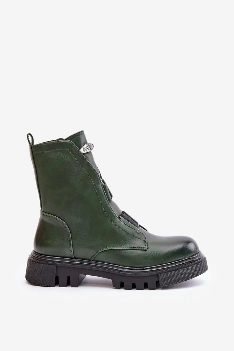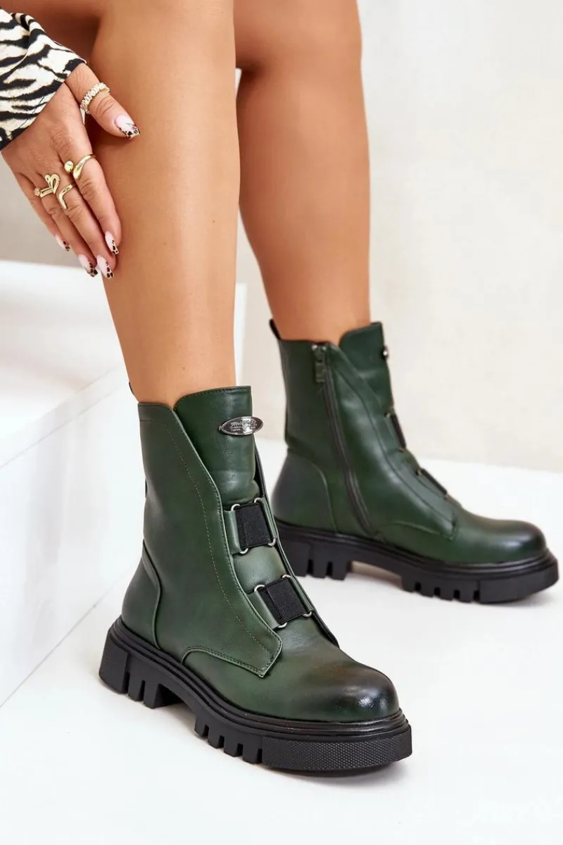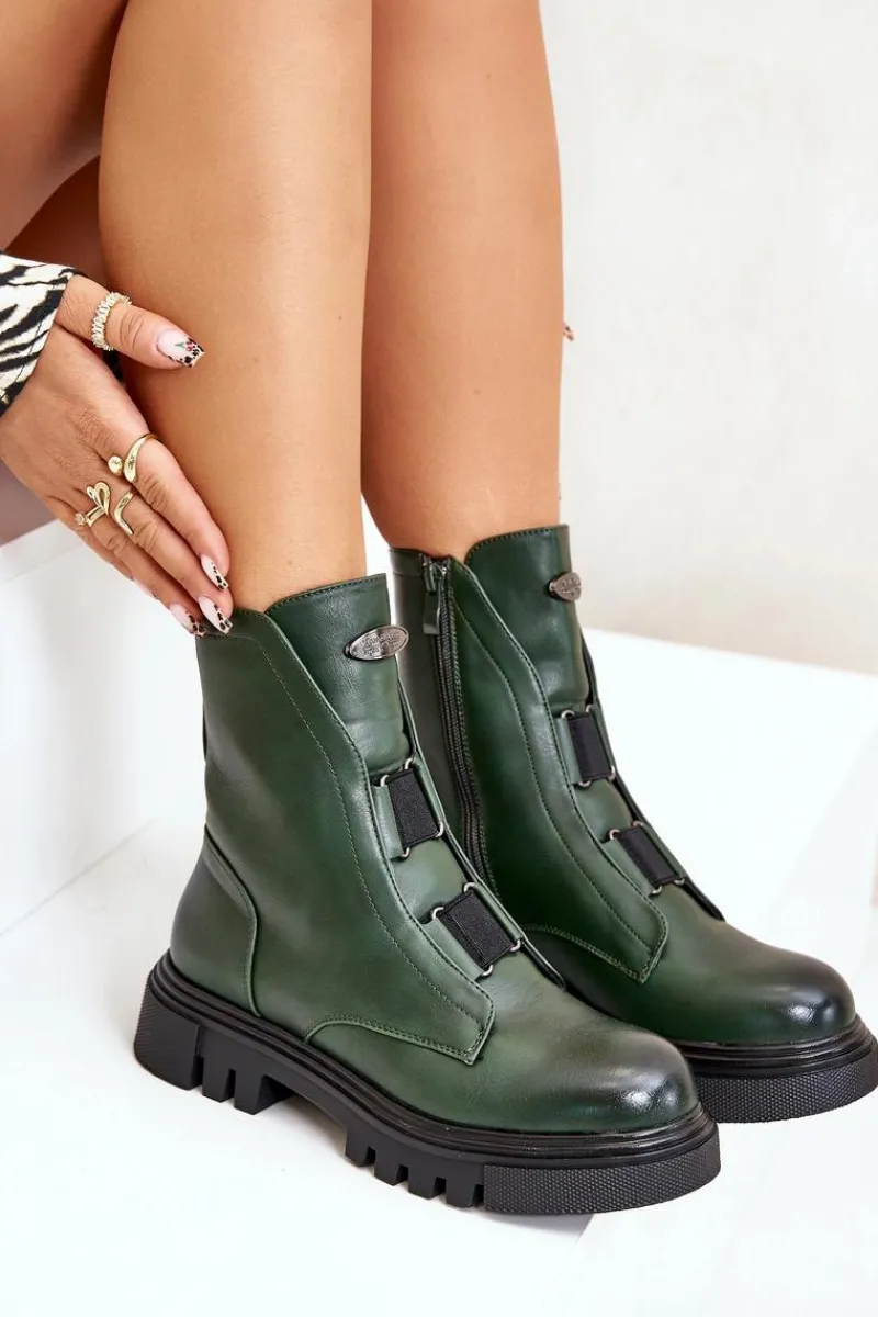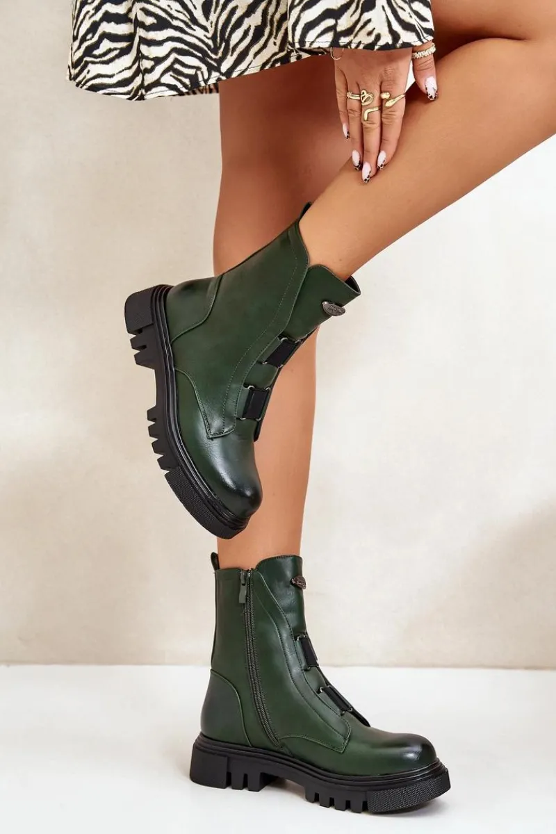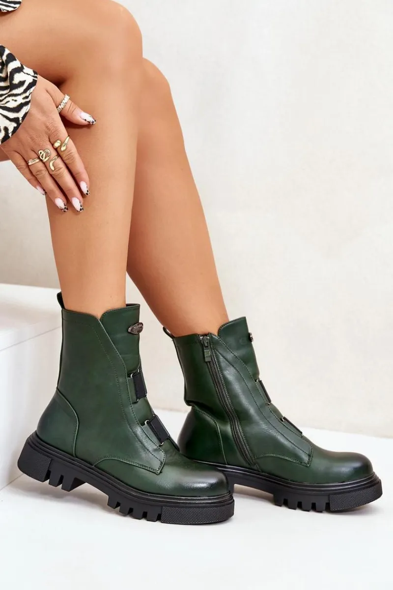 Botki Ocieplane|Botki Zimowe Damskie>Boto Ocieplane Botki Workery Damskie Na Zamek Eko Skórzane Zielone Mailyra