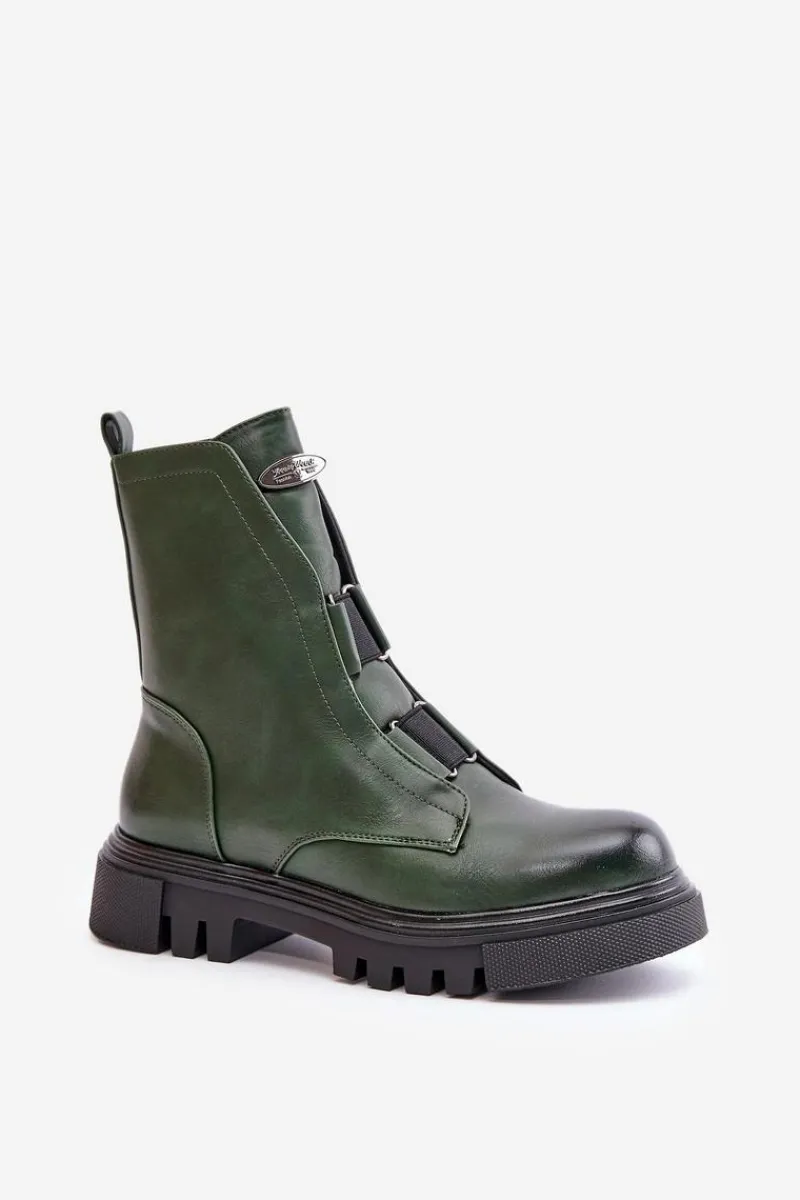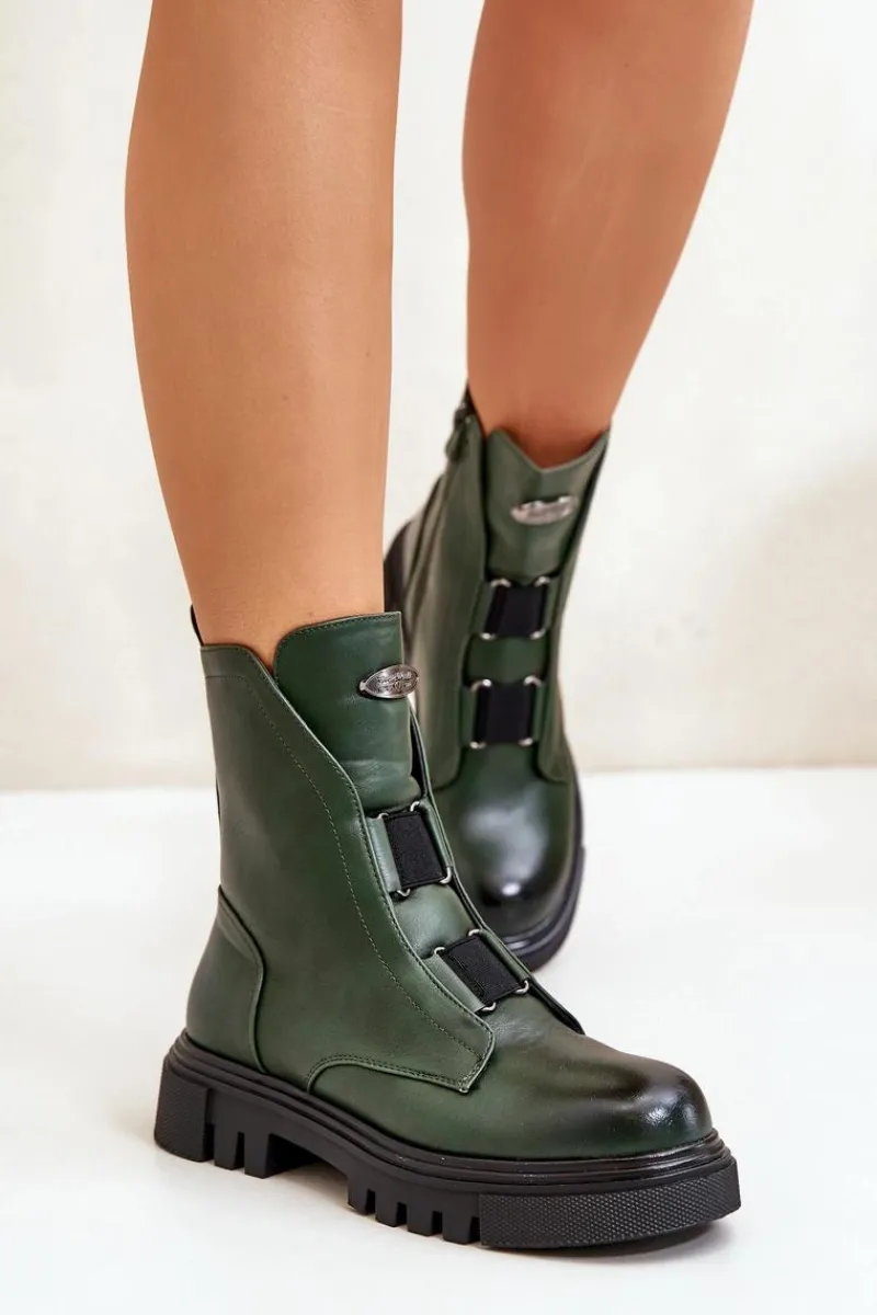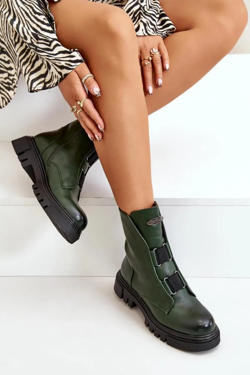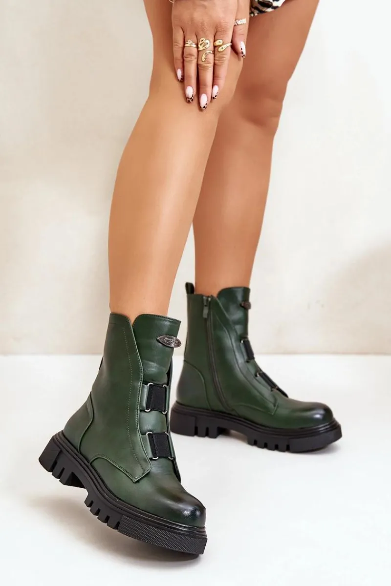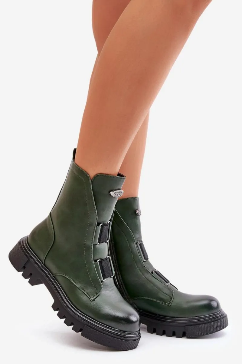 Botki Ocieplane|Botki Zimowe Damskie>Boto Ocieplane Botki Workery Damskie Na Zamek Eko Skórzane Zielone Mailyra