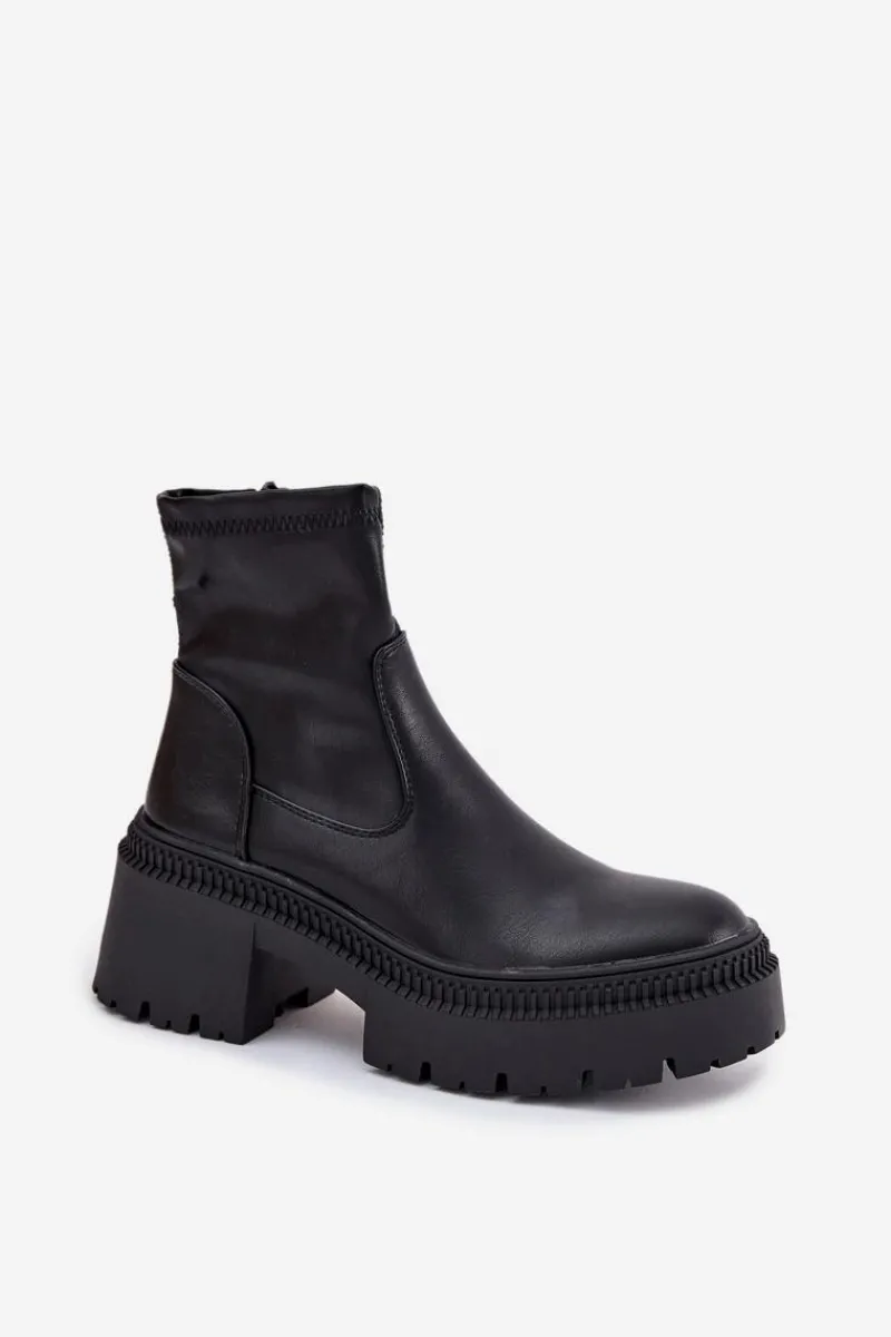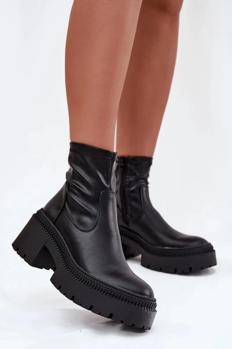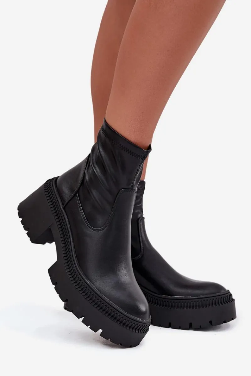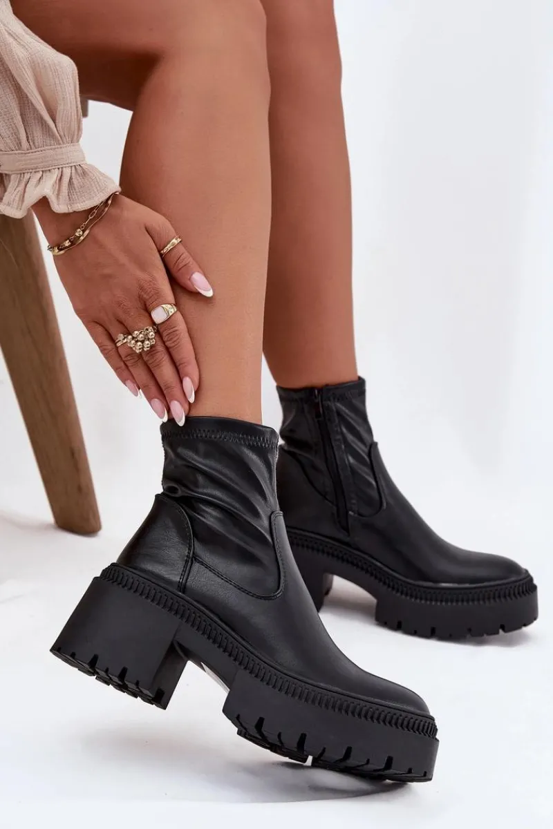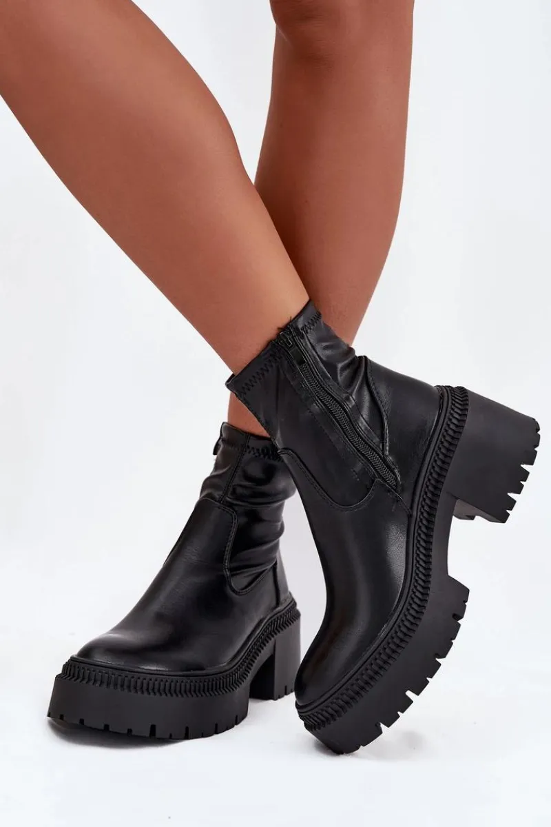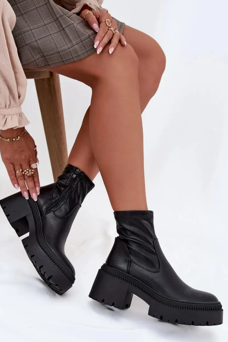 Botki damskie z przylegającą cholewką sięgającą za kostkę to eleganckie połączenie mody i komfortu. Solidny obcas typu klocek wraz z platformą gwarantuje stabilność i subtelnie wydłuża nogi, a zamek po boku umożliwia szybkie zakładanie i idealne dopasowanie do stopy. Ten uniwersalny model doskonale sprawdzi się zarówno w codziennych zestawach, jak i w bardziej stylowych, wyjściowych stylizacjach. Przy wyborze rozmiaru prosimy sugerować się tabelą rozmiarów.