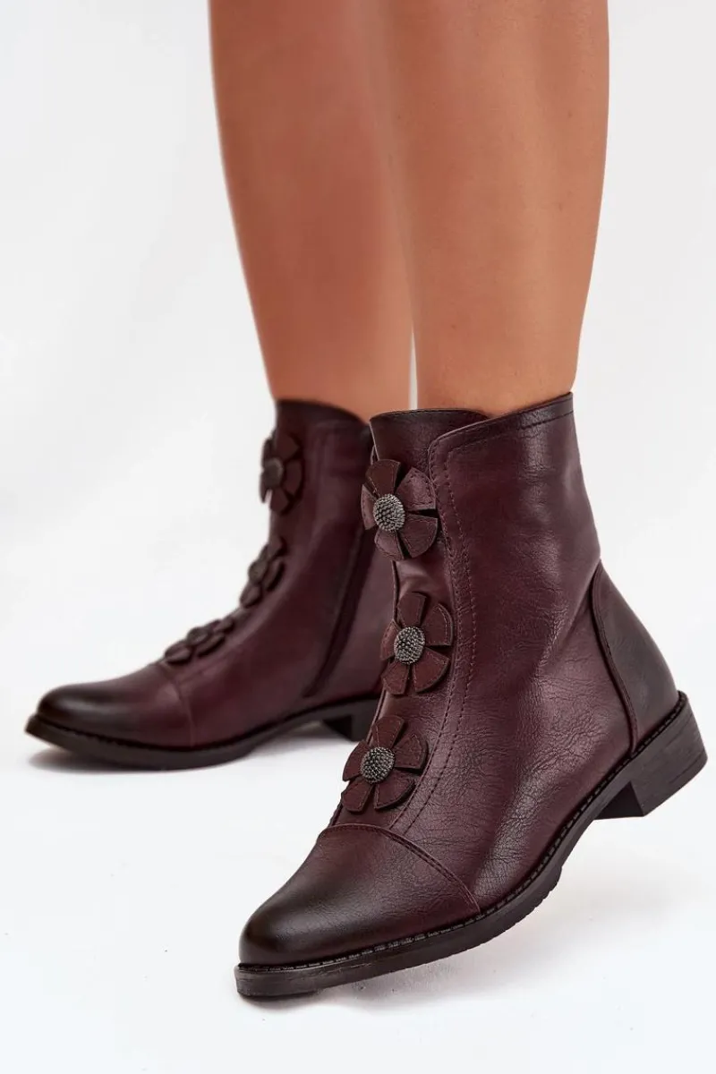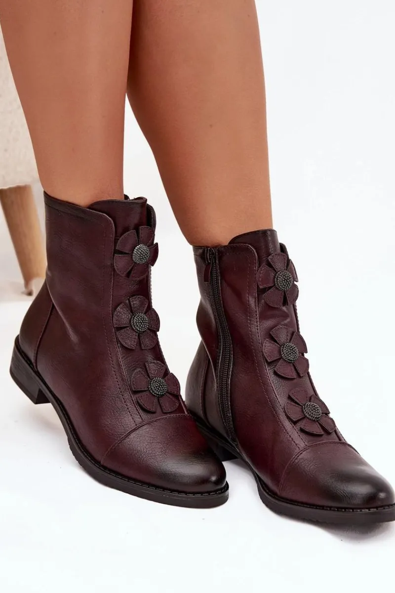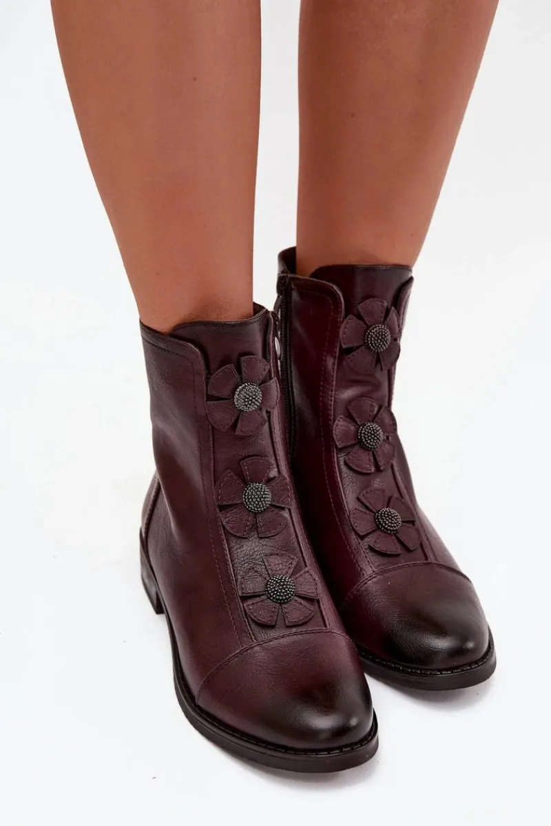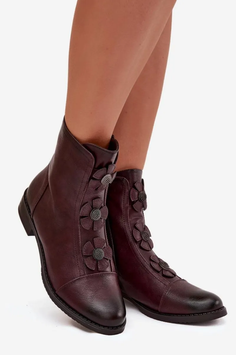Botki damskie marki Jezzi to propozycja, która łączy wygodę z subtelną elegancją. Wykonane z wysokiej jakości eko skóry prezentują się stylowo i są łatwe w codziennym użytkowaniu. Osadzone na płaskim obcasie zapewniają komfort noszenia przez cały dzień, a praktyczny zamek ułatwia zakładanie i zdejmowanie. Uwagę przyciągają trzy ozdobne kwiatki umieszczone z przodu cholewki, które dodają dziewczęcego uroku i sprawiają, że model wyróżnia się na tle klasycznych fasonów. To botki idealne na co dzień – wygodne, praktyczne i jednocześnie pełne stylowych detali. Przy wyborze rozmiaru prosimy sugerować się tabelą rozmiarów.