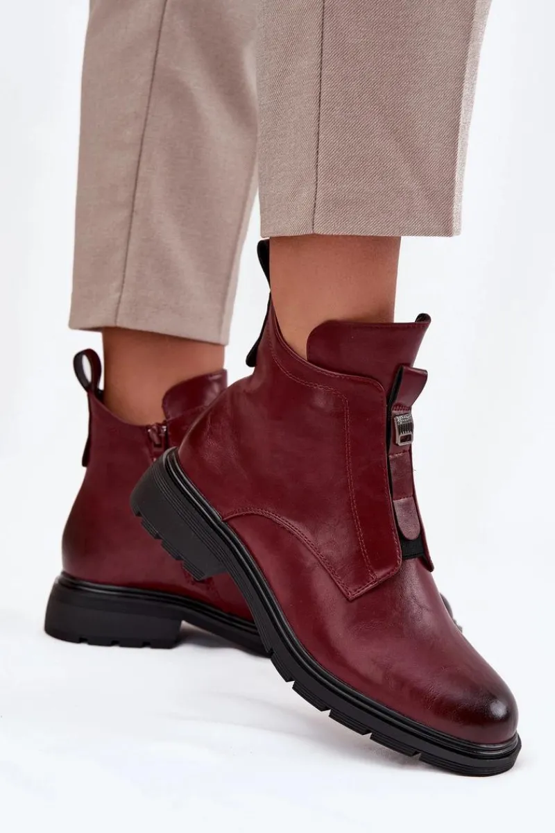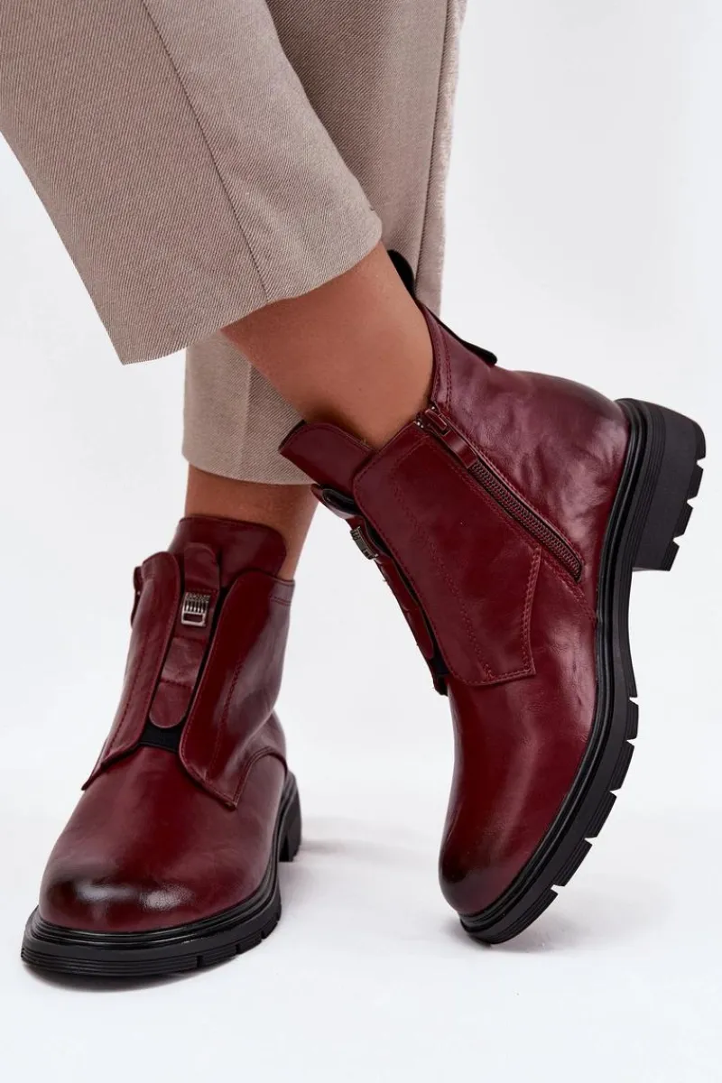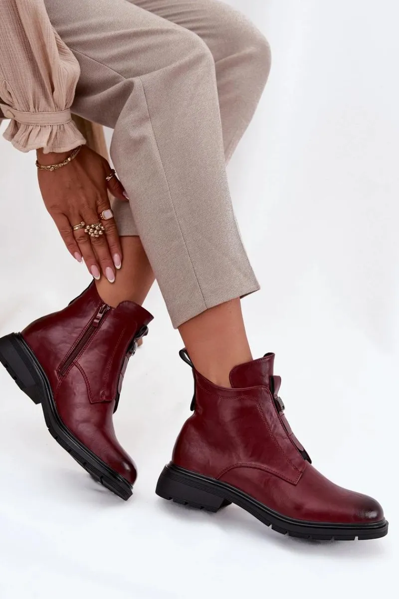 Botki damskie od marki Jezzi to praktyczne połączenie wygody i stylu na chłodniejsze dni. Wykonane z wysokiej jakości eko skóry, prezentują elegancki wygląd przy zachowaniu trwałości i łatwości w utrzymaniu. Osadzone na płaskim obcasie, zapewniają stabilny krok i komfort podczas codziennego noszenia. Model jest zapinany na zamek, co ułatwia szybkie zakładanie i dopasowanie do stopy. Wnętrze ocieplone, gwarantuje ciepło w chłodne dni, a subtelny, ozdobny detal z przodu cholewki dodaje charakteru i modnego akcentu, który wyróżnia je w codziennych stylizacjach. Idealne do casualowych zestawów, jak i do nieco bardziej eleganckich outfitów. Przy wyborze rozmiaru prosimy sugerować się tabelą rozmiarów.