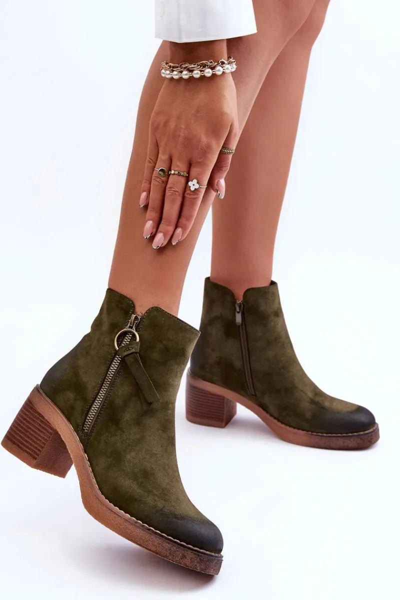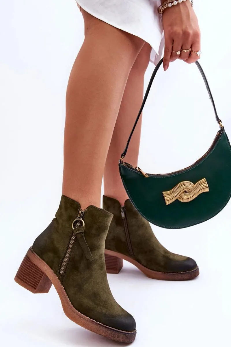 Botki Ocieplane|Czarne Botki>Boto Zamszowe Klasyczne Botki Damskie Zielone Limoso