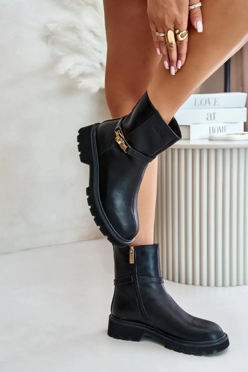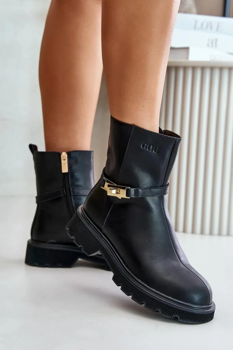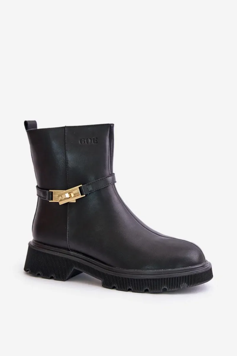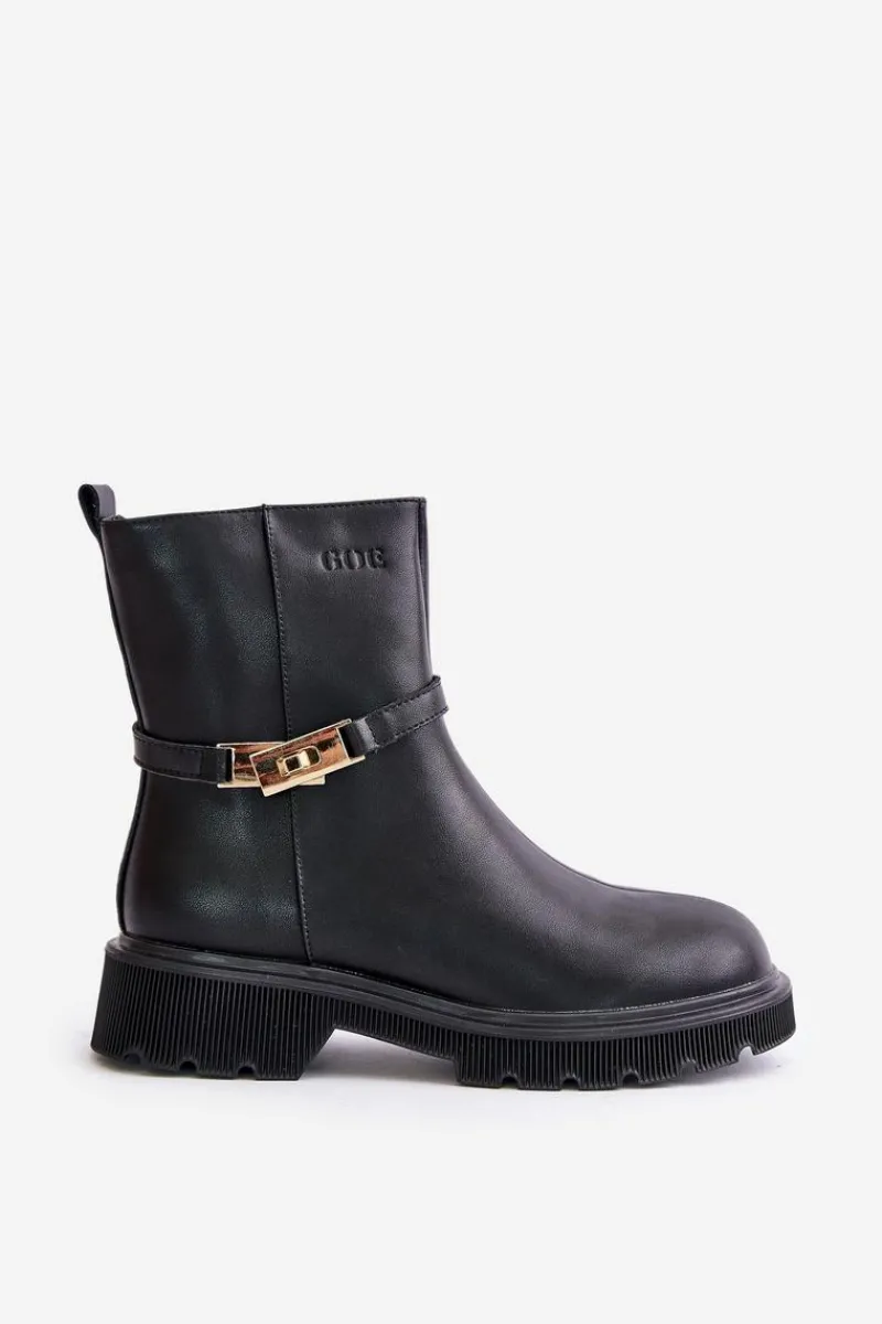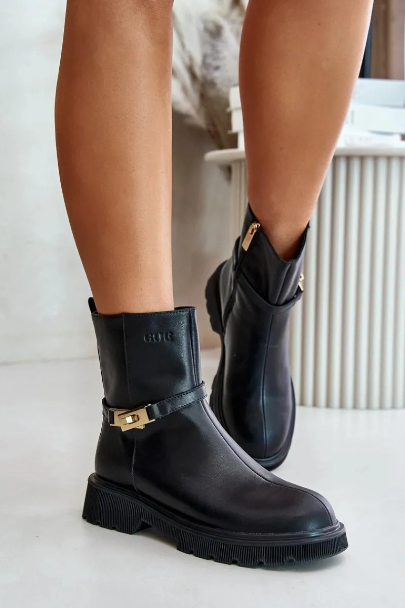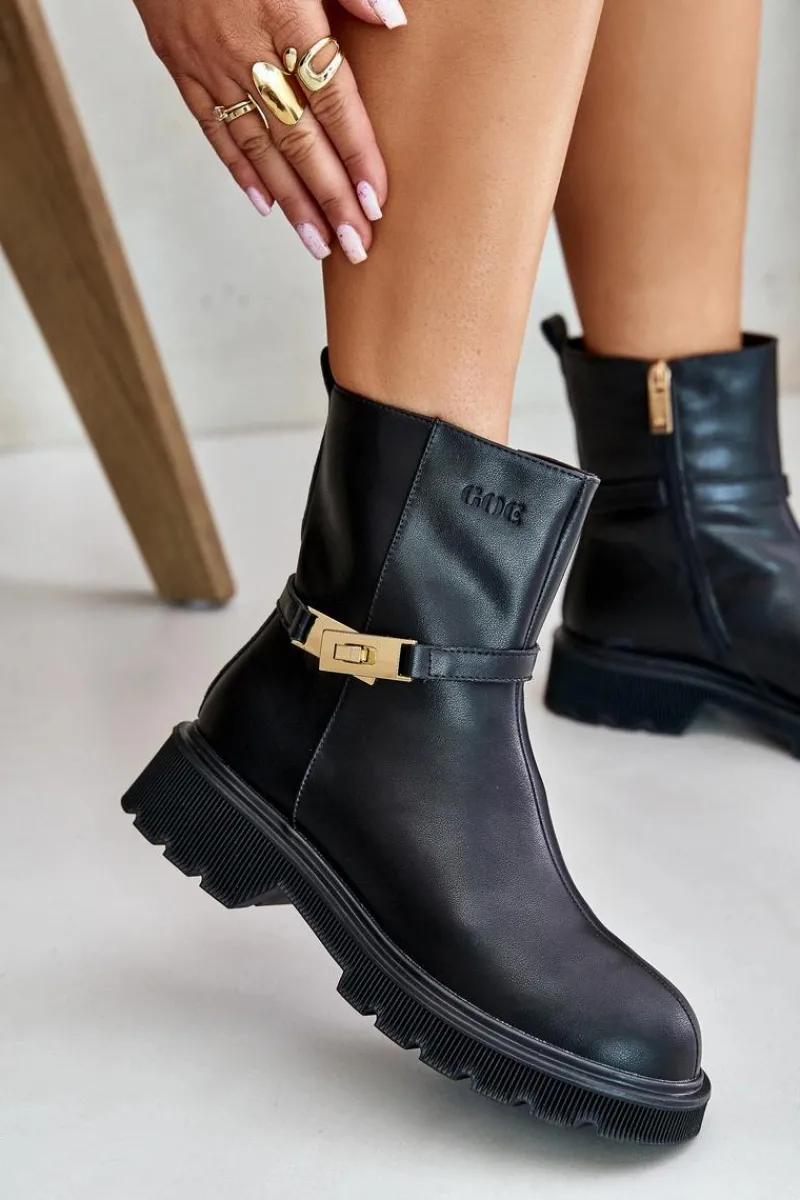 Botki damskie od marki Goe wykonane z wysokiej jakości naturalnej skóry to połączenie stylu i komfortu. Osadzone na płaskim obcasie, zapewniają wygodę noszenia przez cały dzień. Model zapinany na zamek, z zaokrąglonymi noskami oraz subtelnym paseczkiem ozdabiającym cholewkę, co dodaje im elegancji. Wnętrze ocieplane miękkim kocem obuwniczym, gwarantuje ciepło i wygodę w chłodniejsze dni. Przy wyborze rozmiaru prosimy kierować się tabelą rozmiarów