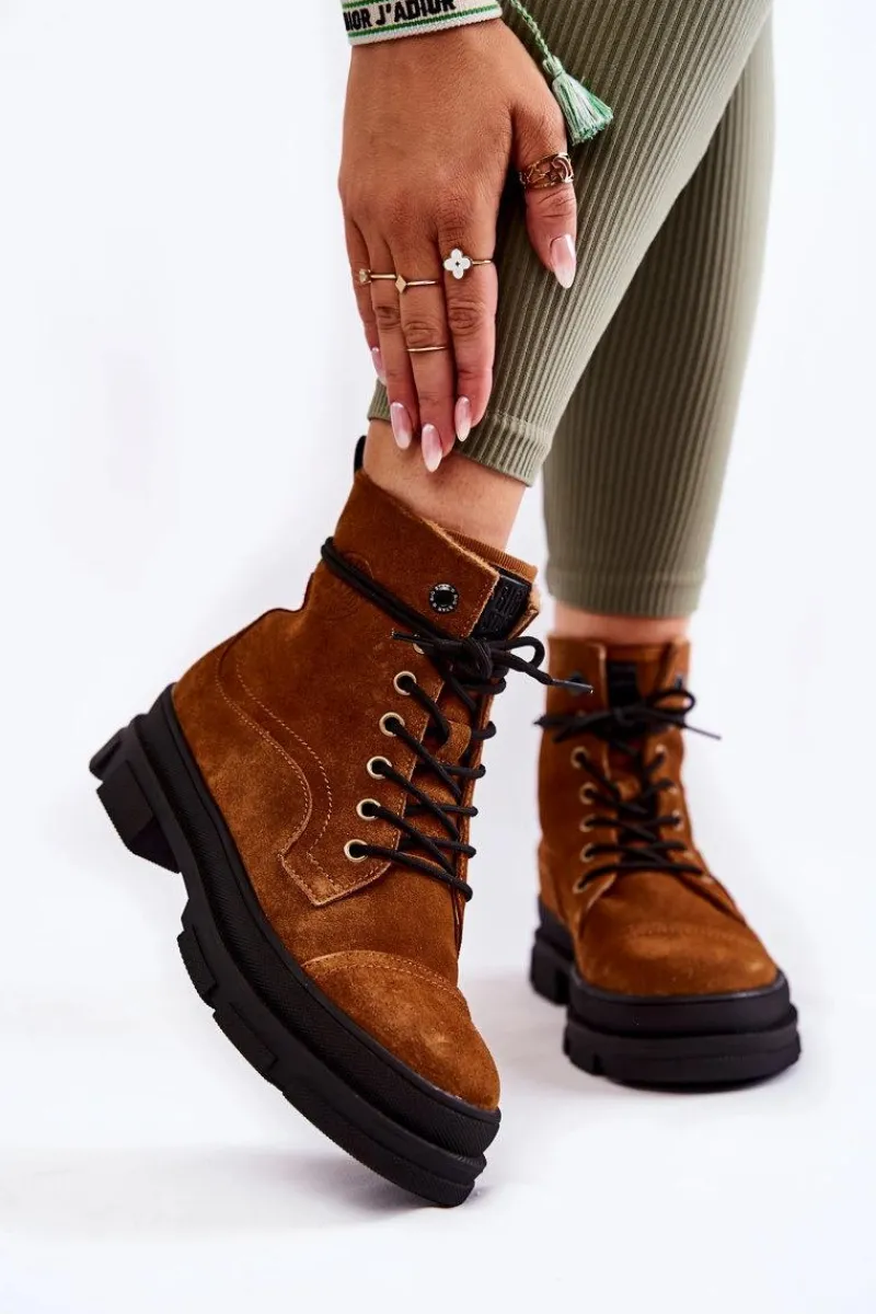 Botki — trapery marki Big Star wykonane zostały z naturalnego zamszu. Posiadają z boku tłoczone logo marki Big Star. Środek butów został ocieplony miłym w dotyku, delikatnym futerkiem. Masywna podeszwa oraz płaski obcas sprawiają, że botki są stabilne. Model z klasycznym sznurowaniem z przodu. Koniecznie powinnaś je mieć! Przy wyborze rozmiaru prosimy sugerować się tabelą rozmiarów.