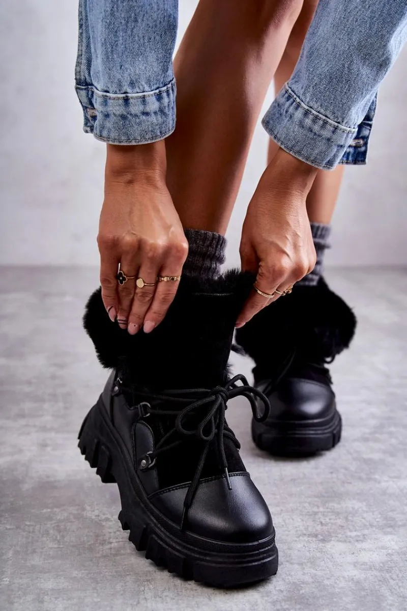 Ten model przypadnie do gustu niejednej miłośniczce wygodnego i ciepłego obuwia. Botki te posiadają miłe w dotyku futerko, które ochroni przed zimnem i wiatrem. Model osadzony na płaskim obcasie i platformie ze żłobieniami. Wykonane z połączenia eko zamszu i eko skóry. Świetny model na jesienno-zimowe dni! Koniecznie powinnaś je mieć w swojej szafie! Przy wyborze rozmiaru prosimy sugerować się tabelą rozmiarów.