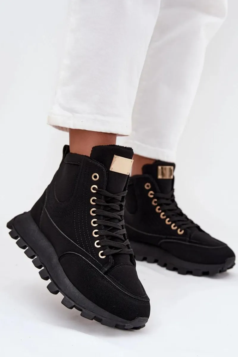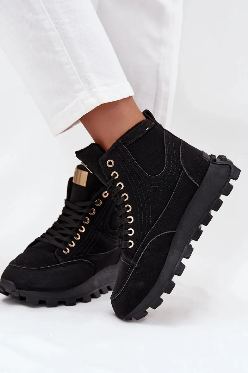 Botki trapery damskie wykonane z eko skóry. Osadzone na platformie z wyraźnymi wypustkami, zapewniają stabilność i modny wygląd. Sznurowany fason ułatwia dopasowanie do stopy, a wnętrze ocieplone kocem obuwniczym gwarantuje komfort i ciepło podczas noszenia. Przy wyborze rozmiaru prosimy sugerować się tabelą rozmiarów.