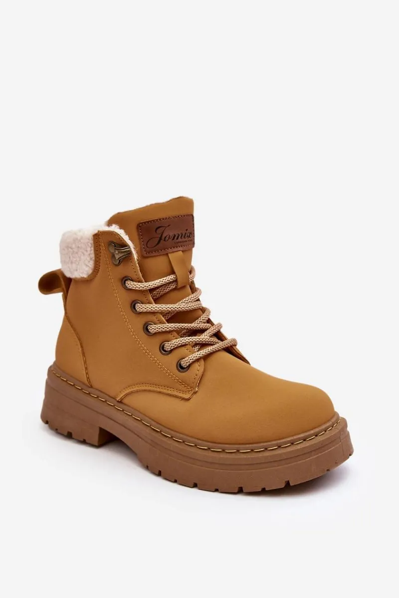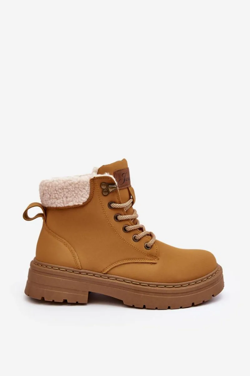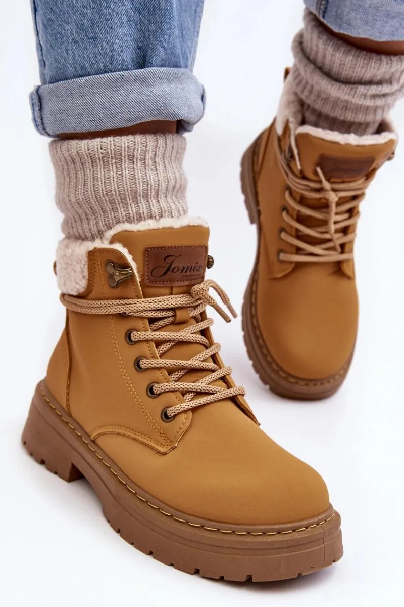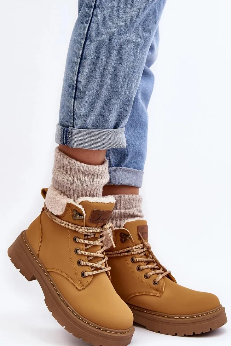 Trapery damskie wykonane z eko skóry. Osadzone na platformie oraz płaskim obcasie z gumowego tworzywa. Góra cholewki oraz wewnętrzna strona języka ocieplona syntetycznym kożuchem. Noski Zaokrąglone. Ten klasyczny model traperów zachwyci każdego! Przy wyborze rozmiaru prosimy sugerować się tabelą rozmiarów.