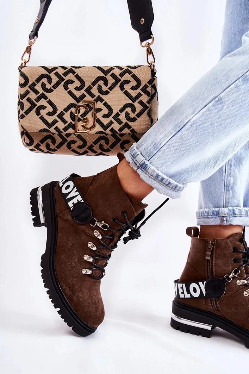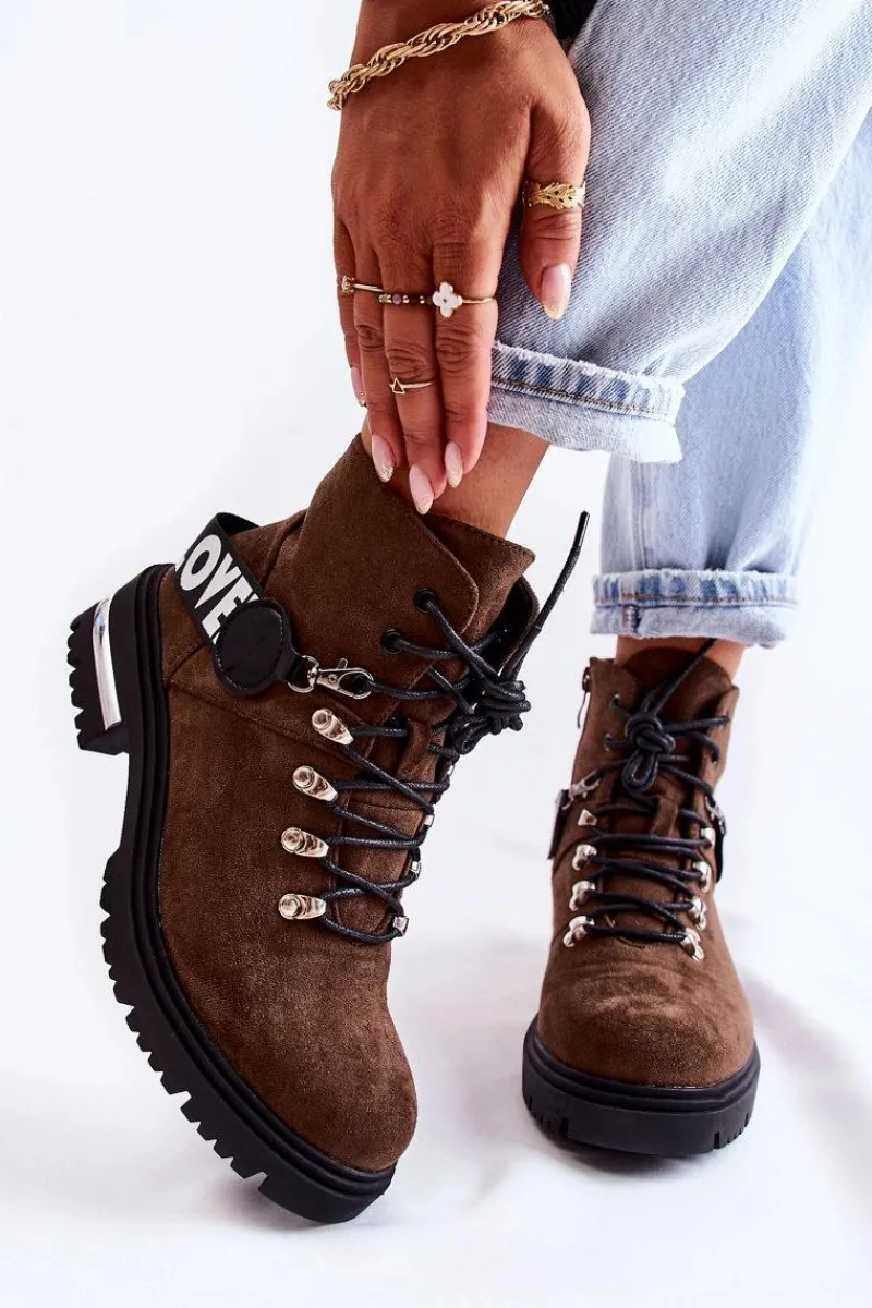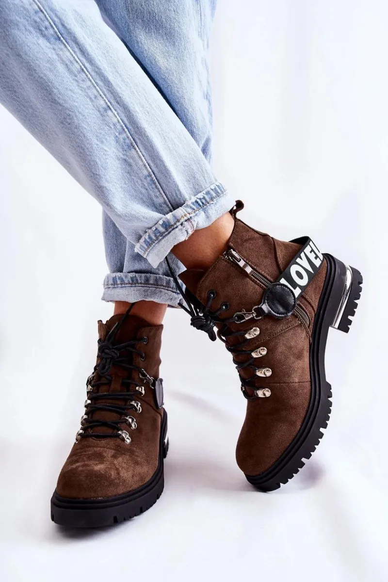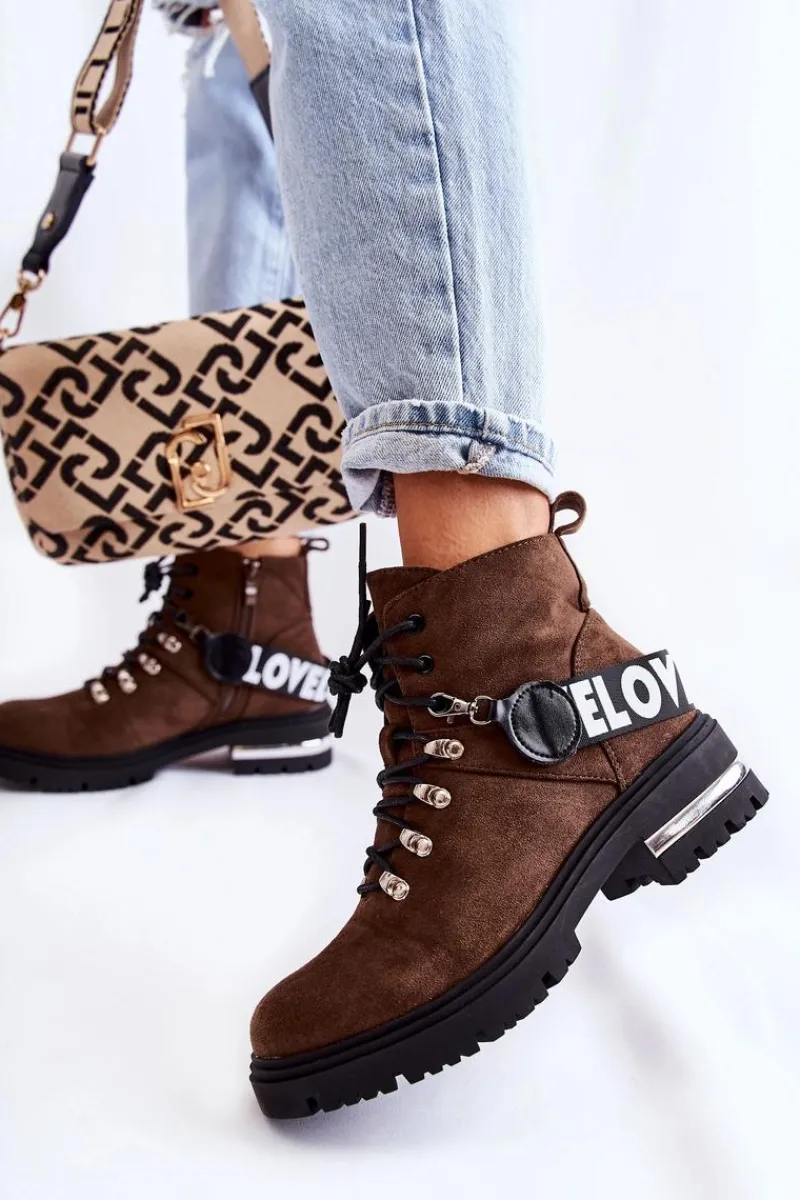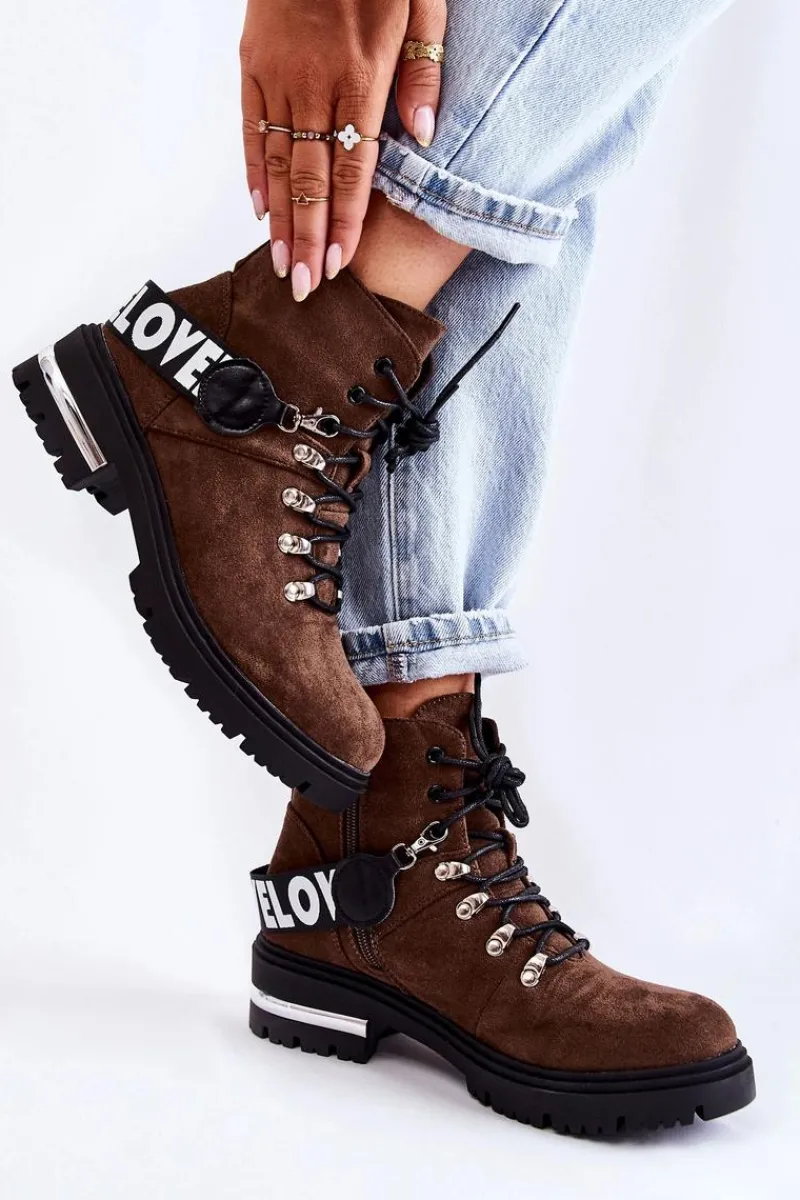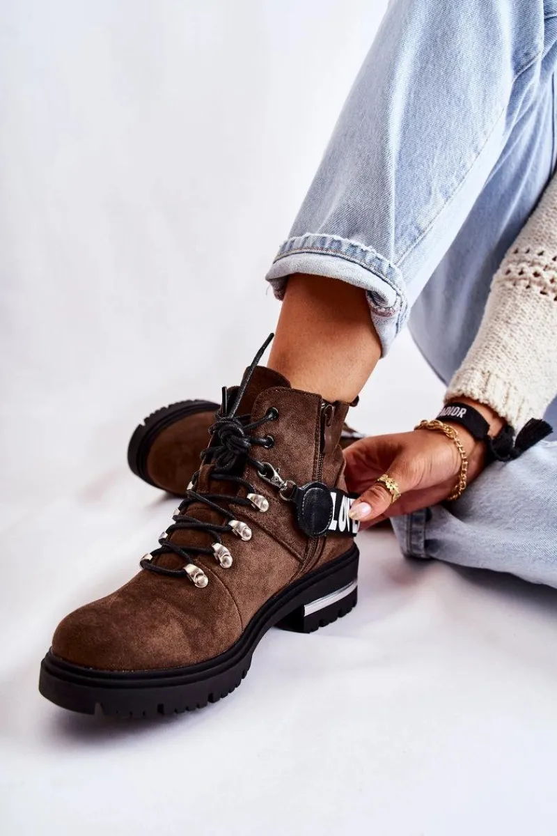 Botki Ocieplane|Damskie Trapery>Boto Zamszowe Ocieplane Botki Z Paskiem Ciemnobrązowe Aurelio