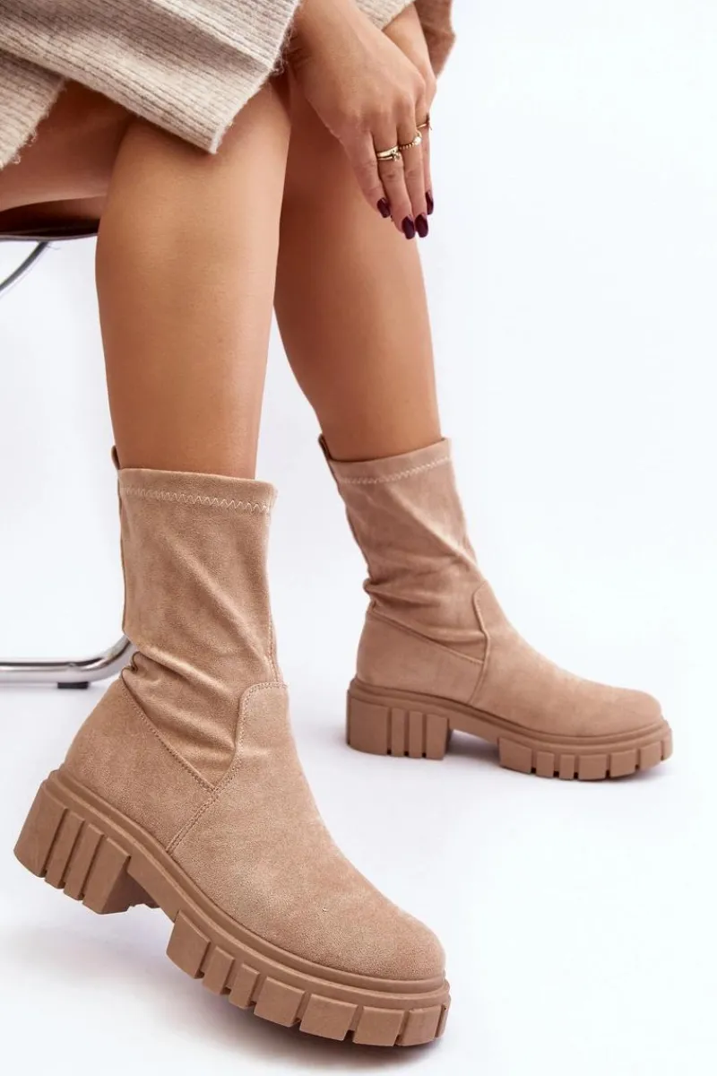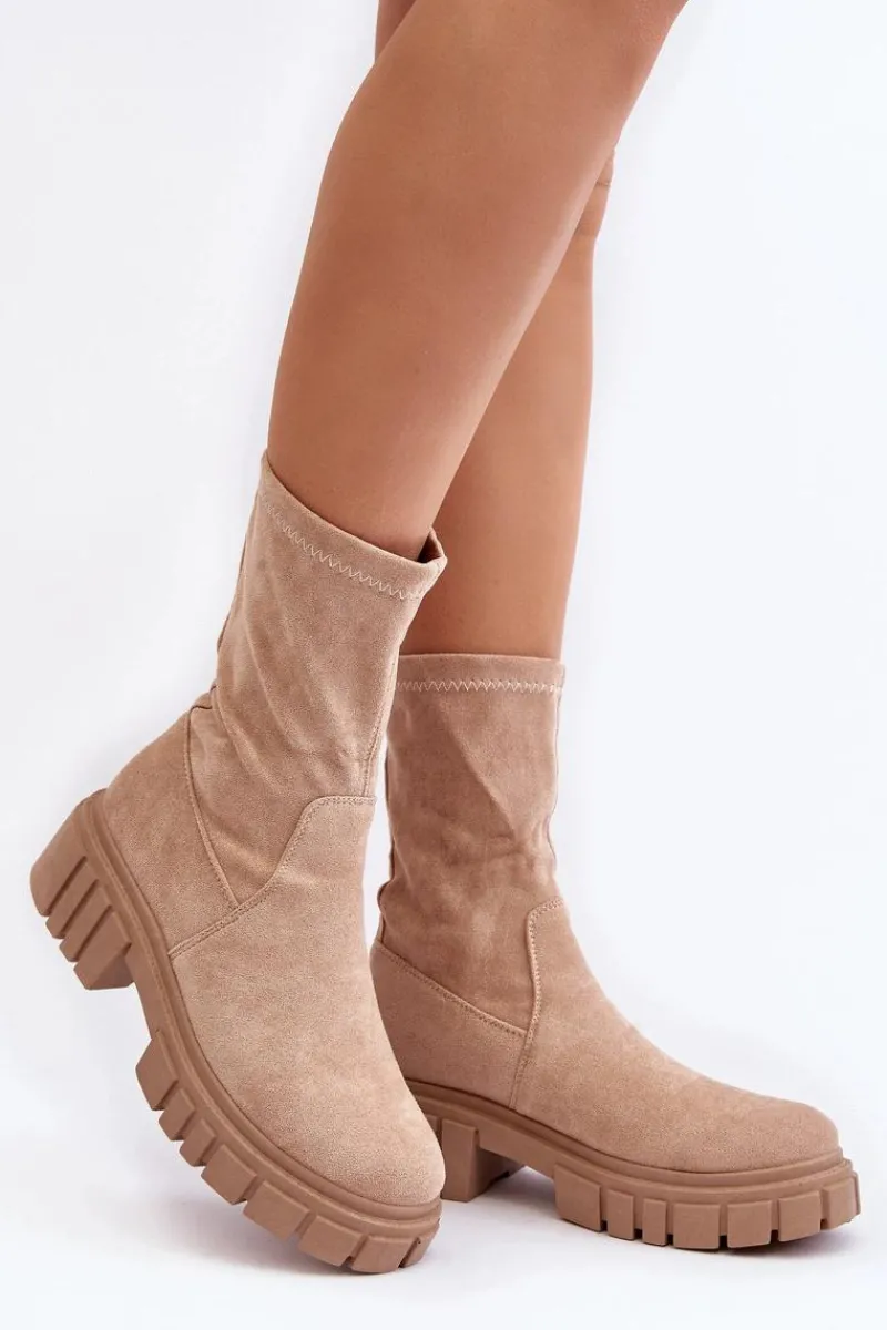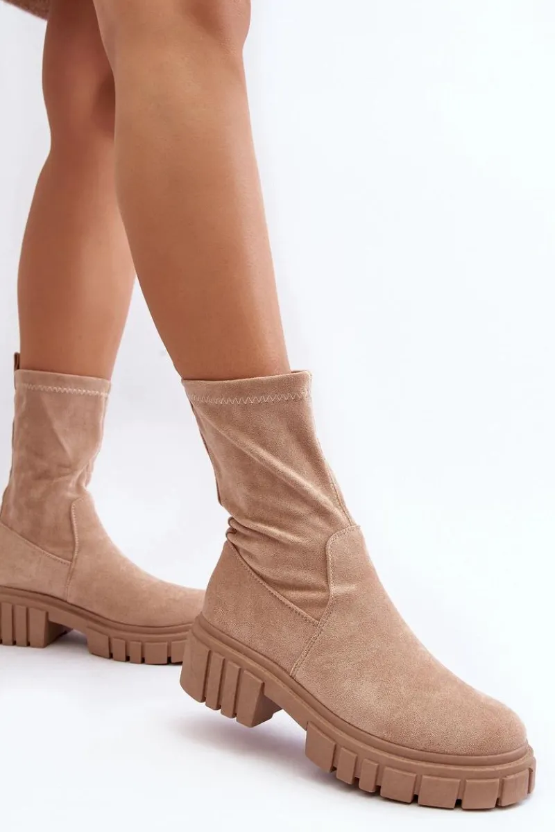 Botki Płaskie|Botki Workery>Boto Wsuwane Botki Workery Na Płaskim Obcasie Beżowe Divella