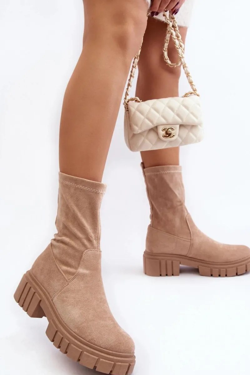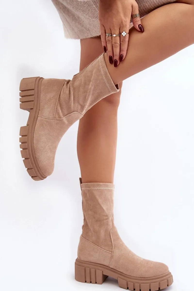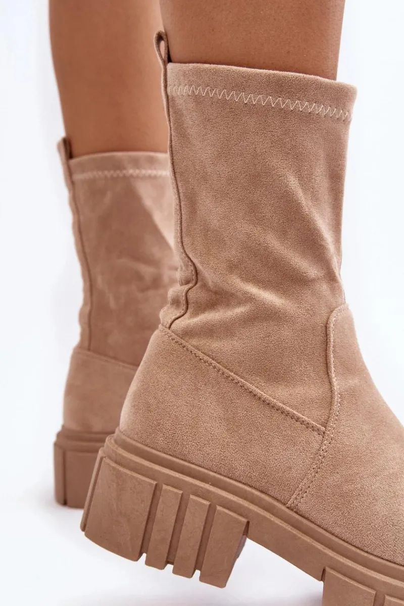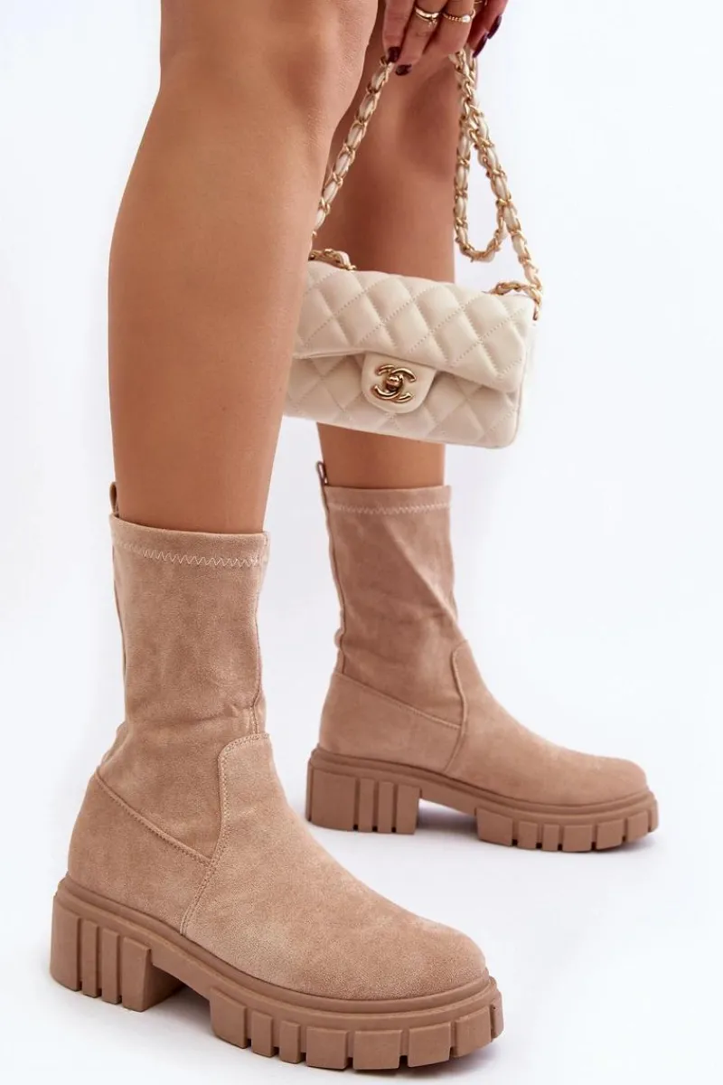 Botki Płaskie|Botki Workery>Boto Wsuwane Botki Workery Na Płaskim Obcasie Beżowe Divella