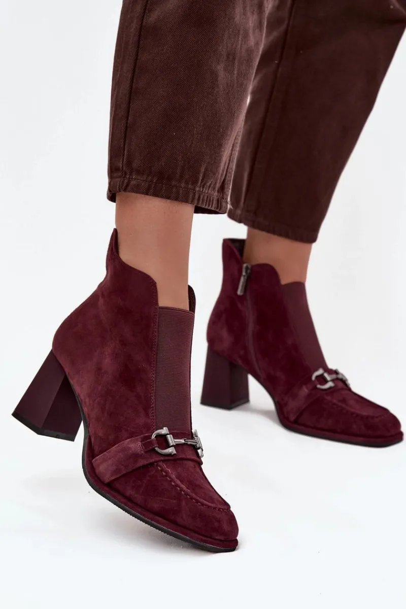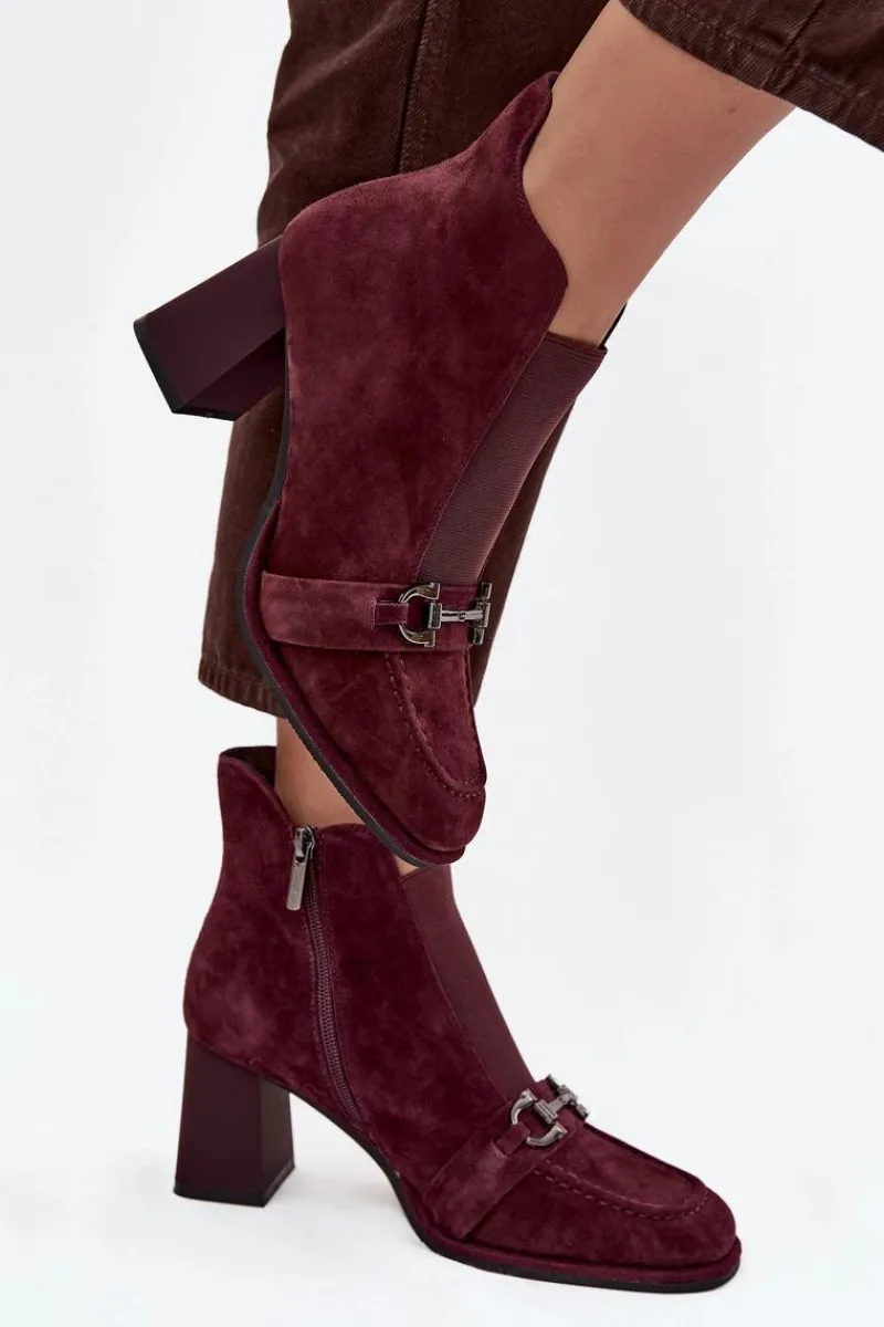 Botki damskie marki Artiker to elegancka propozycja na chłodniejsze dni, łącząca styl z wygodą. Wykonane z naturalnego zamszu prezentują się wyjątkowo szykownie, a delikatnie zaokrąglone noski podkreślają ich klasyczny charakter. Model osadzony został na stabilnym obcasie typu słupek, który pięknie wysmukla sylwetkę, a jednocześnie zapewnia komfort w codziennym noszeniu. Wnętrze wykończono kocem obuwniczym, dzięki czemu buty są ciepłe i sprawdzą się w sezonie jesienno-zimowym. Uwagę przyciąga pasek z ozdobnym elementem umieszczony z przodu, który dodaje oryginalności i subtelnej elegancji. To stylowe obuwie idealne do uzupełnienia zarówno codziennych, jak i bardziej formalnych stylizacji. Przy wyborze rozmiaru prosimy sugerować się tabelą rozmiarów.