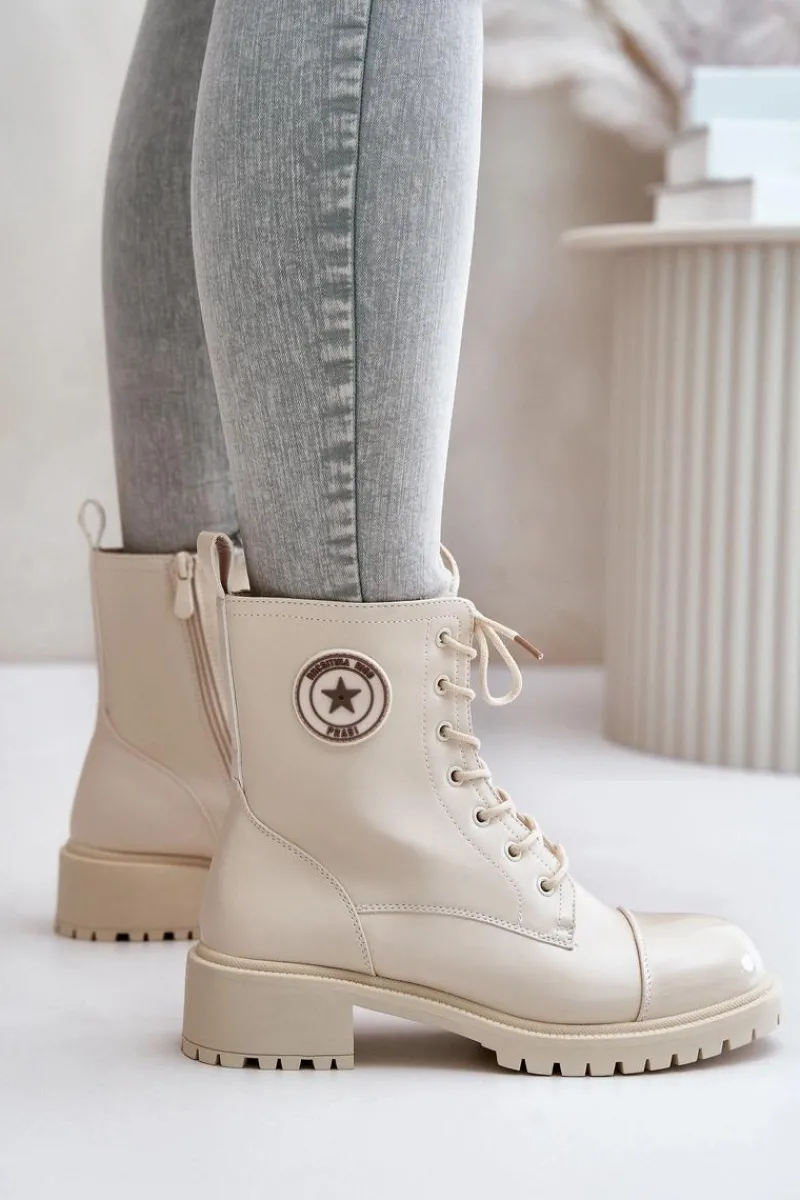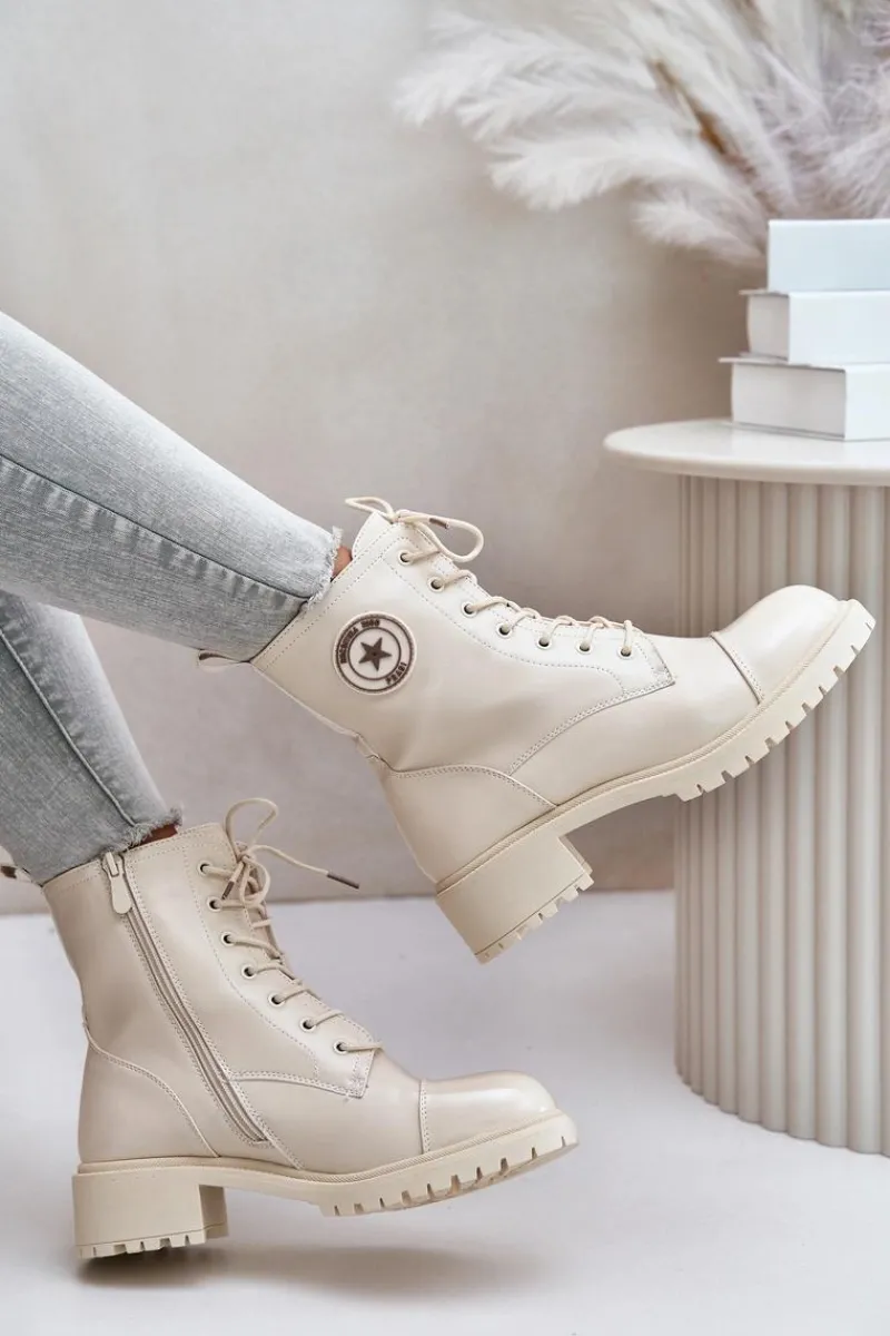 Damskie botki workery wykonane z ekologicznej skóry, ocieplane kocem obuwniczym, idealnie sprawdzą się w chłodniejsze dni. Model zapinany na zamek oraz sznurowany, co zapewnia doskonałe dopasowanie do stopy i wygodę noszenia. Klasyczny design w połączeniu z funkcjonalnością czyni je stylowym wyborem na co dzień. Przy wyborze rozmiaru prosimy sugerować się tabelą rozmiarów.