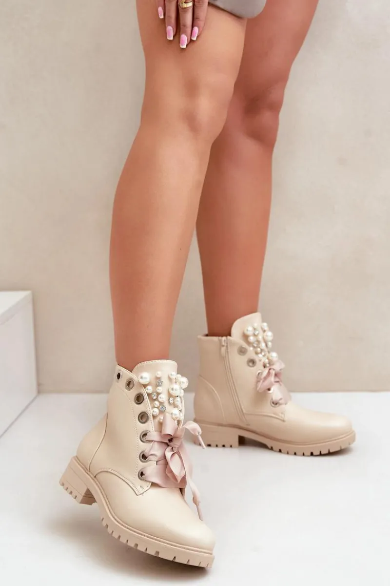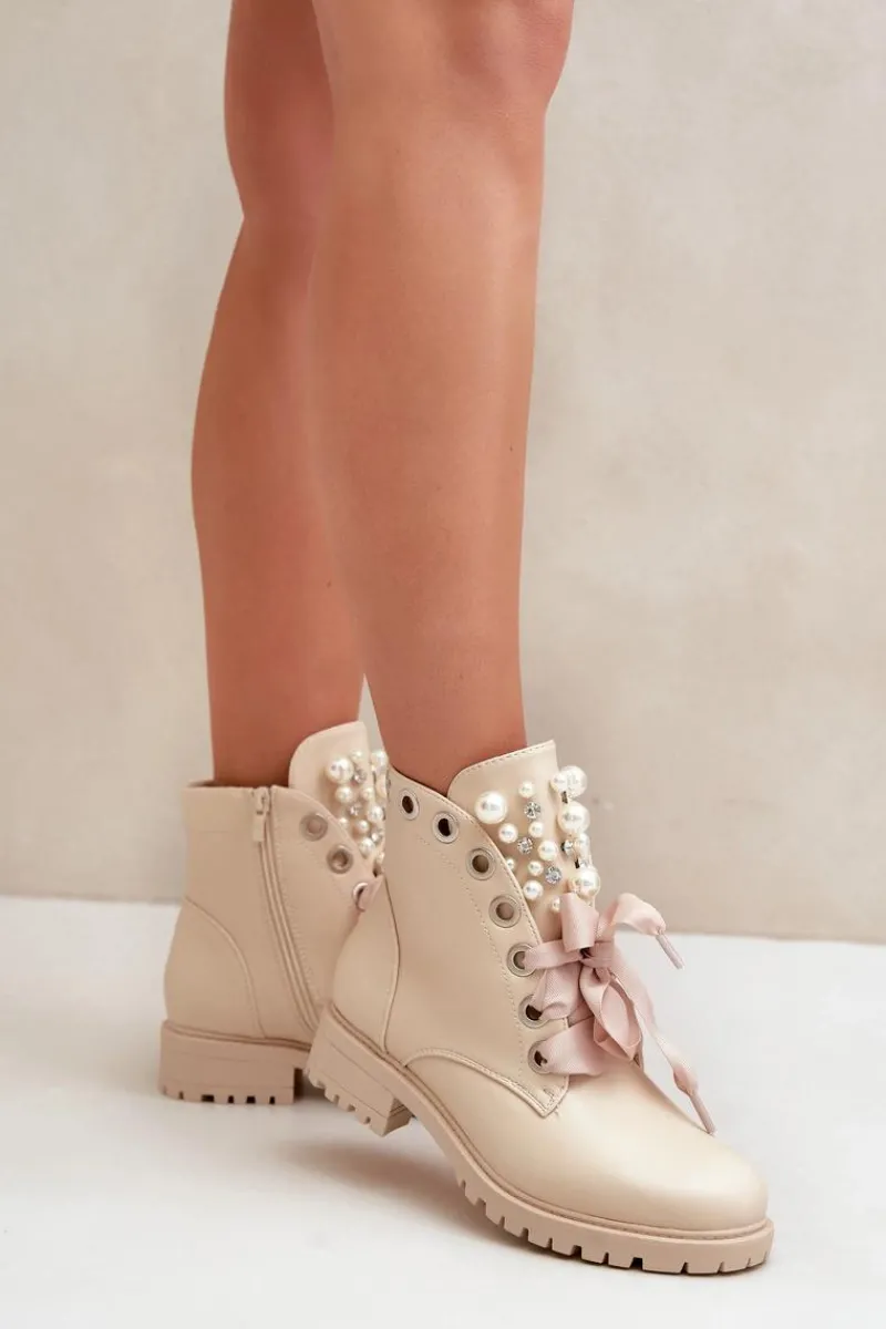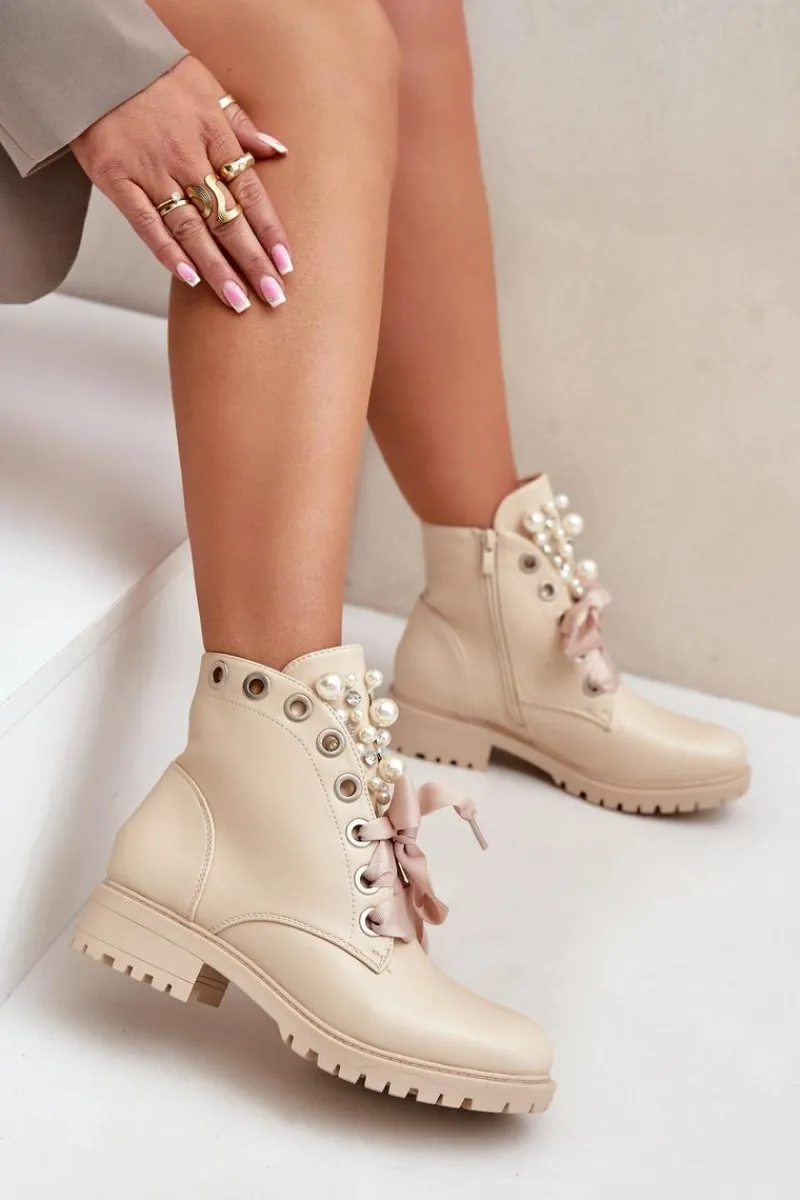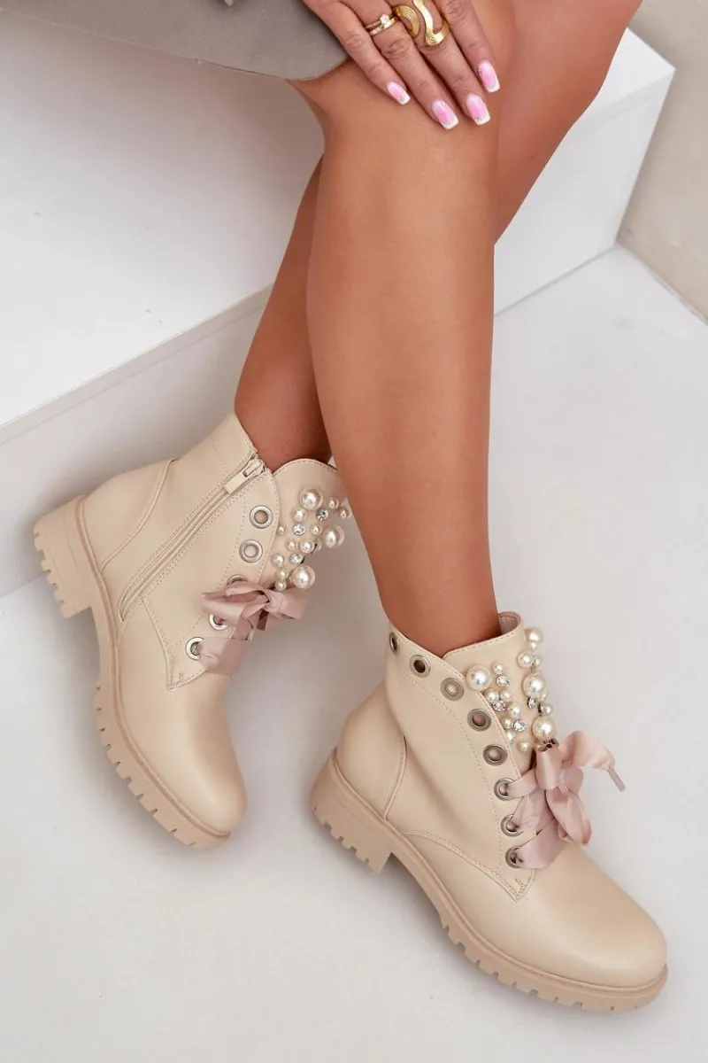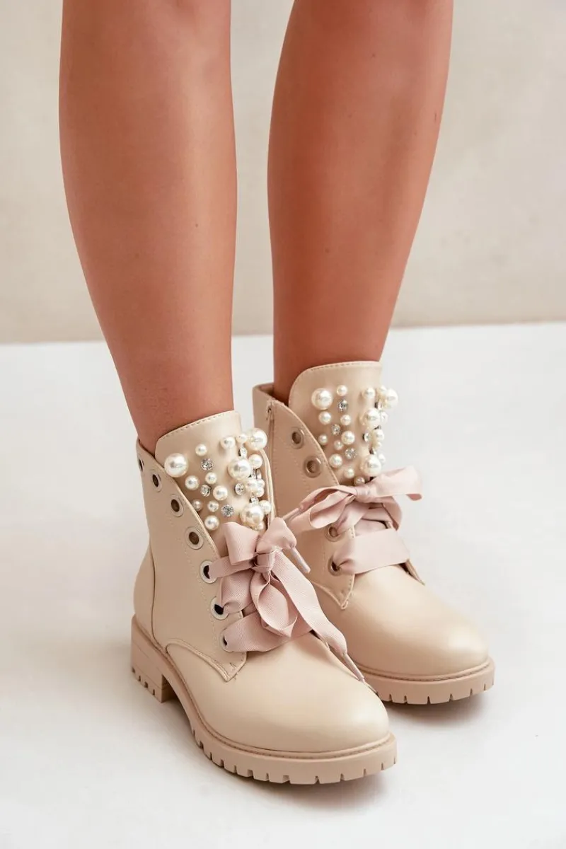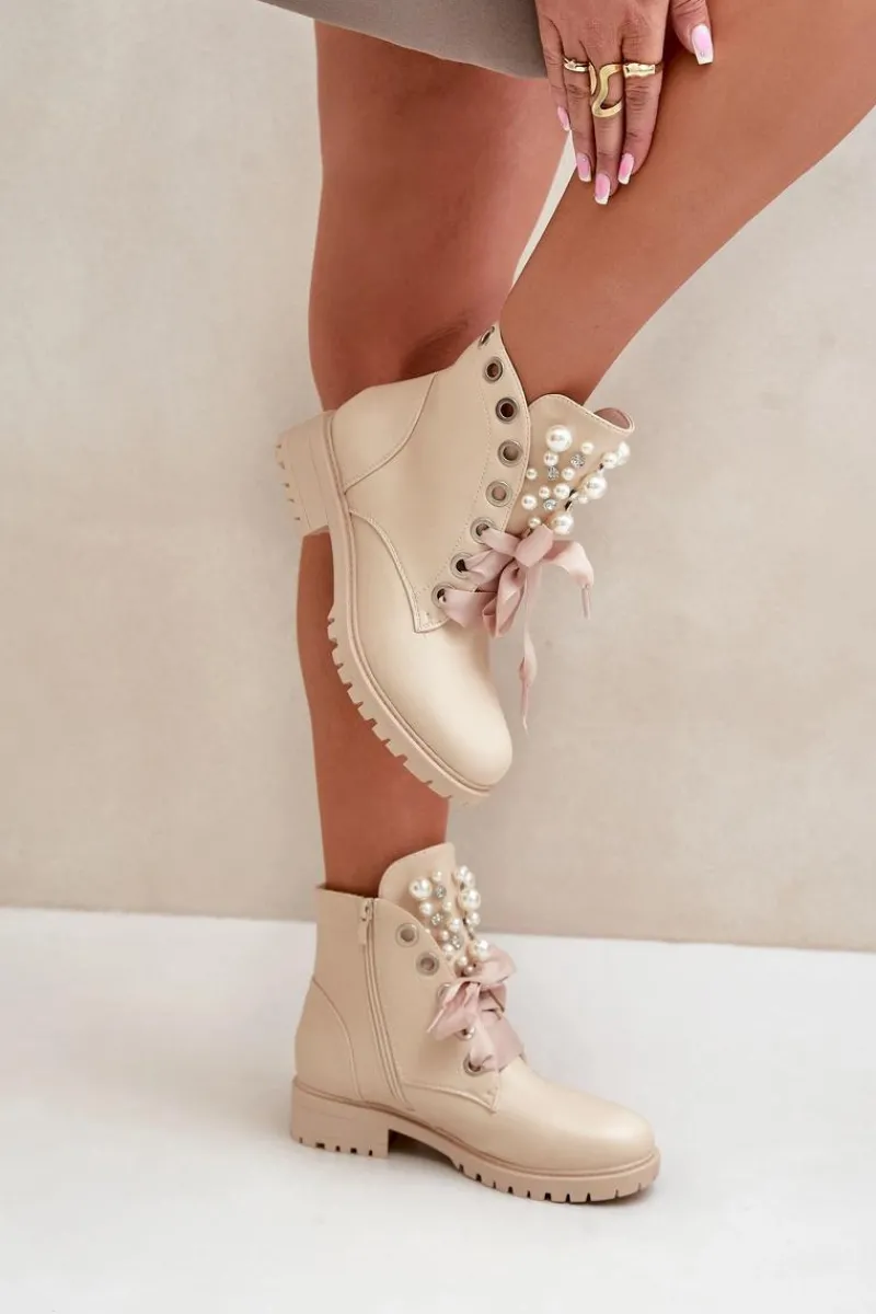 Wyjątkowe botki damskie wykonane z eko skóry. Model wyróżnia się krojem cholewki oraz ozdobami. Przy wyborze rozmiaru prosimy sugerować się tabelą rozmiarów.
