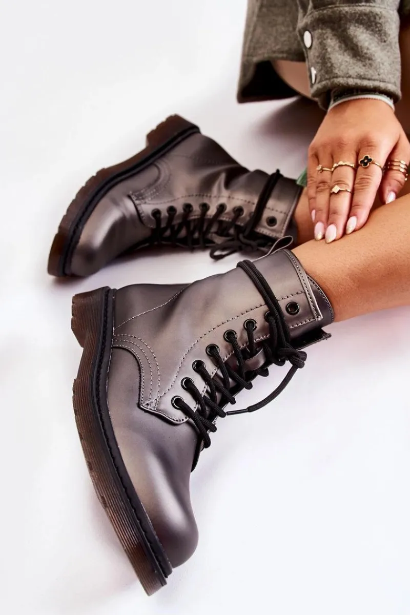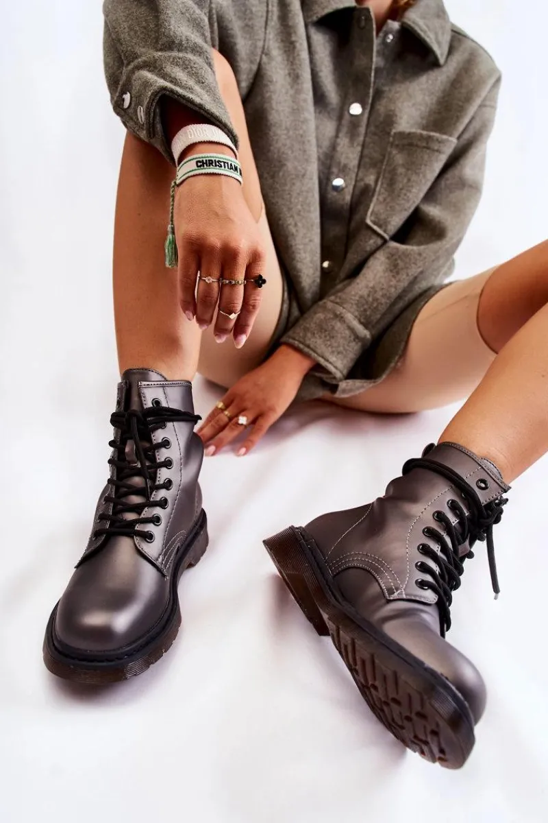 Damskie botki z cholewką za kostkę zostały wykonane z tworzywa. Model ten posiada usztywniany zapiętek. Botki wiązane na okrągłe sznurowadła. Osadzone na niskiej platformie i płaskim obcasie wykonanym z tworzywa gumowego. Są antypoślizgowe. W środku posiadają ocieplenie w postaci koca obuwniczego. Sprawdź także pozostałe modele botków! Przy wyborze rozmiaru prosimy sugerować się tabelą rozmiarów.