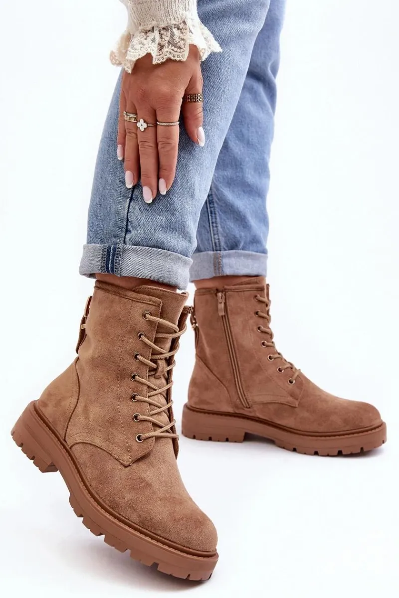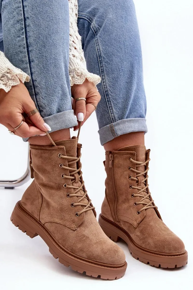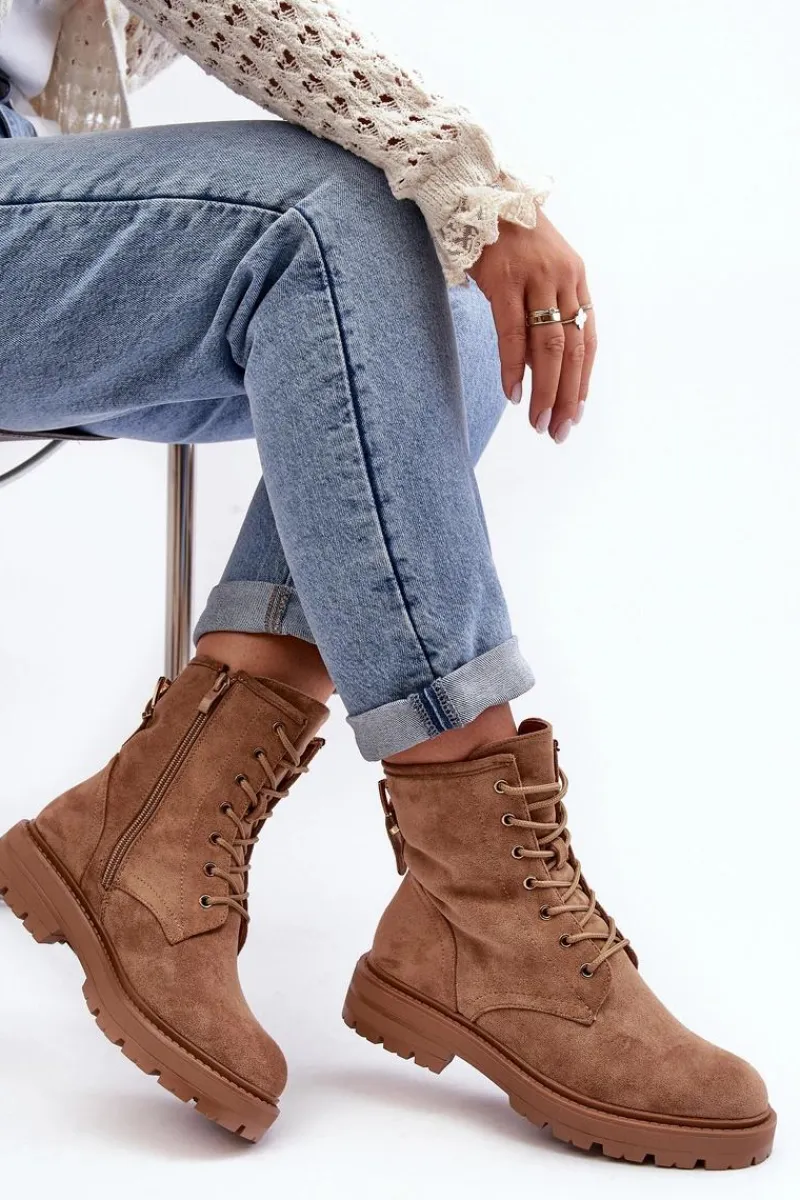 Botki Sznurowane|Botki Zimowe Damskie>Boto Damskie Botki Workery Na Suwak Jasnobrązowe Ninsuni