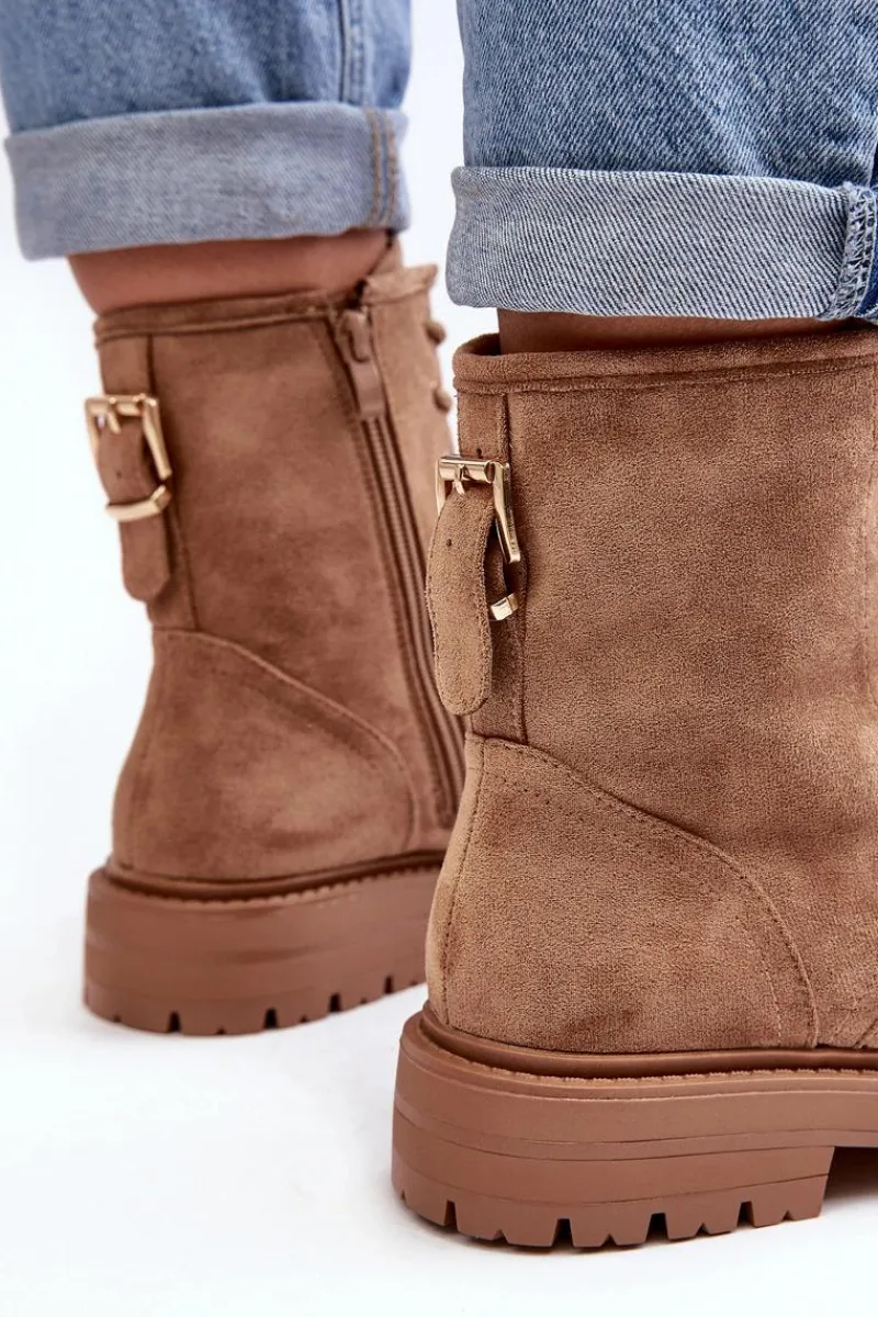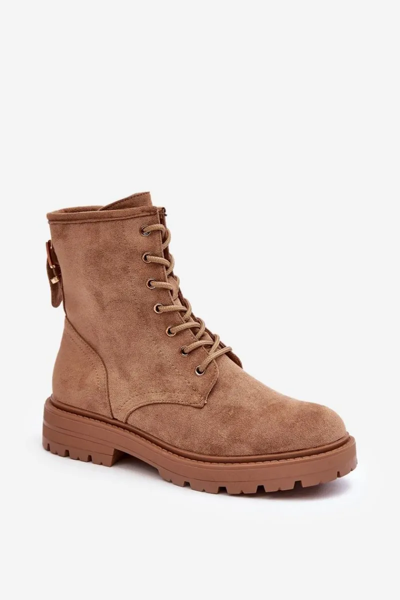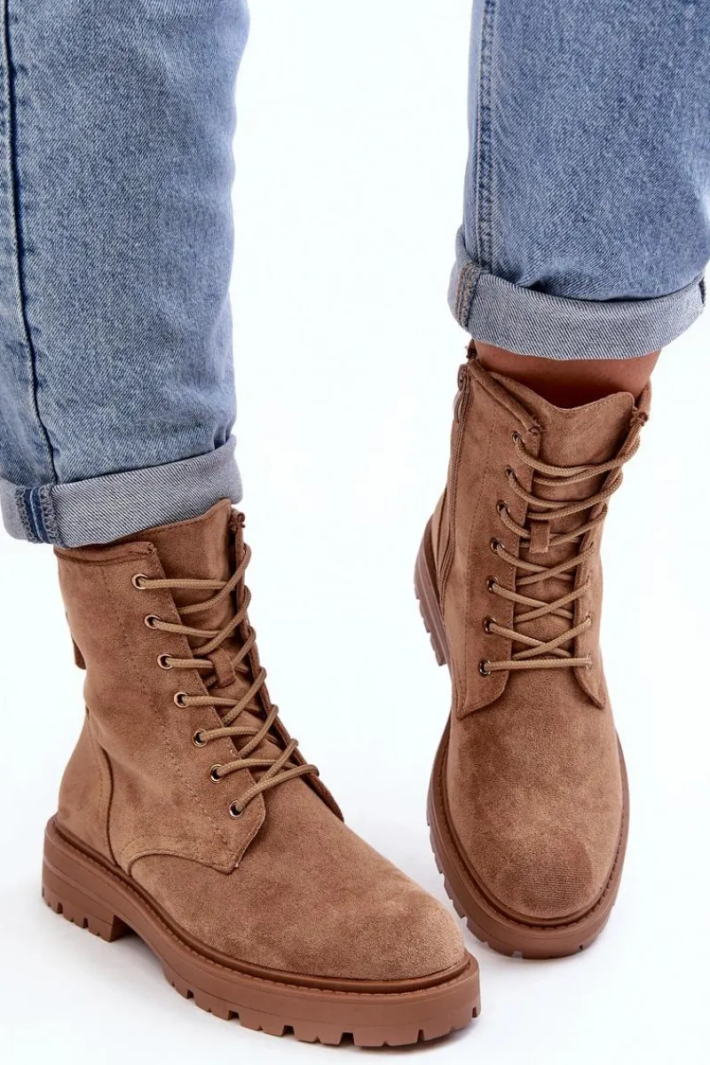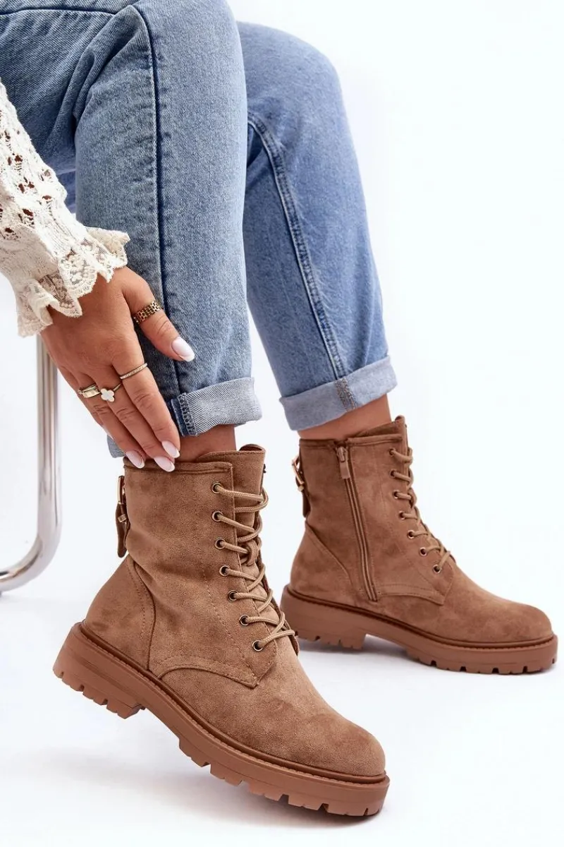 Botki Sznurowane|Botki Zimowe Damskie>Boto Damskie Botki Workery Na Suwak Jasnobrązowe Ninsuni