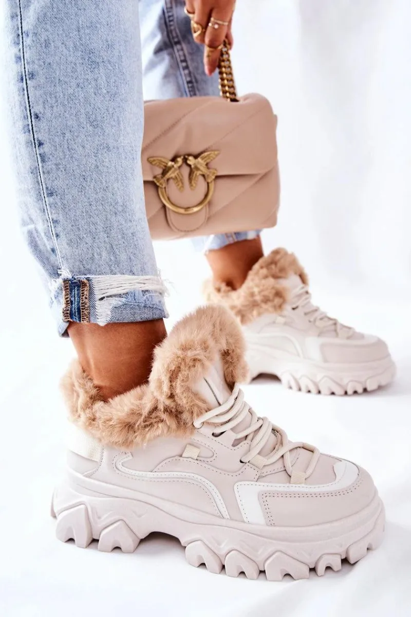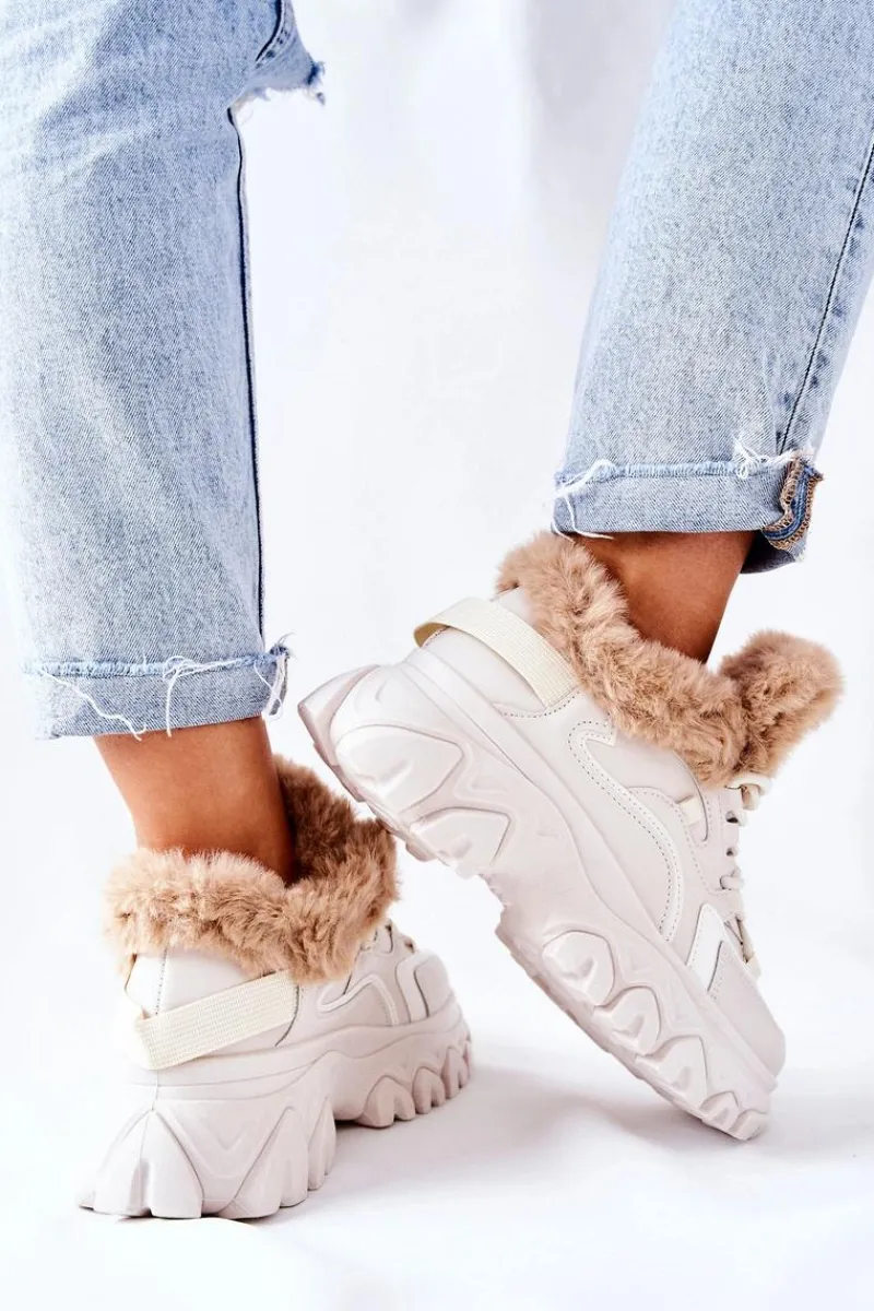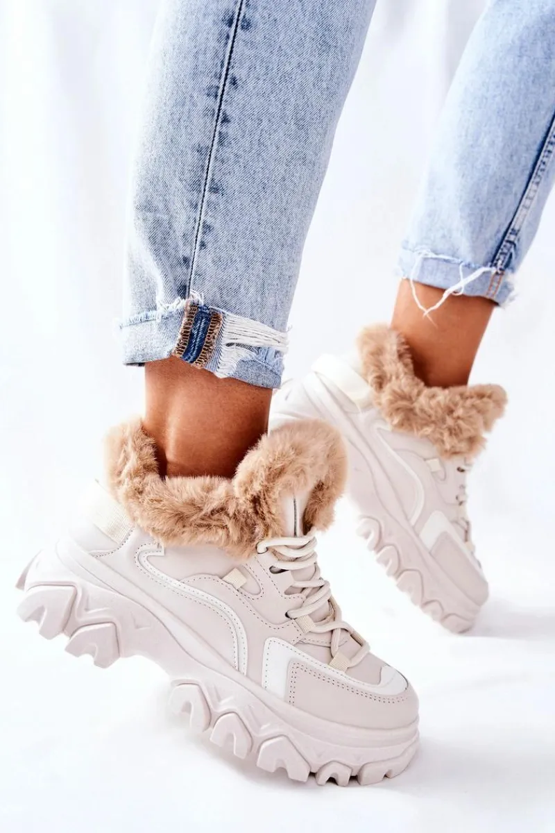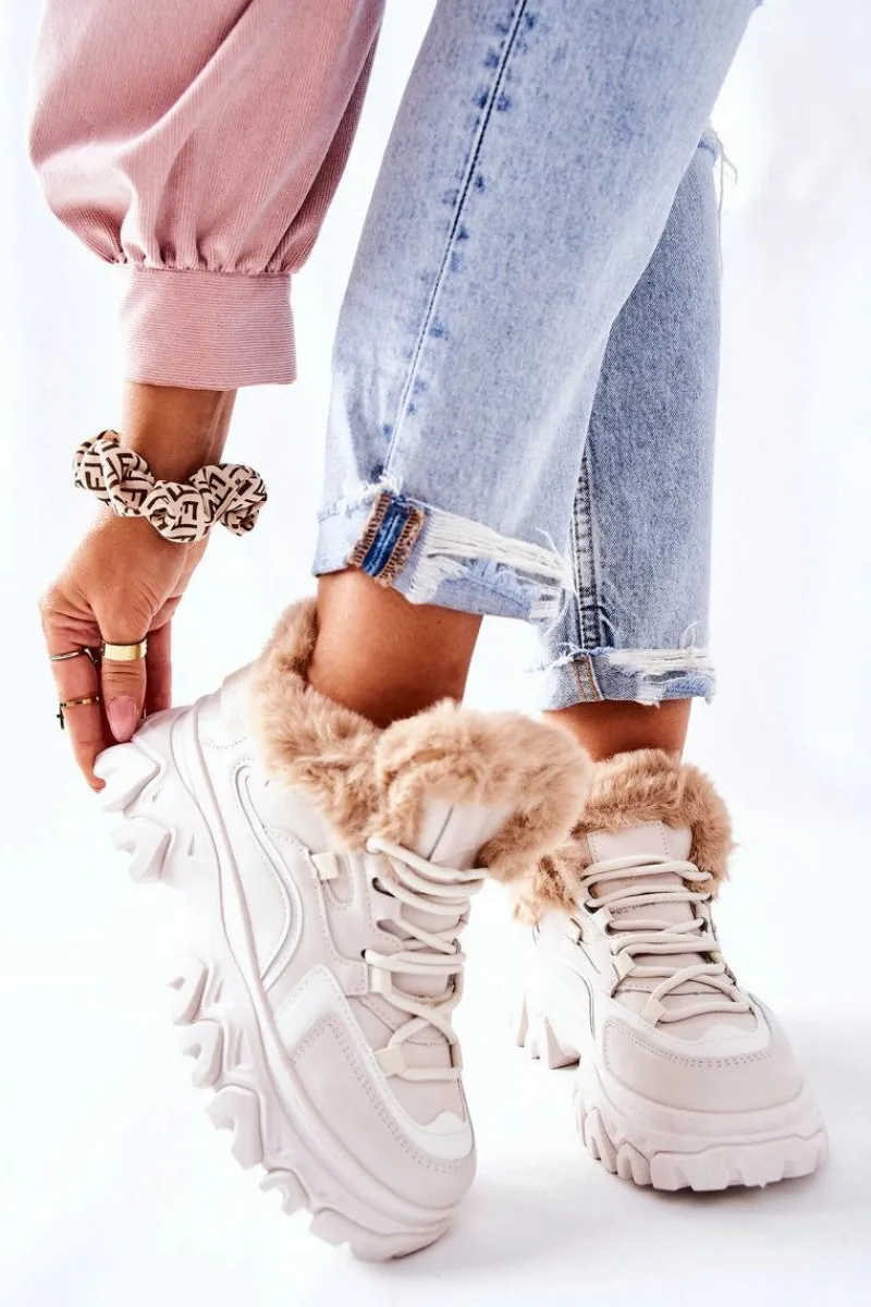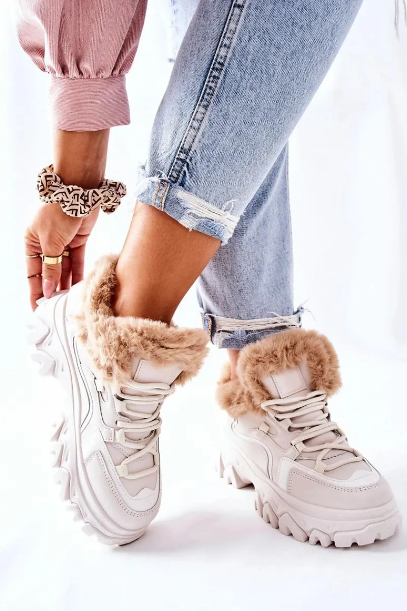Trapery wykonane są ze skóry ekologicznej. Wewnątrz znajduje się ciepłe i miłe w dotyku futerko. Buty idealnie sprawdzą się w zimowe dni! Przy wyborze rozmiaru prosimy sugerować się tabelą rozmiarów.