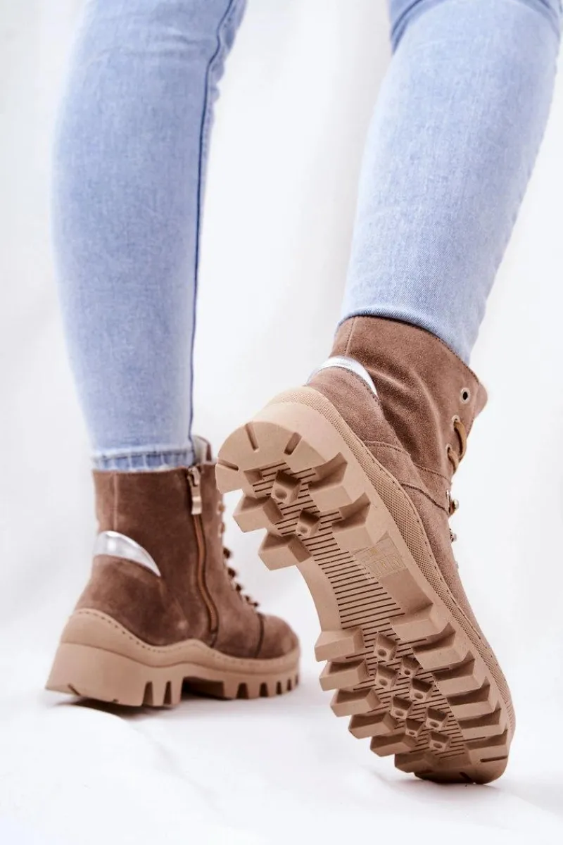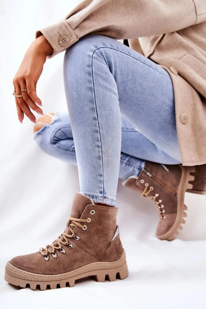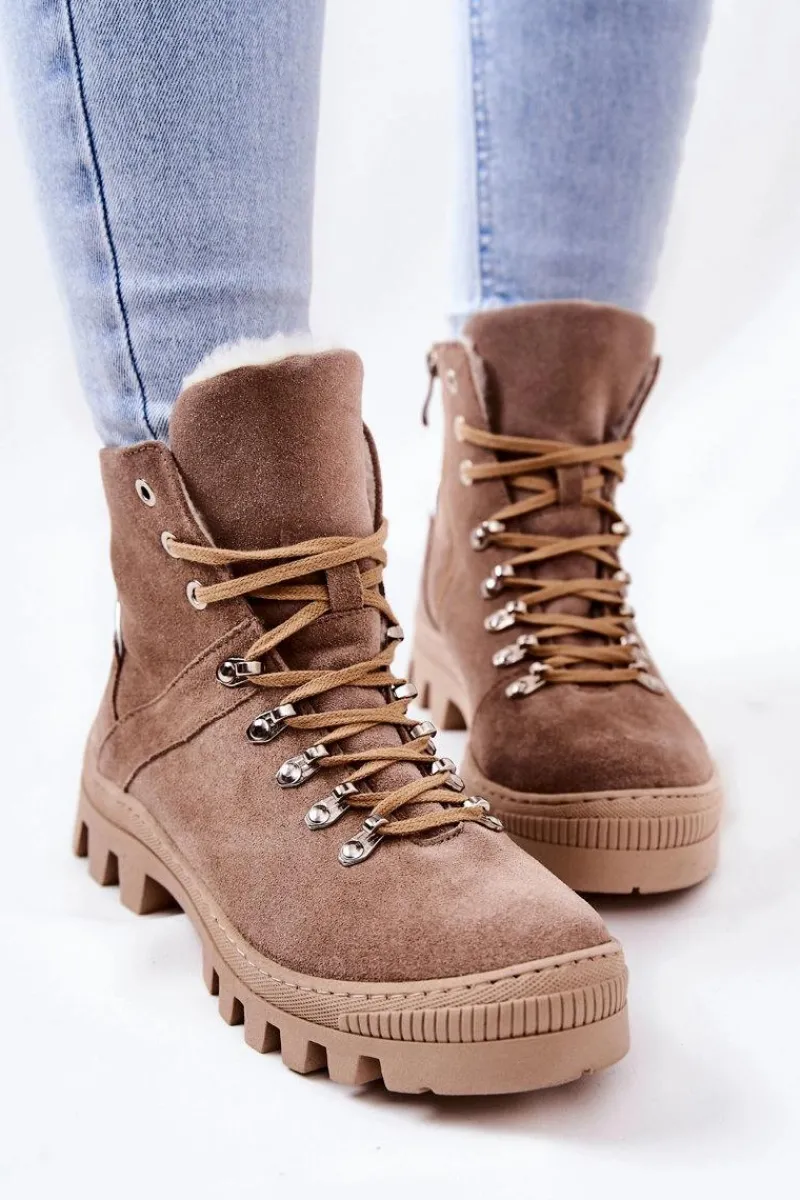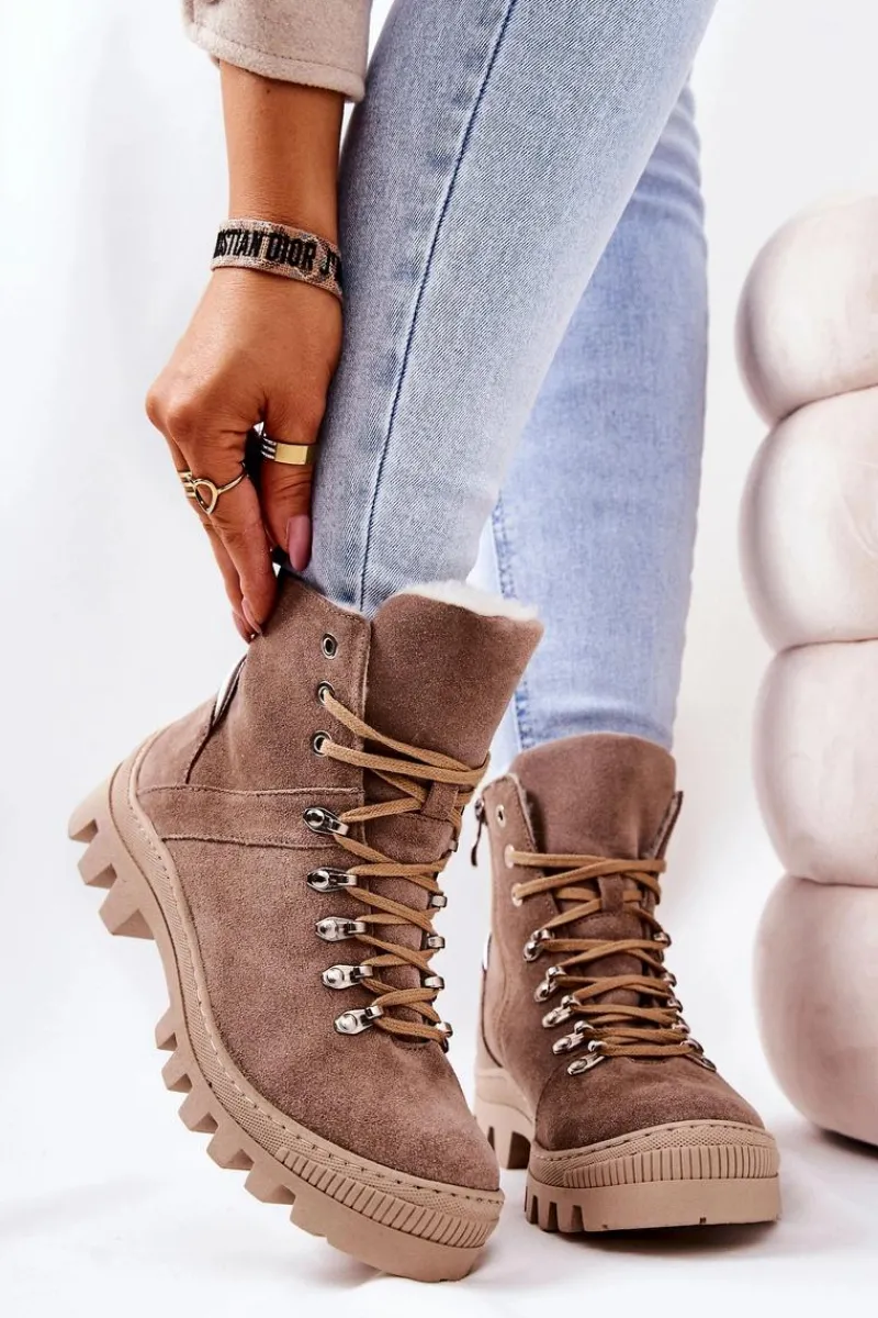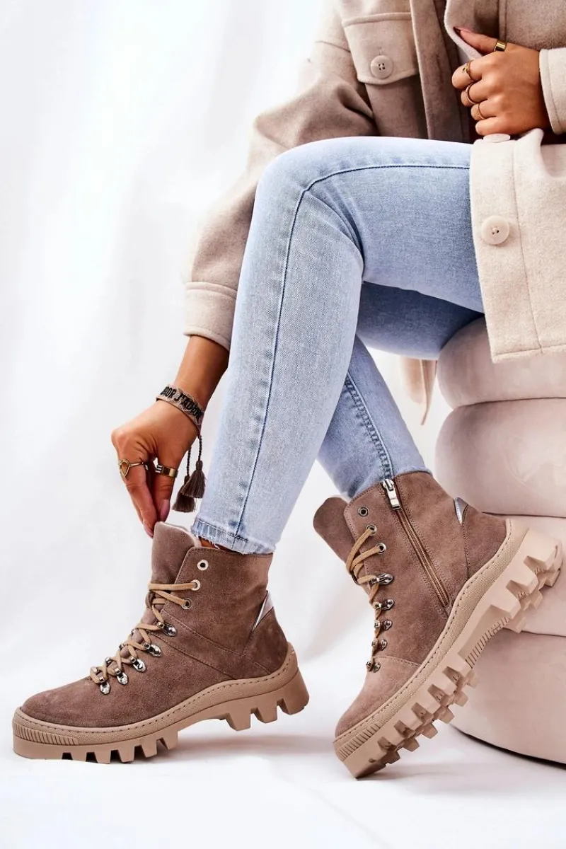 Botki Sznurowane|Botki Zimowe Damskie>Boto Ocieplane Zamszowe Botki Piasek Sandstorm