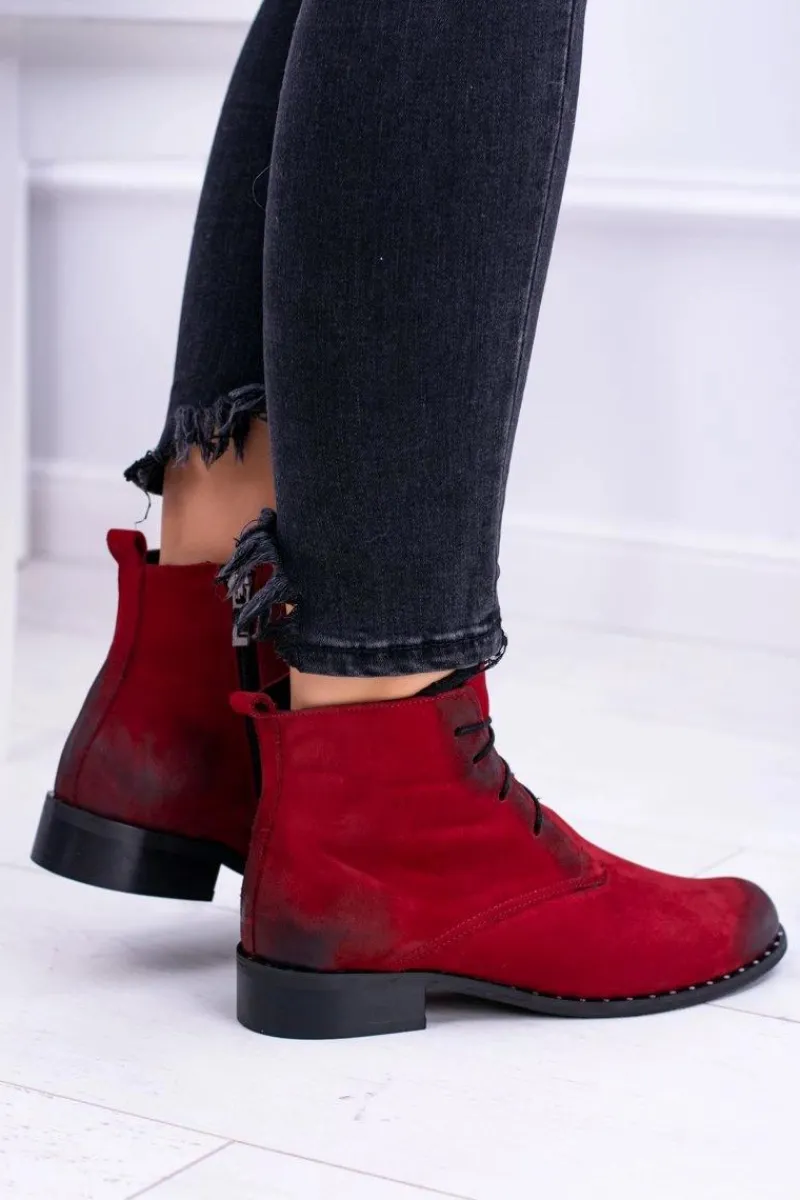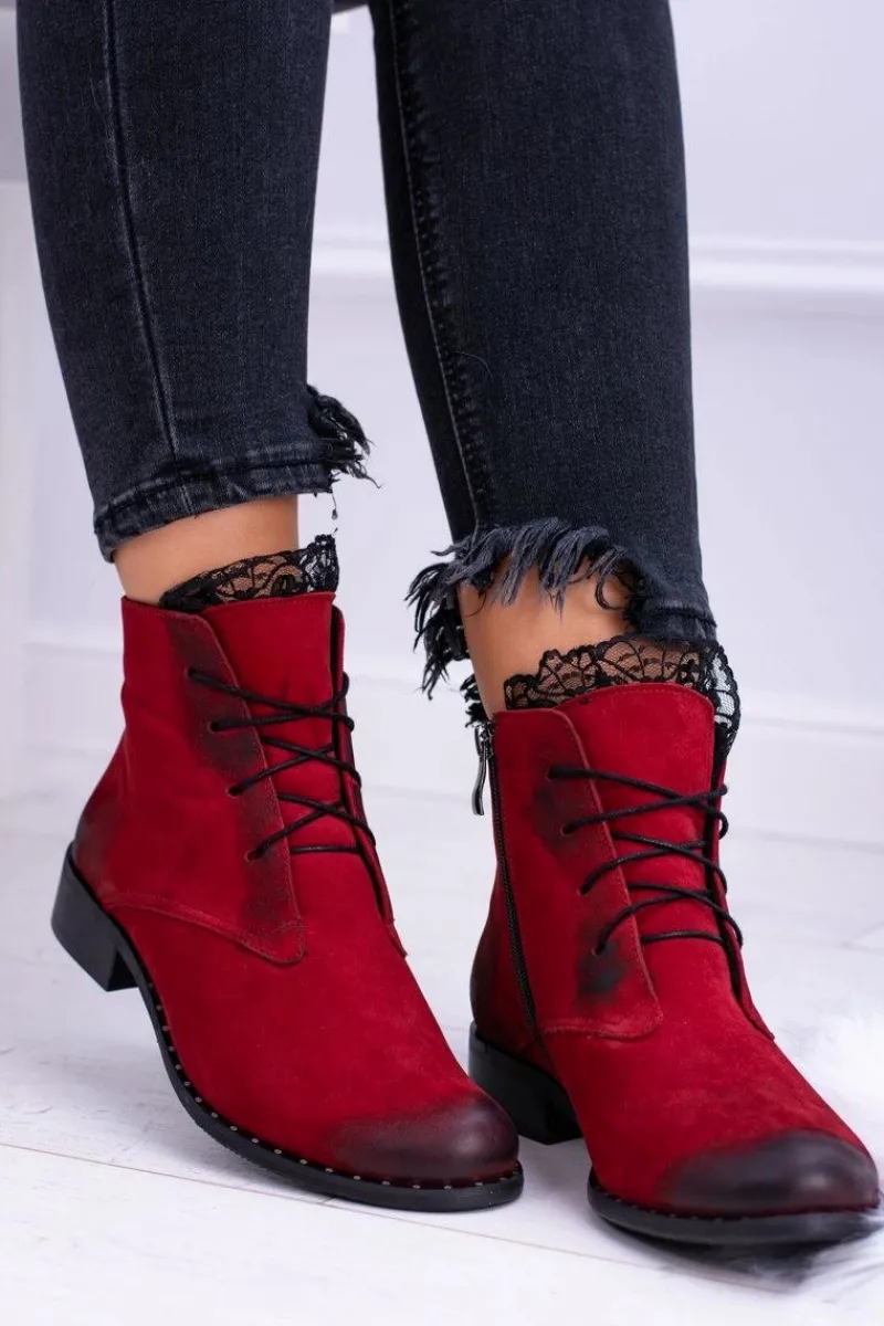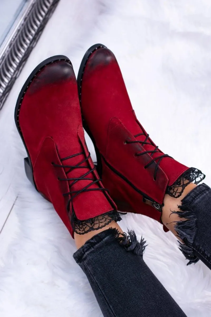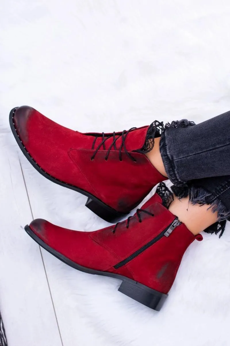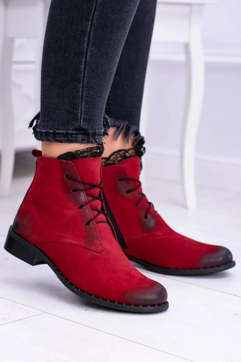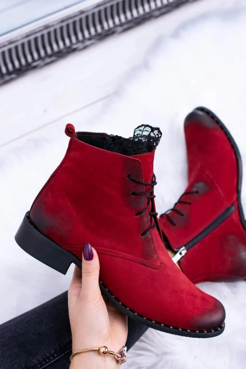 Botki Sznurowane|Botki Zimowe Damskie>Boto Skórzane Czerwone Damskie Botki Z Koronką Millano