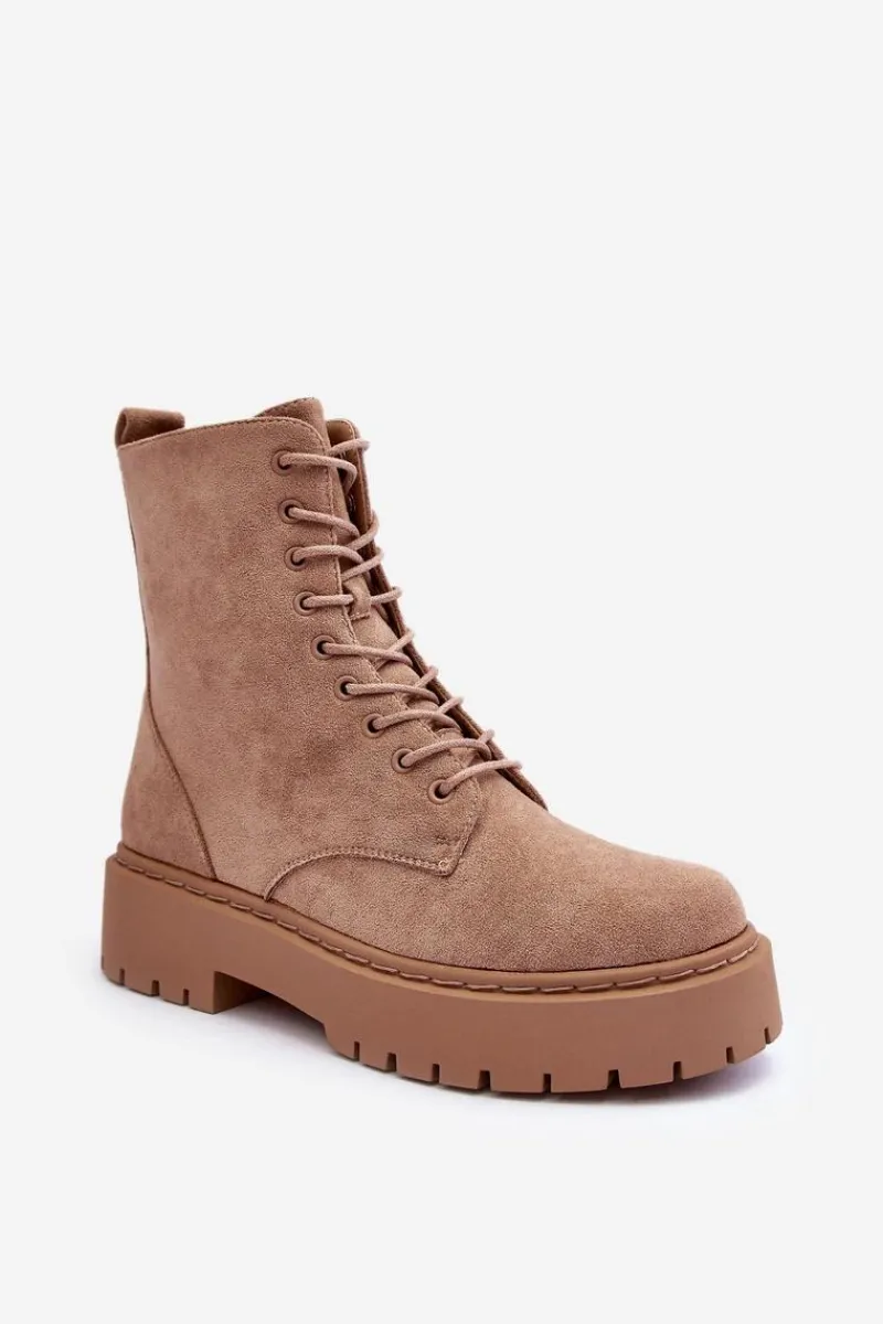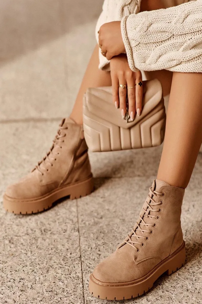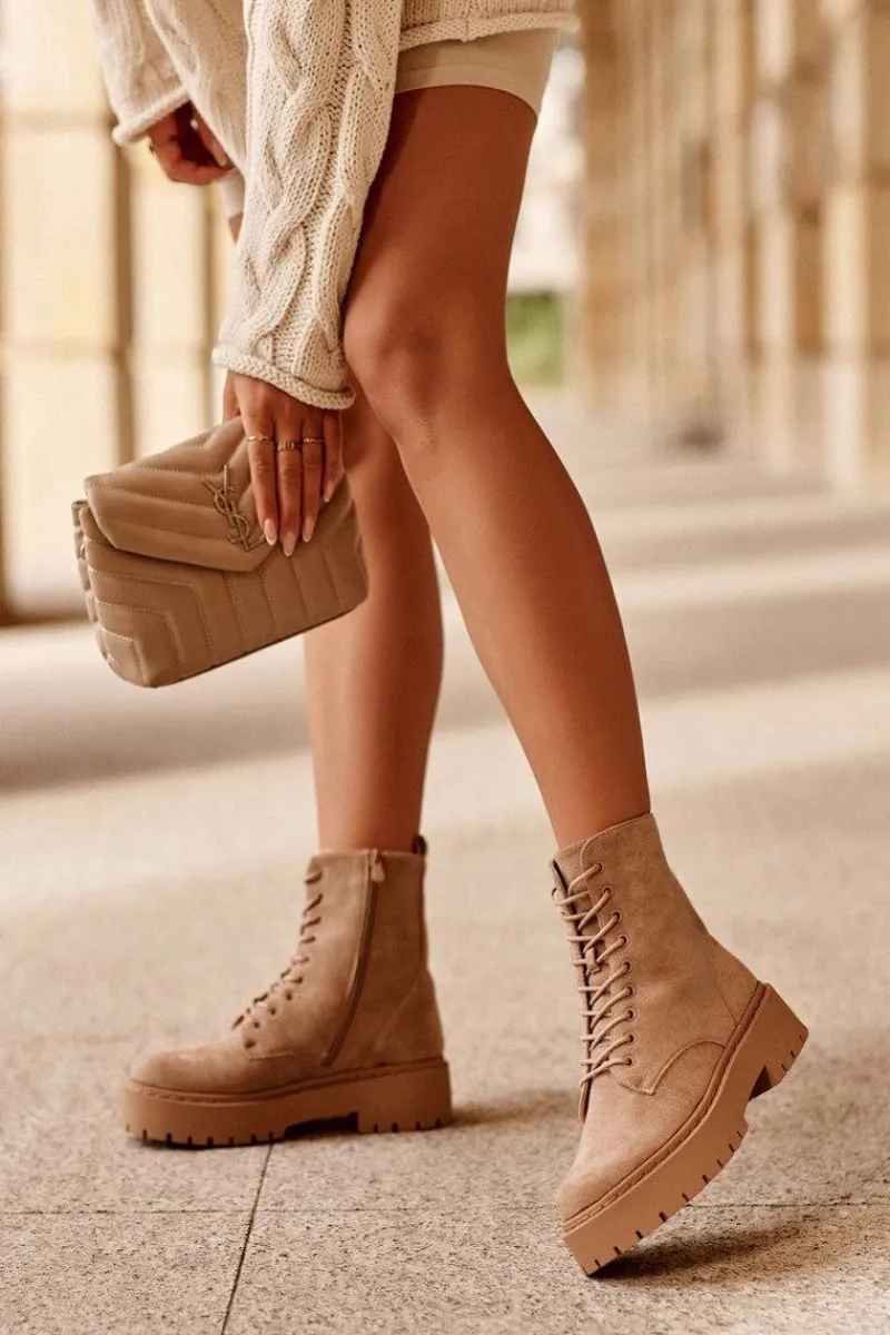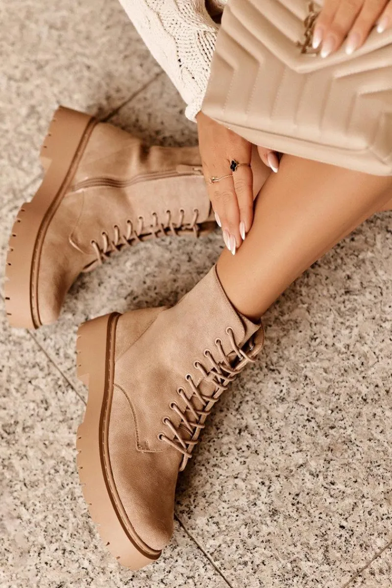 Botki Sznurowane|Botki Zimowe Damskie>Boto Zamszowe Botki Workery Damskie Beżowe Dearia
