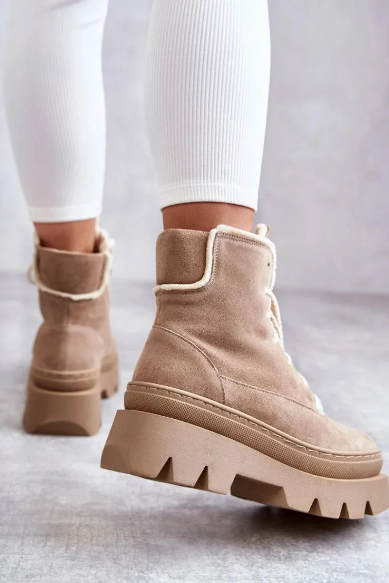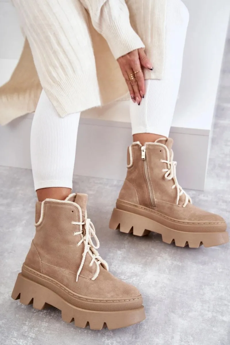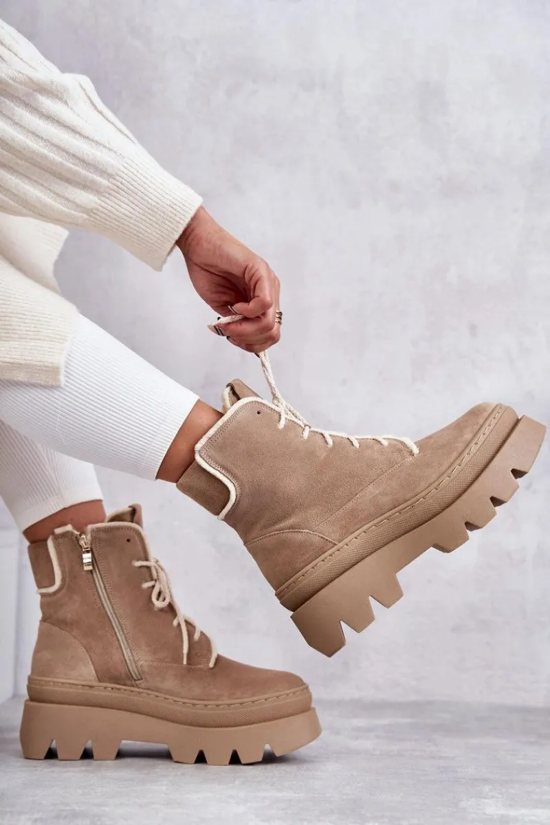 Botki damskie o klasycznym fasonie świetnie sprawdzą się na jesienne, chłodne dni. Posiadają wewnątrz ocieplenie w postaci koca obuwniczego. Osadzone na płaskim, stabilnym obcasie ze żłobieniami. Dodatkowo posiadają usztywniany zapiętek. Model z suwakiem na boku cholewki oraz sznurowaniem. Botki doskonale sprawdzą się w wielu stylizacjach. Przy wyborze rozmiaru prosimy sugerować się tabelą rozmiarów.