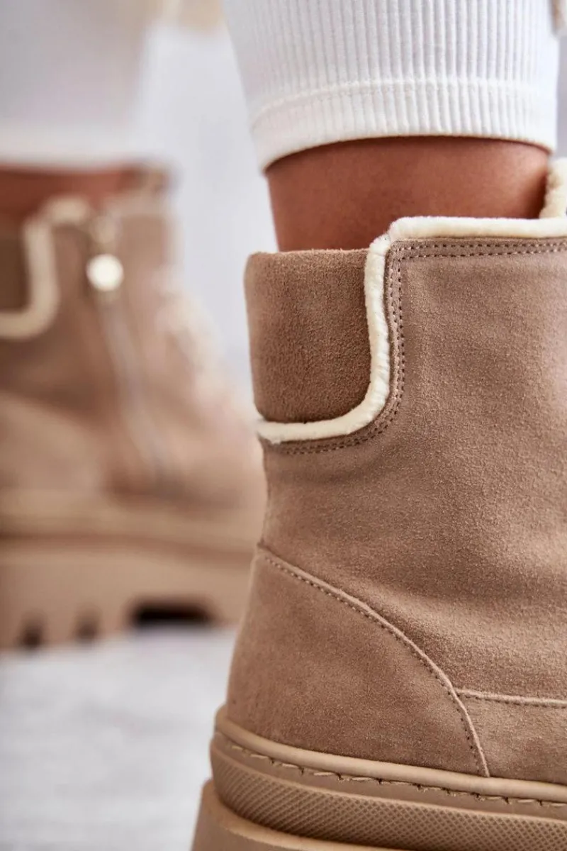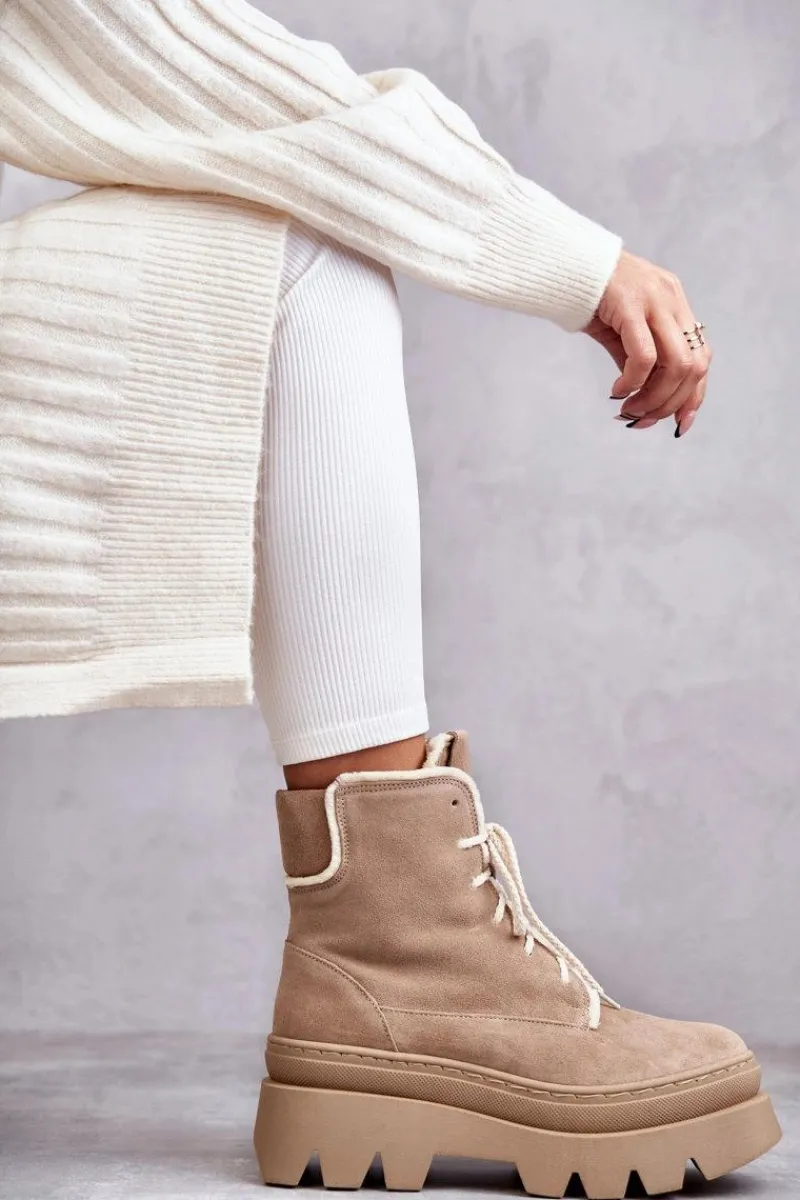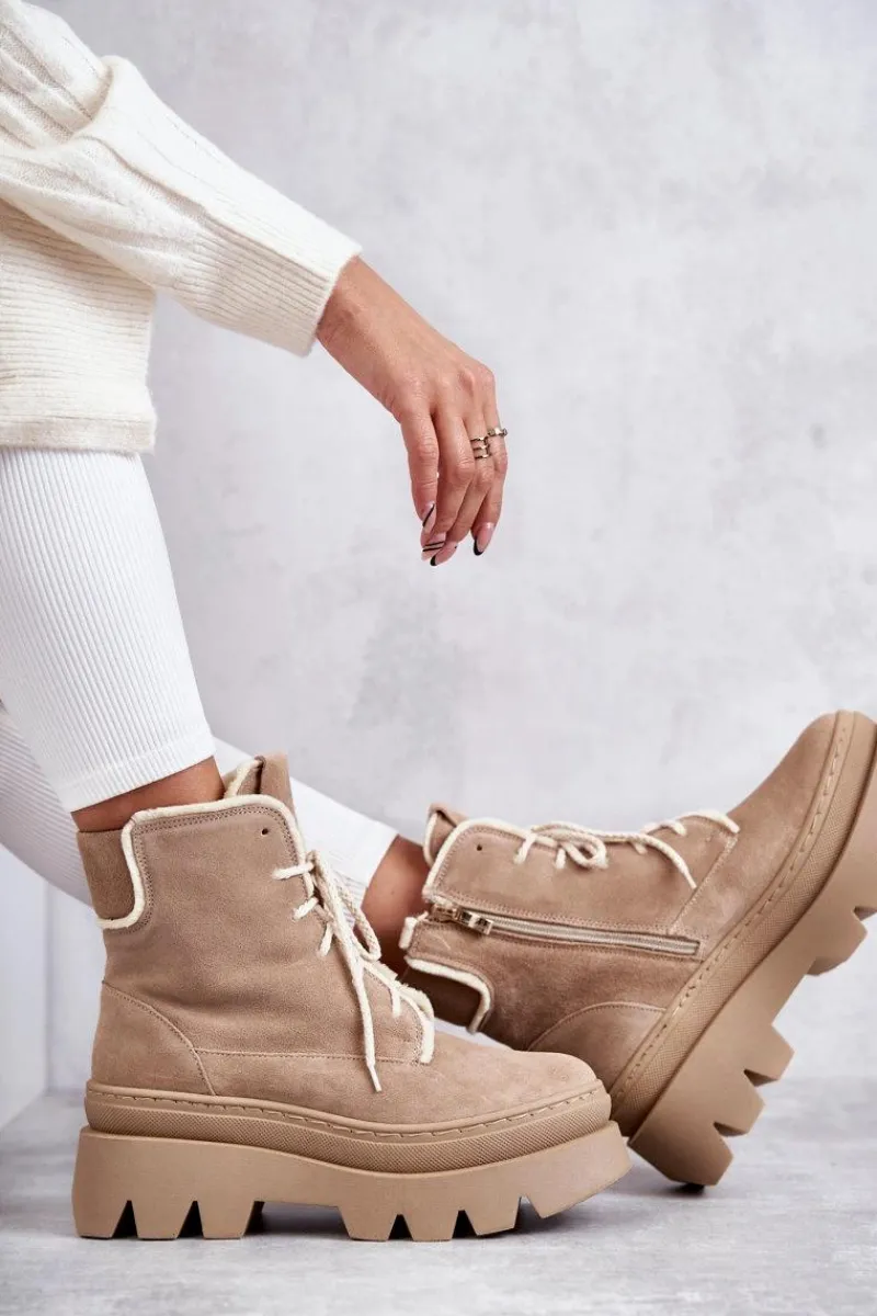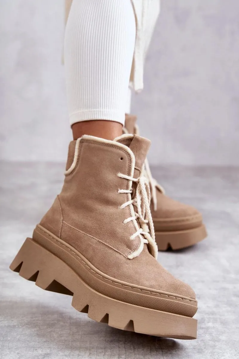 Botki damskie o klasycznym fasonie świetnie sprawdzą się na jesienne, chłodne dni. Posiadają wewnątrz ocieplenie w postaci koca obuwniczego. Osadzone na płaskim, stabilnym obcasie ze żłobieniami. Dodatkowo posiadają usztywniany zapiętek. Model z suwakiem na boku cholewki oraz sznurowaniem. Botki doskonale sprawdzą się w wielu stylizacjach. Przy wyborze rozmiaru prosimy sugerować się tabelą rozmiarów.
