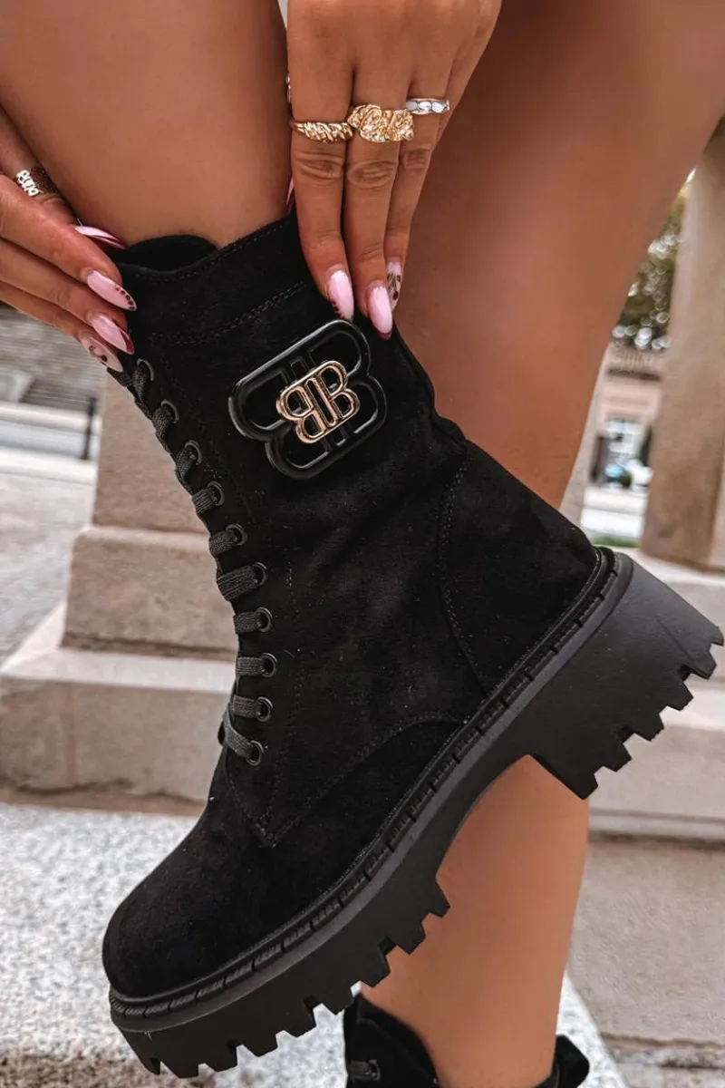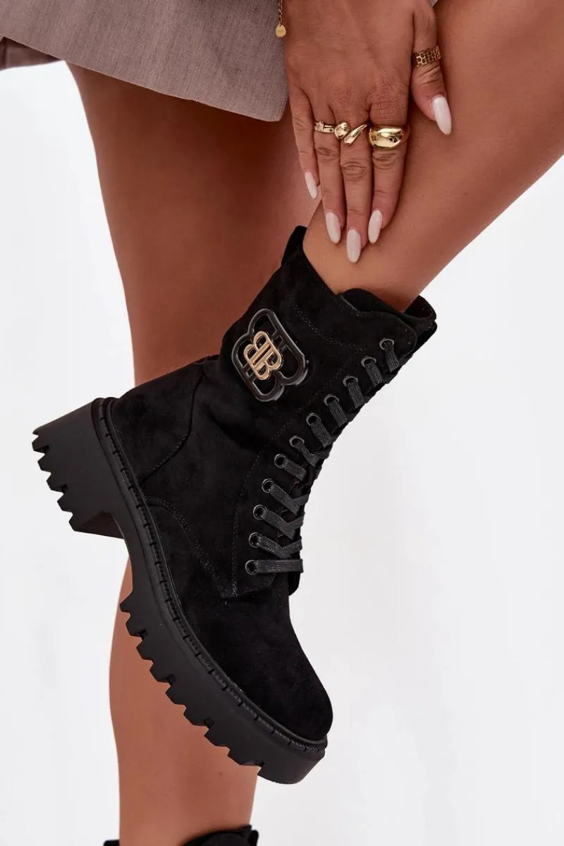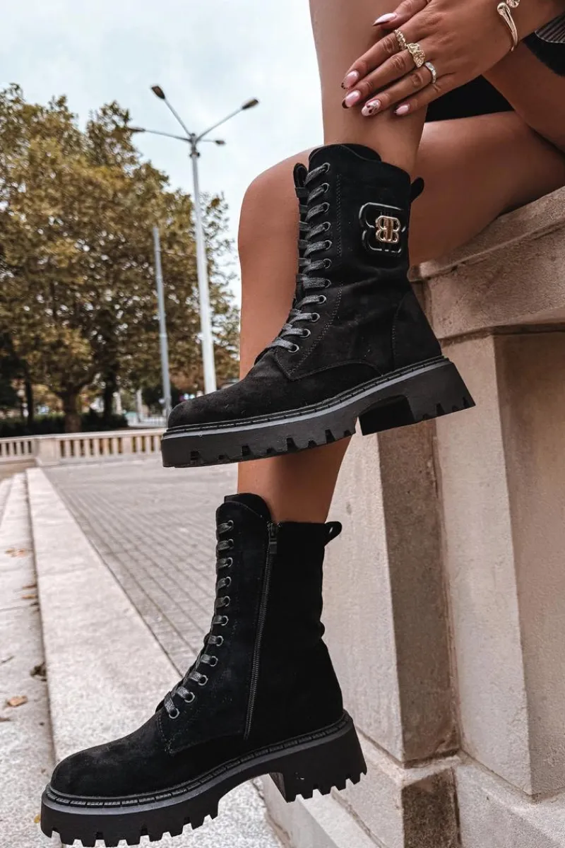 Botki workery w miejskim wydaniu to idealne połączenie stylu i wygody. Model zapinany na zamek z dodatkowym sznurowaniem pozwala na idealne dopasowanie do stopy. Ocieplane wnętrze z miękkiego koca obuwniczego gwarantuje komfort w chłodne dni, a solidna podeszwa z obcasem i platformą zapewnia stabilność. Subtelny detal na cholewce dodaje całości delikatnego, modnego akcentu. Doskonale komponują się z codziennymi stylizacjami. Przy wyborze rozmiaru prosimy sugerować się tabelą rozmiarów.