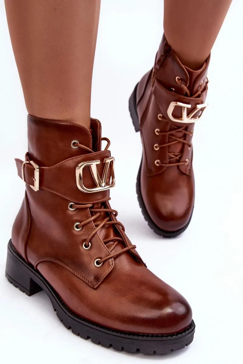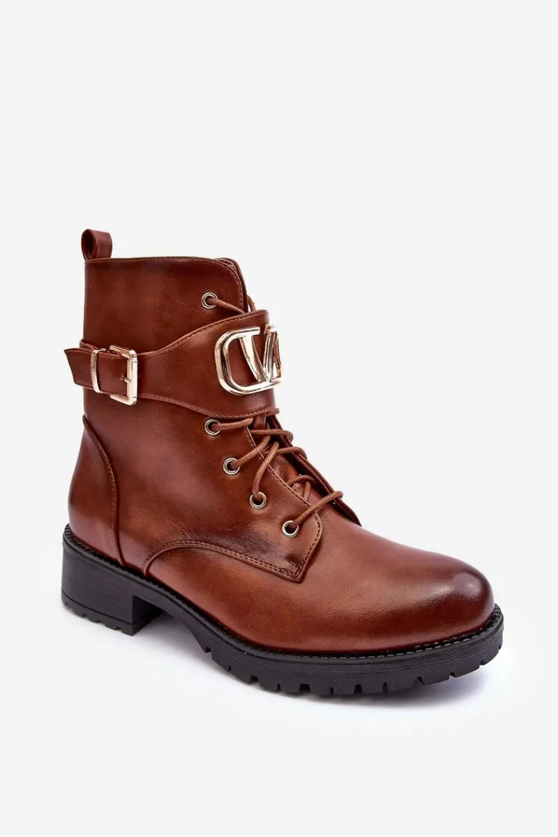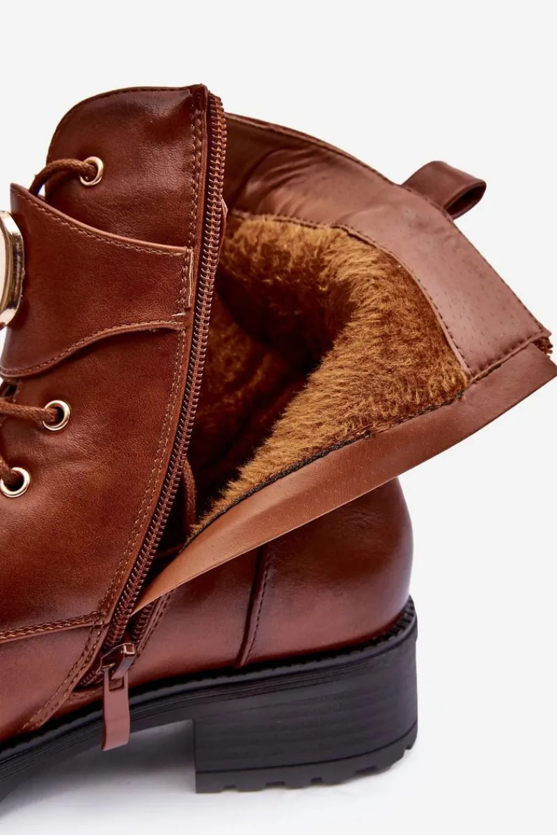 Botki Sznurowane|Brązowe I Beżowe Botki>Boto Damskie Ocieplane Botki Workery Złota Klamra Brązowe Vera