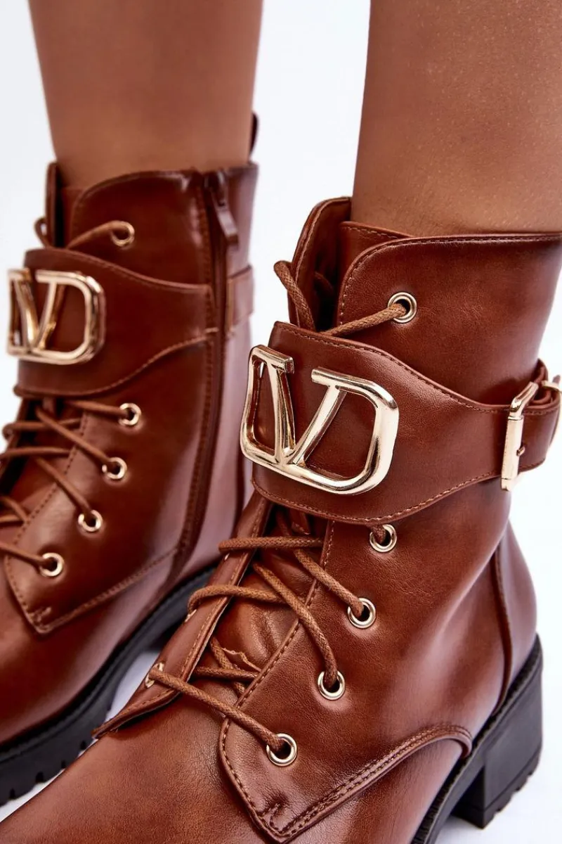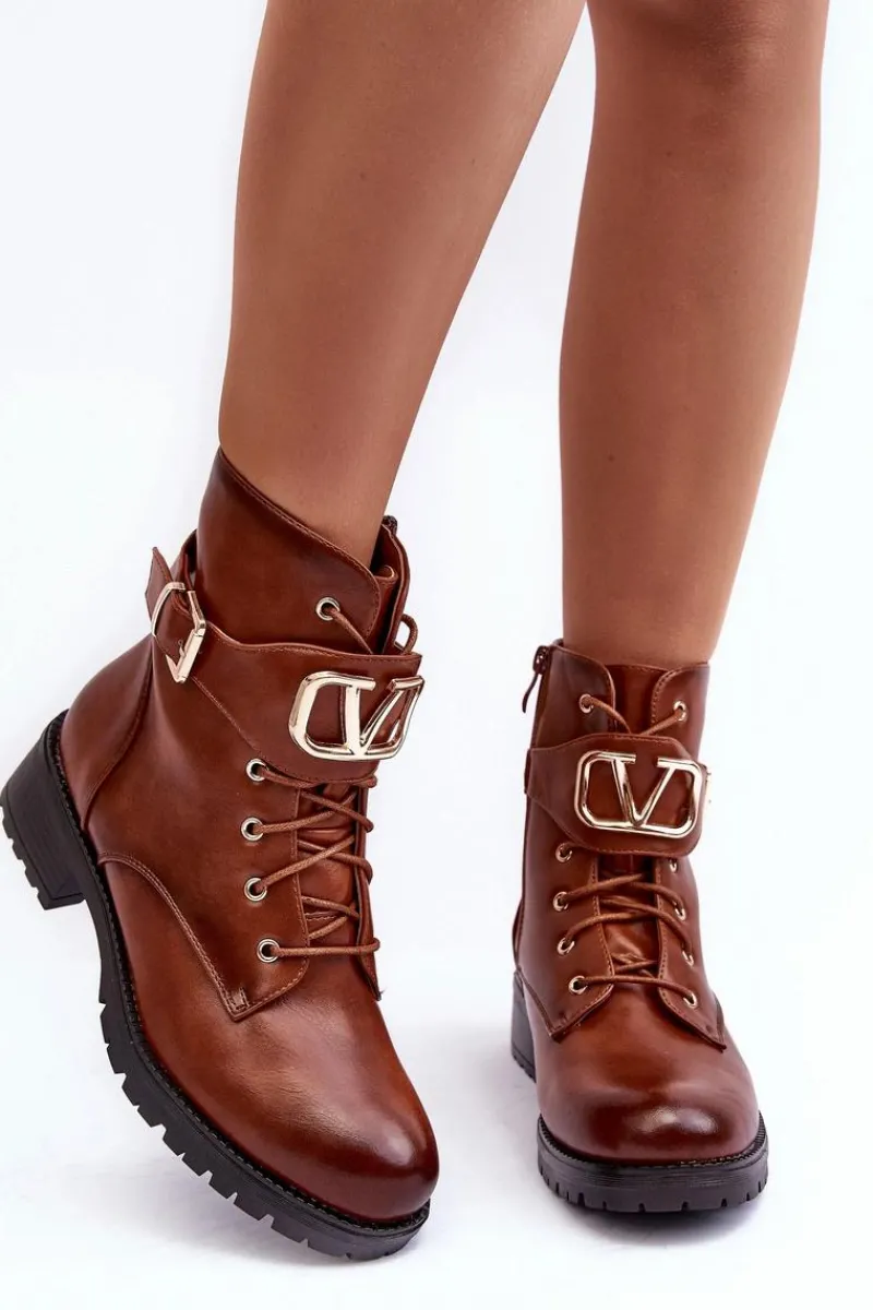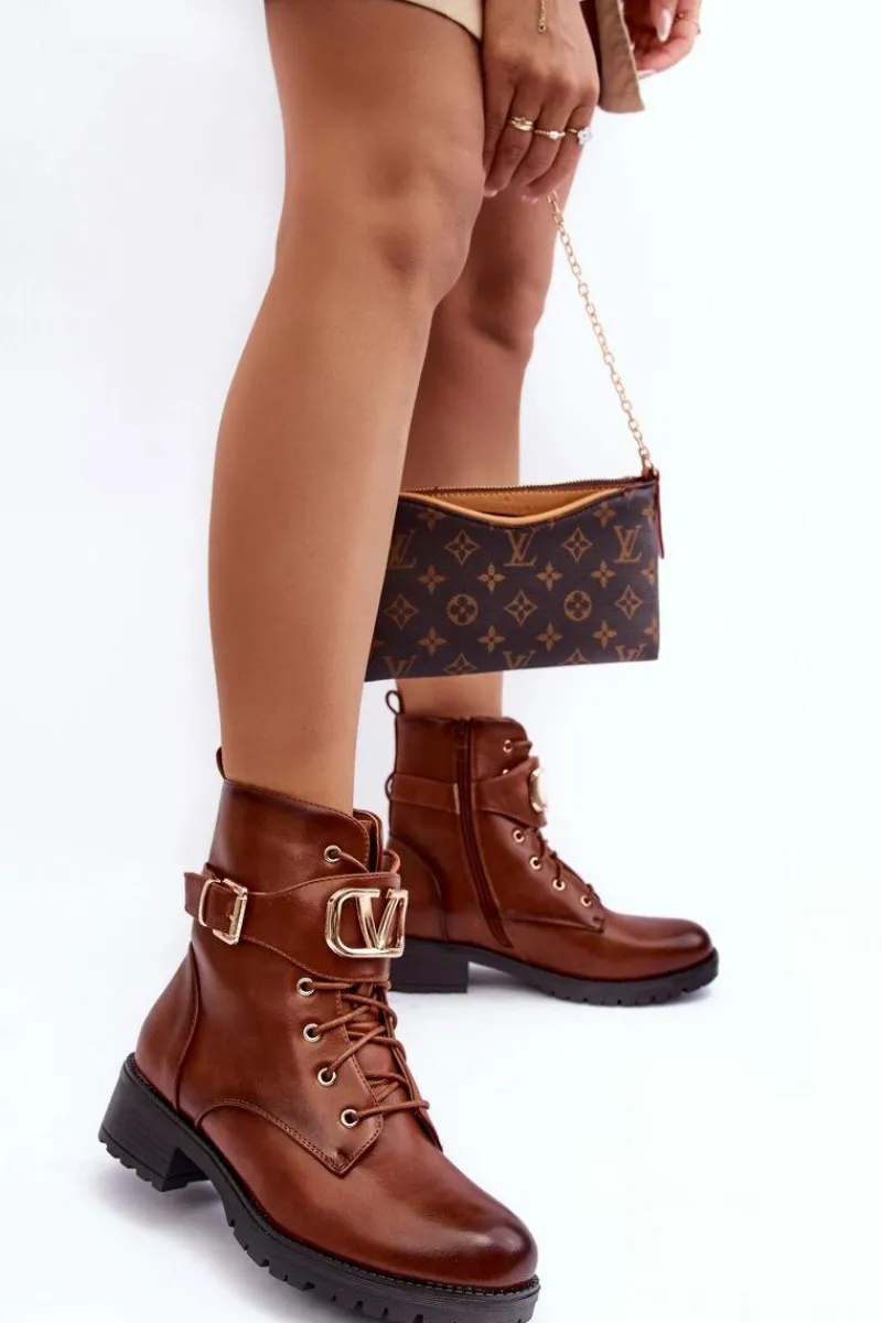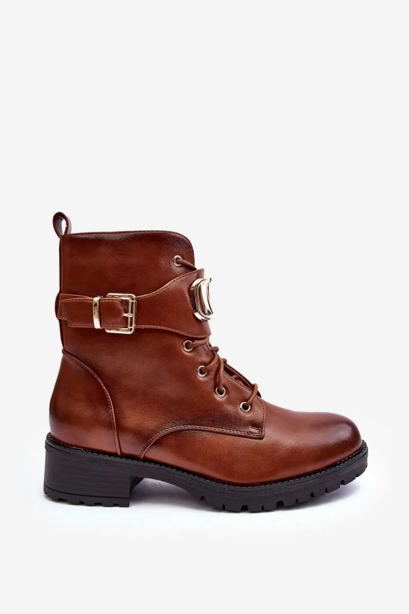 Botki Sznurowane|Brązowe I Beżowe Botki>Boto Damskie Ocieplane Botki Workery Złota Klamra Brązowe Vera