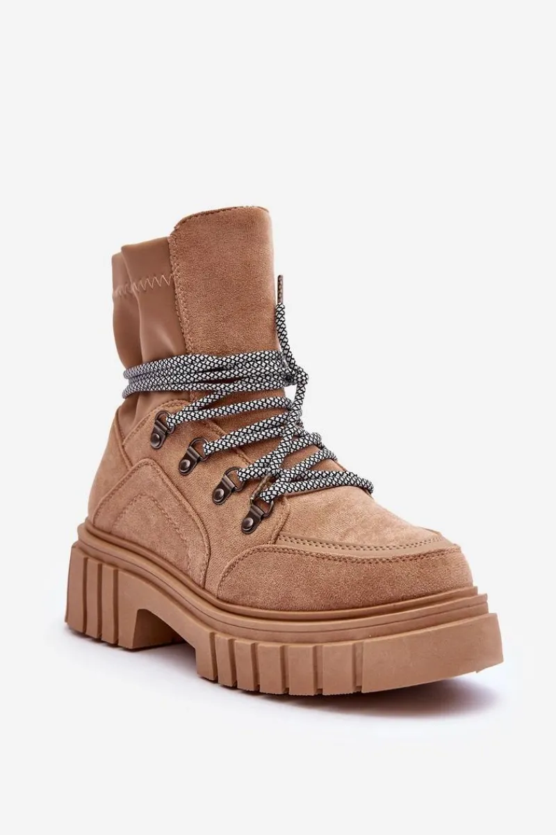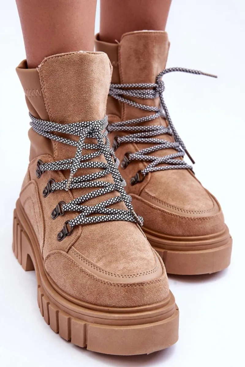 Damskie botki zostały osadzone na masywnym obcasie oraz platformie. Wykonane z eko zamszu. Cholewka za kostkę. Wewnątrz ocieplone kocem obuwniczym. Koniecznie powinnaś je mieć w swojej garderobie. Przy wyborze rozmiaru prosimy sugerować się tabelą rozmiarów.