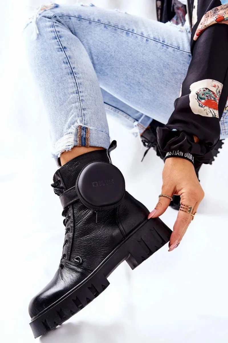 Workery Big Star wykonane są z wierzchu ze skóry naturalnej. Środek butów został ocieplony kocem obuwniczym. Nerka jest odpinana od buta. Na jej wierzchu widnieje logo marki Big Star. Masywna podeszwa sprawia, że botki są stabilne, co podnosi komfort noszenia tego obuwia. Sprawdź całą kolekcję tej marki! Przy wyborze rozmiaru prosimy sugerować się tabelą rozmiarów.