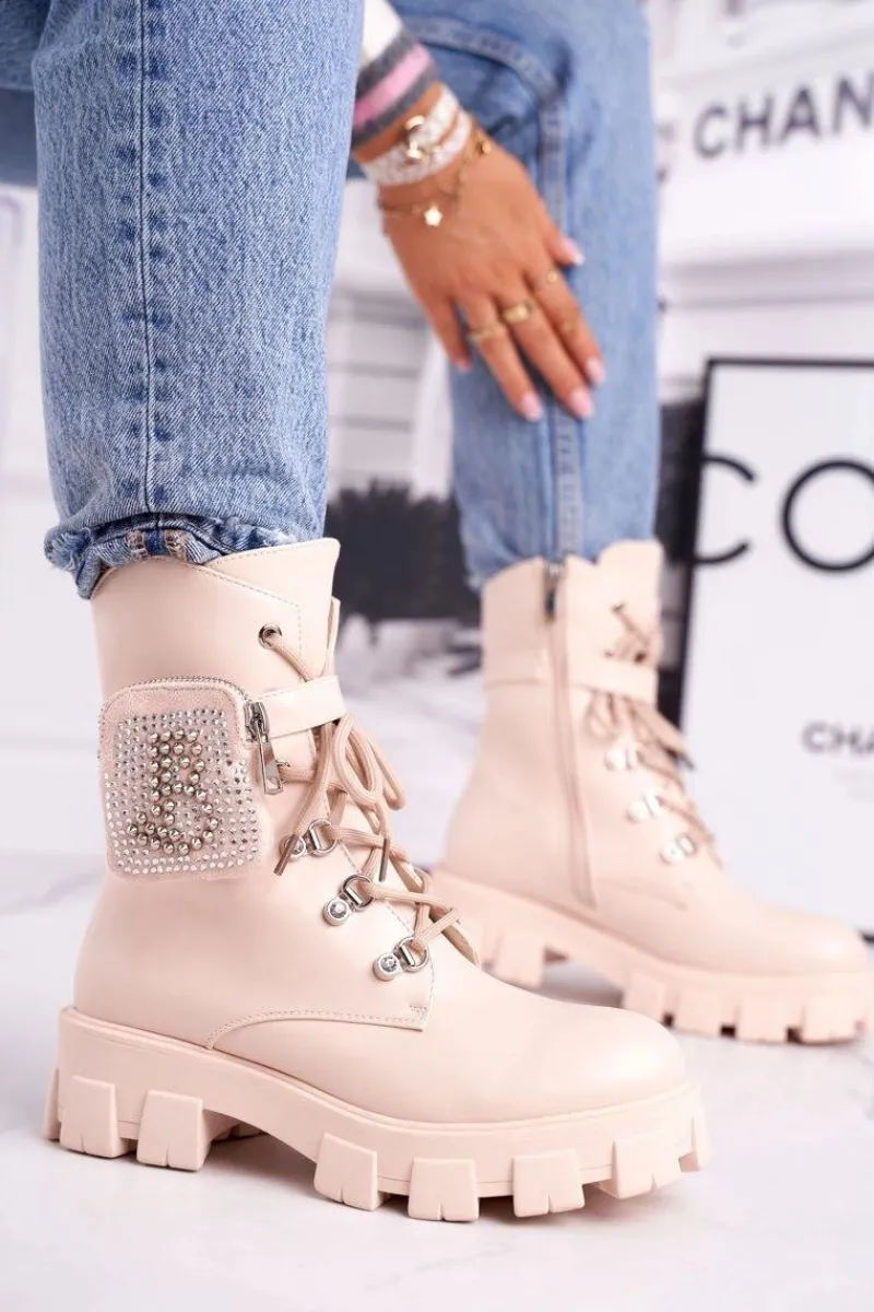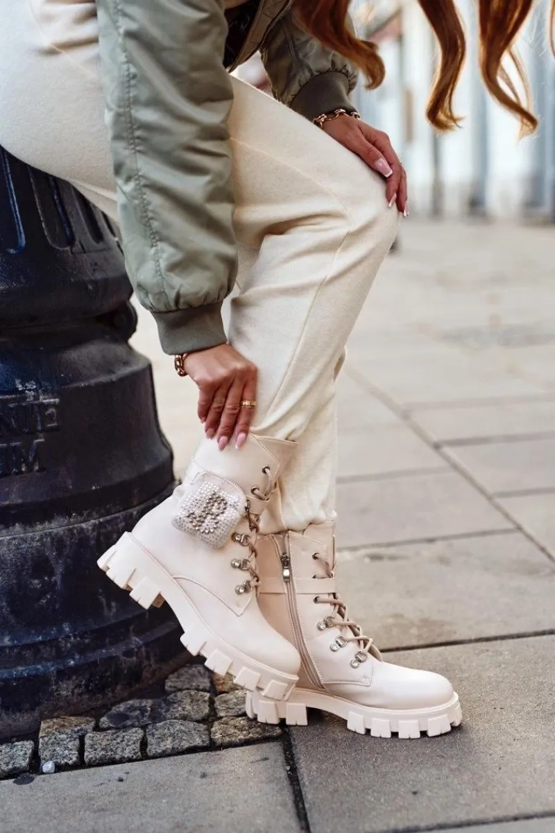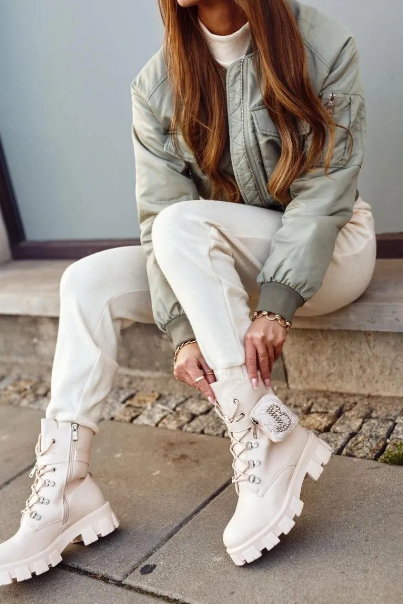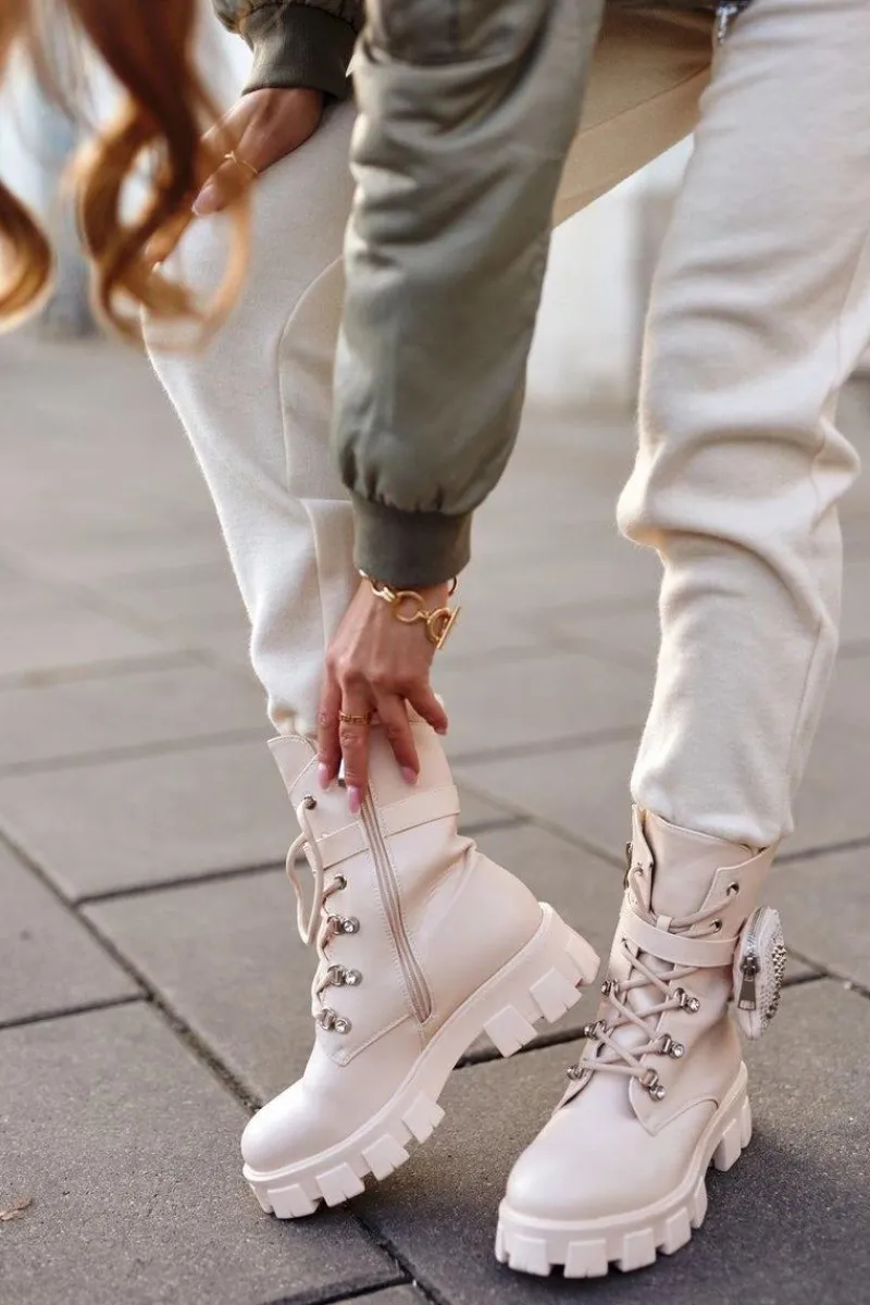 Botki Sznurowane|Czarne Botki>Boto Botki Damskie Na Platformie Ocieplane Beżowe Seul