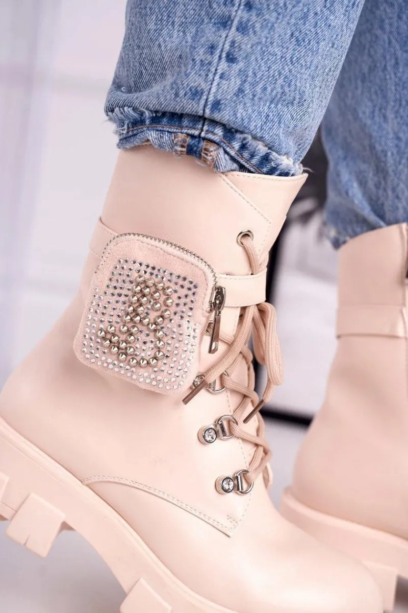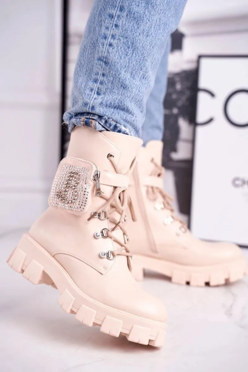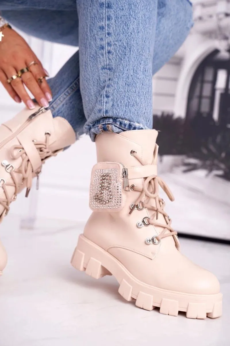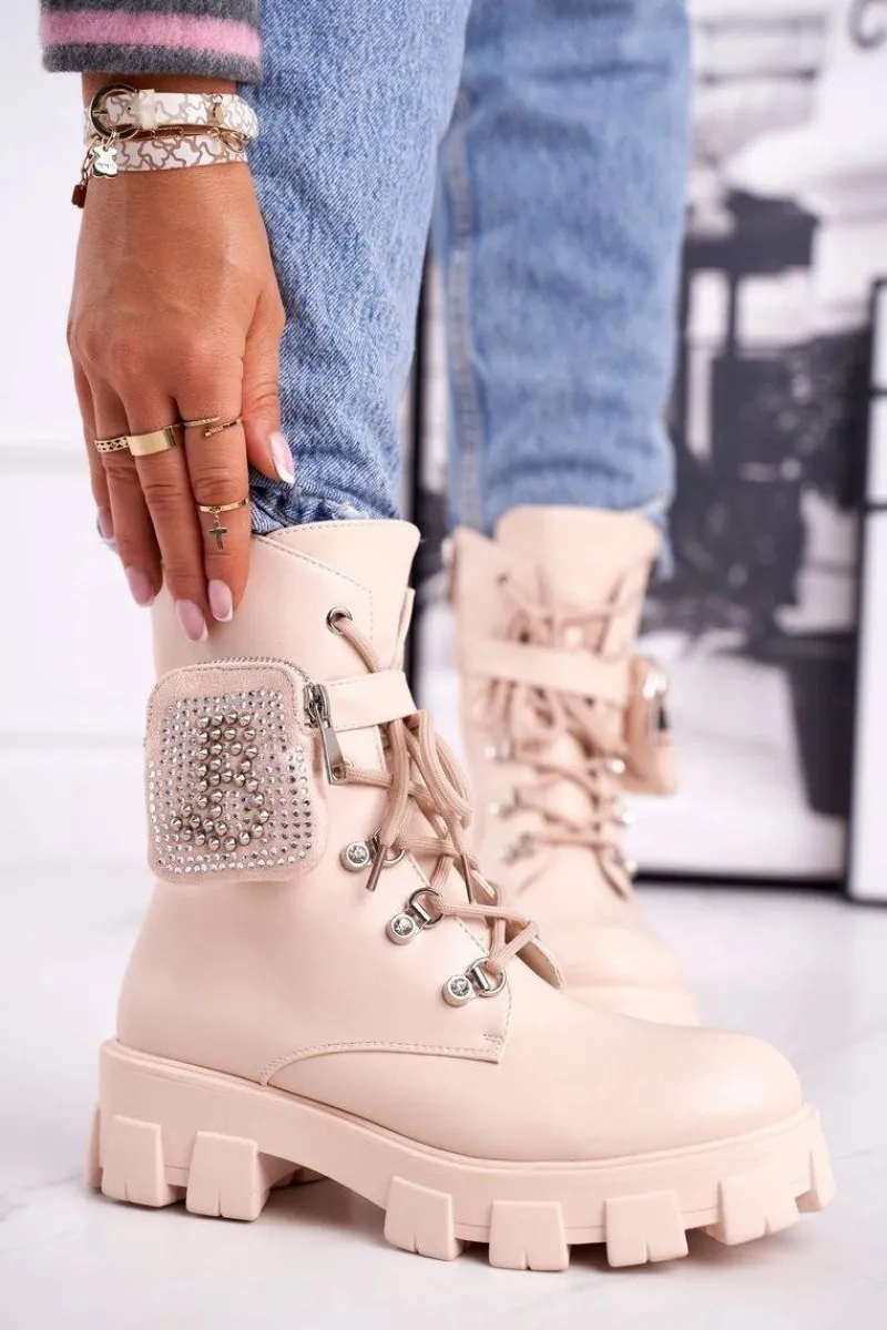 Botki Sznurowane|Czarne Botki>Boto Botki Damskie Na Platformie Ocieplane Beżowe Seul